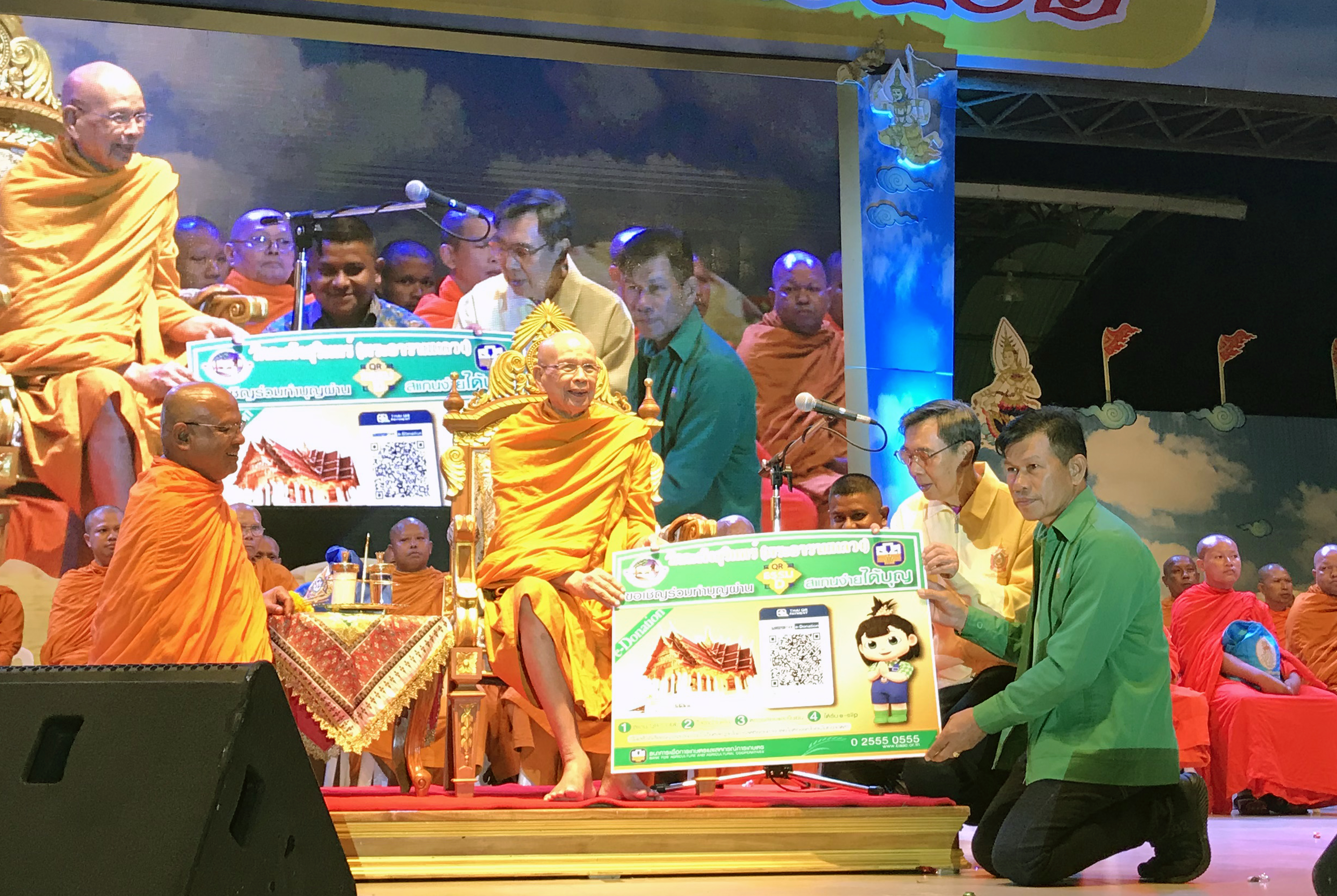 ณ ลานเรือพระ สนามกีฬาเทศบาลนครตรัง 2 (ทุ่งแจ้ง) ต.ทับเที่ยง อ.เมือง จ.ตรัง นายกิจ หลีกภัย นายกองค์การบริหารส่วนจังหวัดตรัง พร้อมด้วย นายสุชาติ ขาวเกื้อ รองผู้อำนวยการฝ่ายกิจการสาขาภาคใต้ตอนล่าง ธ.ก.ส. และ นายชาญยุทธ กาญจนพรหม ผู้อำนวยการสำนักงาน ธ.ก.ส.จังหวัดตรัง รวมทั้งพนักงานและผู้ช่วยพนักงานในสังกัด ร่วมถวายป้าย “QR ธรรม D” สแกนง่ายได้บุญ แด่ พระพรหมจริยาจารย์ เจ้าคณะใหญ่หนใต้ เพื่อเป็นการเปิดตัว “QR ธรรม D” ทำบุญ ด้วยการสแกน QR Code เพื่อเชิญชวนผู้มีจิตศรัทธาร่วมทำบุญ ด้วยการสแกน QR Code แทนการใช้เงินสด ภายในงานประเพณีลากพระจังหวัดตรัง ครั้งที่ 17 ประจำปี 2562 ระหว่างวันที่ 14- 20 ตุลาคม 2562