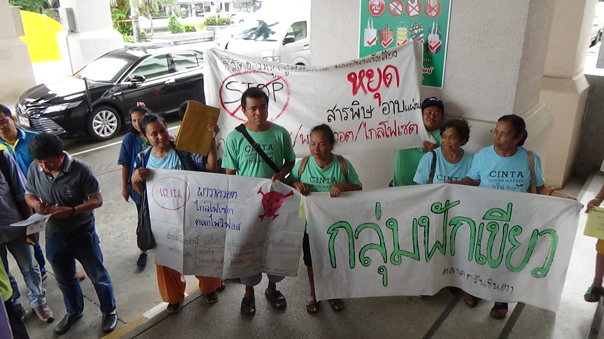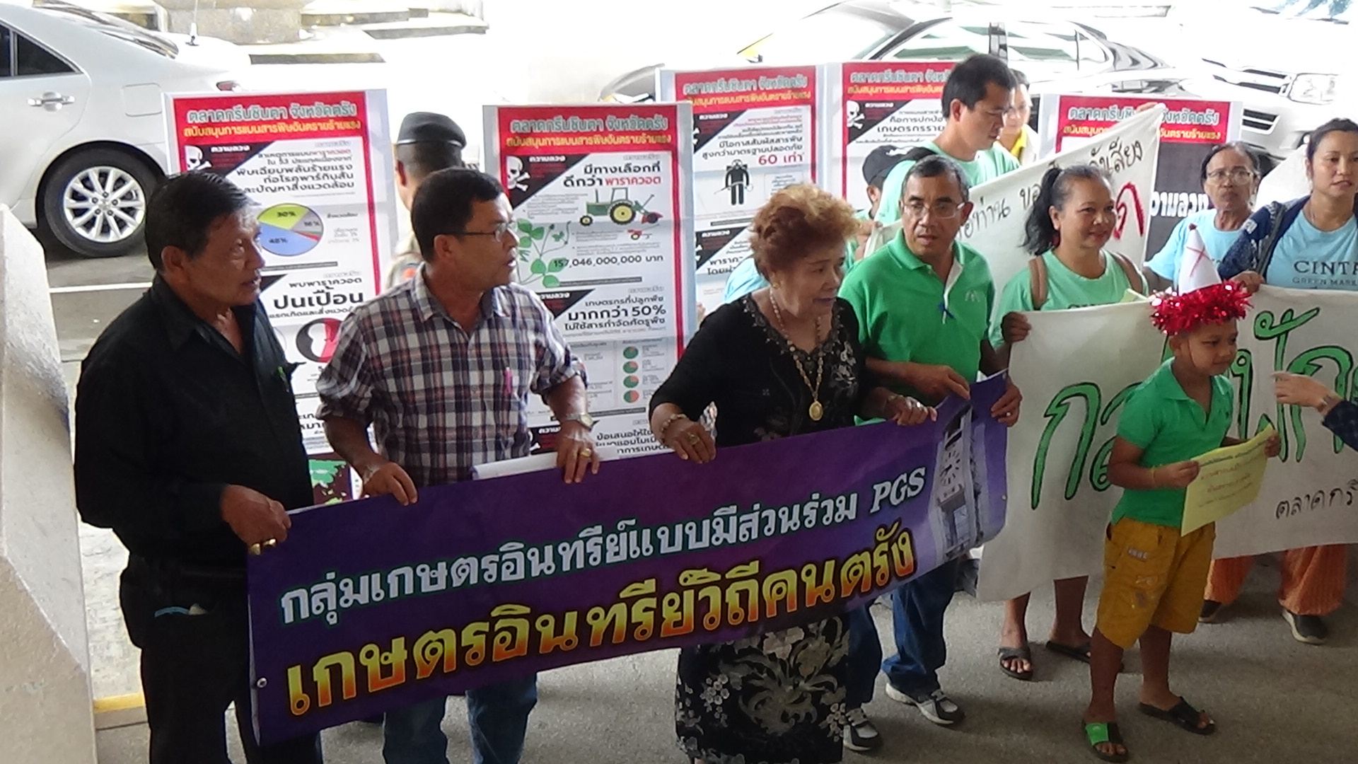 เกษตรกรกลุ่มฟักเขียวและเกษตรกรกลุ่มเกษตรอินทรีย์วิถีตรัง พร้อมด้วยเกษตรกรร่วมกันยื่นหนังสือถึงนายกรัฐมนตรี เรื่องการสนับสนุนการแบนสารเคมีอันตรายทางการเกษตร 3 ชนิด