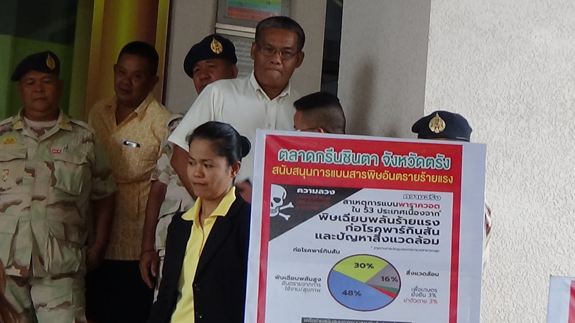 ที่บริเวณด้านล่างศาลากลางจังหวัดตรัง นายธงฉัตร คืนตัก แกนนำกลุ่มฟักเขียว นายสาธิต ไข่ขวัญ แกนนำกลุ่มเกษตรอินทรีย์วิถีตรัง พร้อมด้วยเกษตรกรร่วมกันยื่นหนังสือข้อเรียกร้องถึงพลเอกประยุทธ จันทร์โอชา นายกรัฐมนตรี เรื่องการสนับสนุนการแบนสารเคมีอันตรายทางการเกษตร 3 ชนิด (พาราควอต ไกลโฟเซต คลอร์ไพริฟอส)และเรียกร้องให้กรรมการวัตถุอันตรายลงมติโดยเปิดเผย