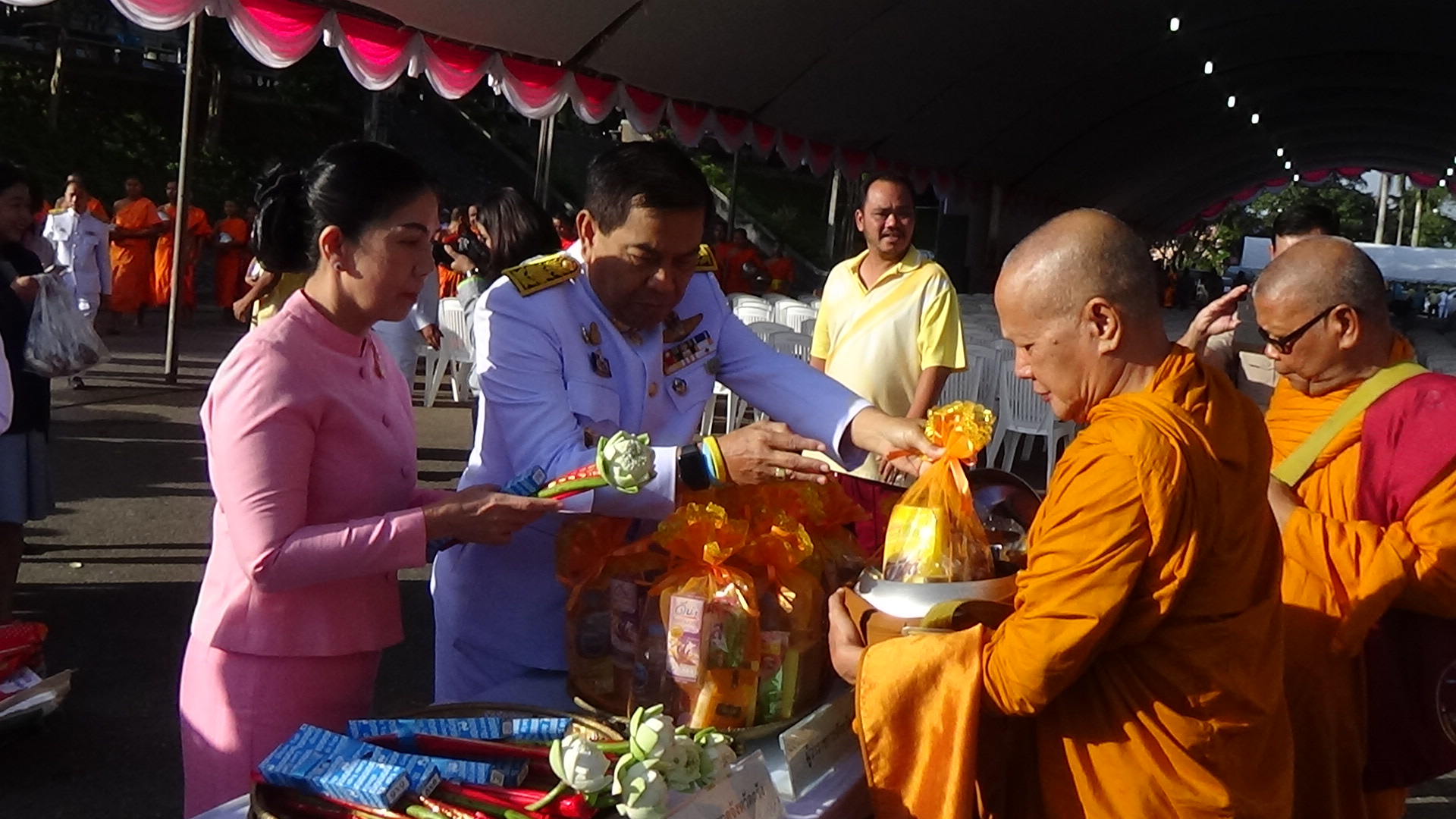 พสกนิกรทุกหมู่เหล่า ร่วมพิธีบำเพ็ญกุศลทำบุญตักบาตรแด่พระสงฆ์ 57 รูป เพื่อถวายเป็นพระราชกุศล และวางพวงมาลา เพื่อน้อมรำลึกเนื่องในวันคล้ายวันสวรรคตพระบาทสมเด็จพระจุลจอมเกล้าเจ้าอยู่หัว รัชกาลที่ 5 ที่พระองค์นำความเจริญรุ่งเรืองตั้งแต่อดีตจนถึงปัจจุบัน