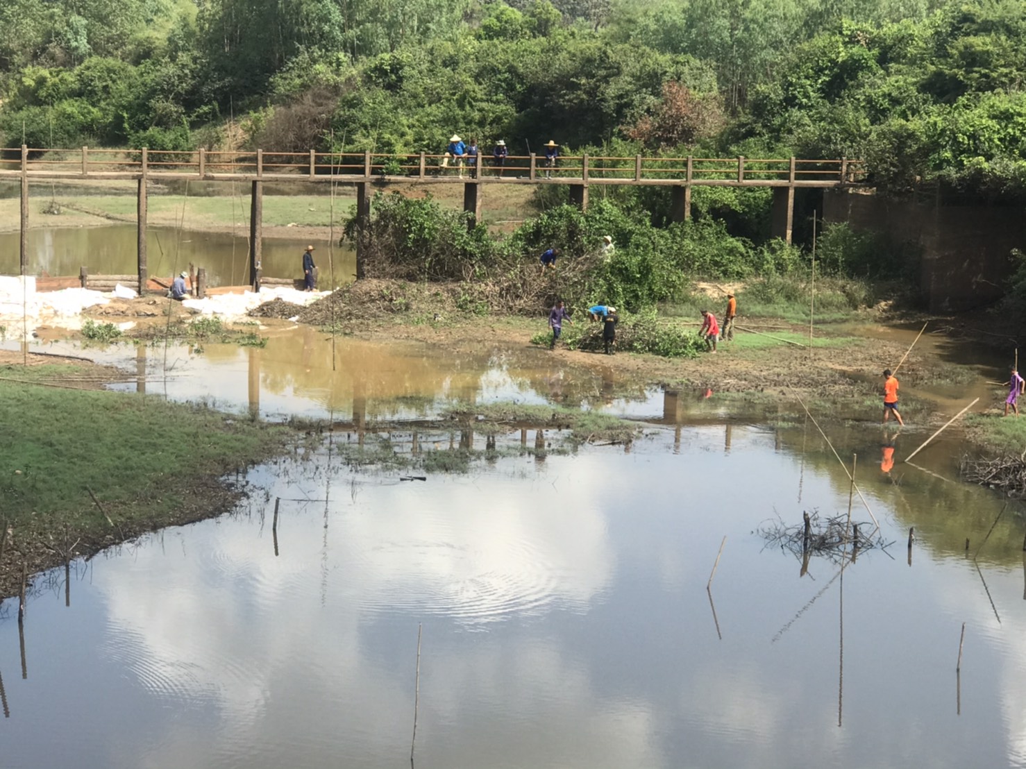 ชาวบ้านจัดหากระสอบทรายเพิ่มอีก 300 ใบ ทราย 6 ลบ.ม.อาหาร สนับสนุนการดำเนินงาน บริเวณลำน้ำแห่งนี้ มีพื้นที่เก็บน้ำ ประมาณ 40 ไร่ ชาวบ้านจะได้รับประโยชน์ เป็นการปลูกผักสวนครัว และแหล่งอาหารของตำบลต่อไป