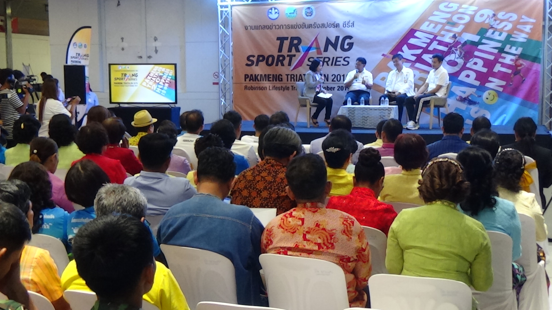ที่ห้างสรรพสินค้าโรบินสันจังหวัดตรัง สำนักงานการท่องเที่ยวและกีฬาจังหวัดตรัง ได้จัดงานแถลงข่าวความพร้อมกิจกรรมการแข่งขันไตรกีฬาส่งเสริมการท่องเที่ยว“ PAKMENG TRIATHLON 2019 โดยมี