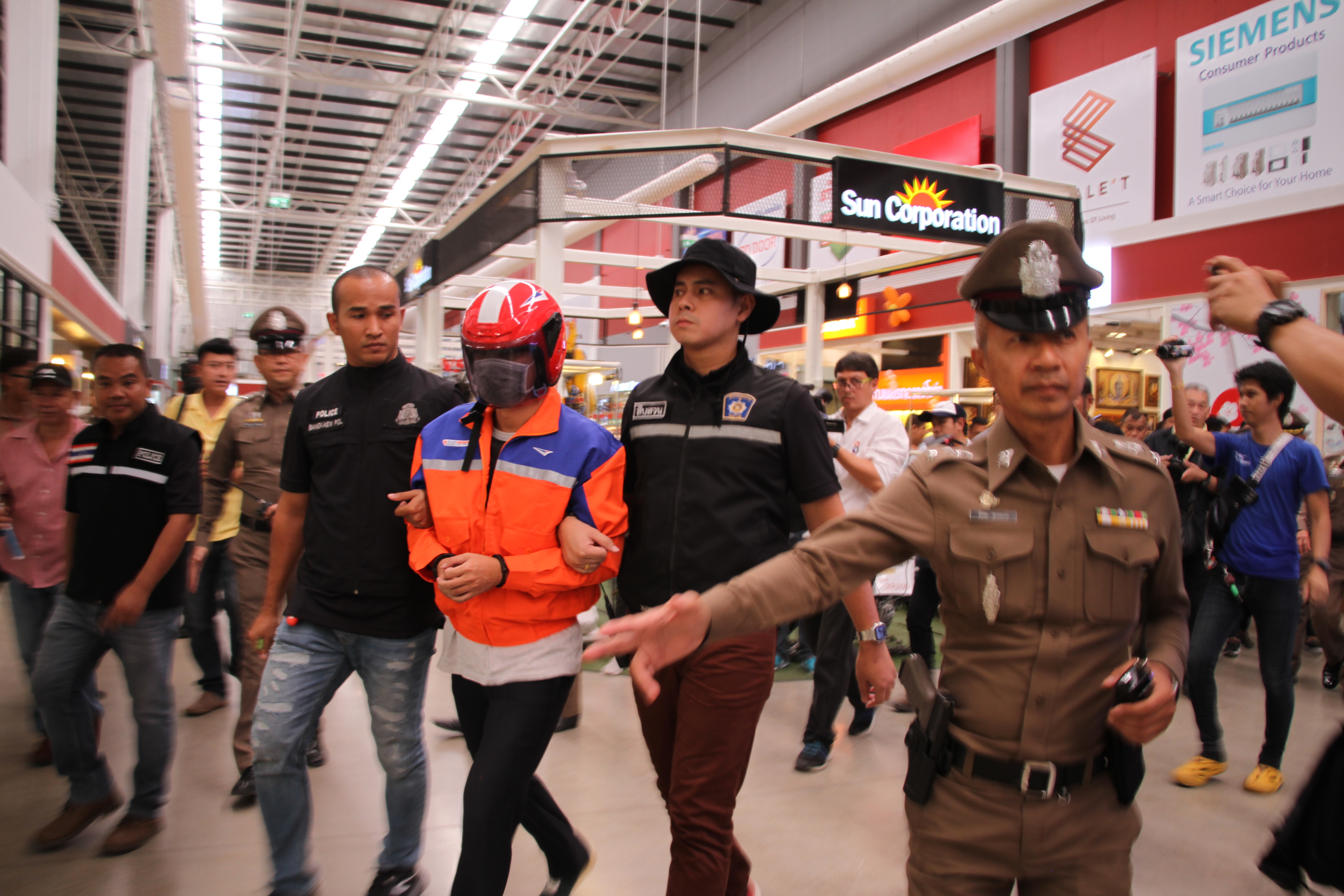 ***** พล.ต.ต. ธนายุตม์ วุฒิจรัสธำรงค์ รองผบช.ภ. 1 กล่าว่า ตำรวจต้องใช้ระยะเวลาติดตามจับกุมผู้ก่อเหตุ เนื่องจาก มีการ เตรียมการ วางแผน ก่อน หลัง และ ขณะเกิดเหตุ เป็นอย่างดี เช่น สวมทั้ง หมวกนิรภัย หมวกแก๊ป หน้ากากอนามัย หรือ แมส ปกปิดใบหน้าตลอดเวลา รวมทั้ง เปลี่ยนเสื้อผ้าที่สวมใส่ ทั้ง ก่อน และ หลัง ก่อเหตุ หลายชุด นอกจากนี้ ยังเคยเป็น ทั้ง อดีตพนักงาน บริษัทรับเหมาดำเนินการ หรือ outsource รับ -ส่ง พัสดุให้ สำนักงานไปรษณีย์ หลายสาขา รวมทั้ง เคยทำงานในห้างสรรพสินค้าแห่งนี้ จึงทราบเส้นทาง และ ระบบต่างๆ การสืบสวนจึงต้องใช้ ข้อมูลเชิงลึก ประกอบ ภาพกล้องวงจรปิดพื้นที่โดยรอบไม่น้อยกว่า 100 ตัว และนำตัวพยานที่เกี่ยวข้องมาสอบสวนปากคำนำไปเสก๊ตซ์ภาพคนร้าย ลงพื้นที่ตรวจสอบสิ่งของที่คนร้ายทิ้งระหว่างหลบหนี พบรองเท้า และเสื้อเชิ๊ตของคนร้ายนำมาจัดเก็บ ดีเอ็นเอ ของคนร้าย ตรวจสอบตอบจากกลุ่มผู้ต้องสงสัยโดยเฉพาะพนักงานไปรษณีย์บางพลี และพนักงานของไทยวัสดุบางนา นำตัวผู้ต้องสงสัยตรวจสอบ ดีเอ็นเอ เพื่อเปรียบเทียบอย่างต่อเนื่อง จนต่อมาวันที่ 25 ต.ค.2562 ได้สืบสวนพบบุคคลต้องสงสัยลักษณะตำหนิรูปพรรณใกล้เคียงกับคนร้ายที่ก่อเหตุ คือนายพงษ์ดนัย หรือ โอ๊ต คำเพชรดี อายุ 25 ปี ต.บางโฉลง อ.บางพลี จ.สมุทรปราการ ปัจจุบันพักอาศัยอยู่ที่อาคารลุมพีนีวิลล์ 3 ชั้น 3 ม.7 ต.สำโรงเหนือ อ.เมืองสมุทรปราการ จ.สมุทรปราการ และ ตรวจสอบรูปภาพในเฟสบุ๊คส่วนตัวพบนายพงษ์ดนัยฯ เคยสวมใส่เสื้อ หมวก กระเป๋าสะพาย และรอยสักที่แขนซ้ายตรงกับของคนร้าย
