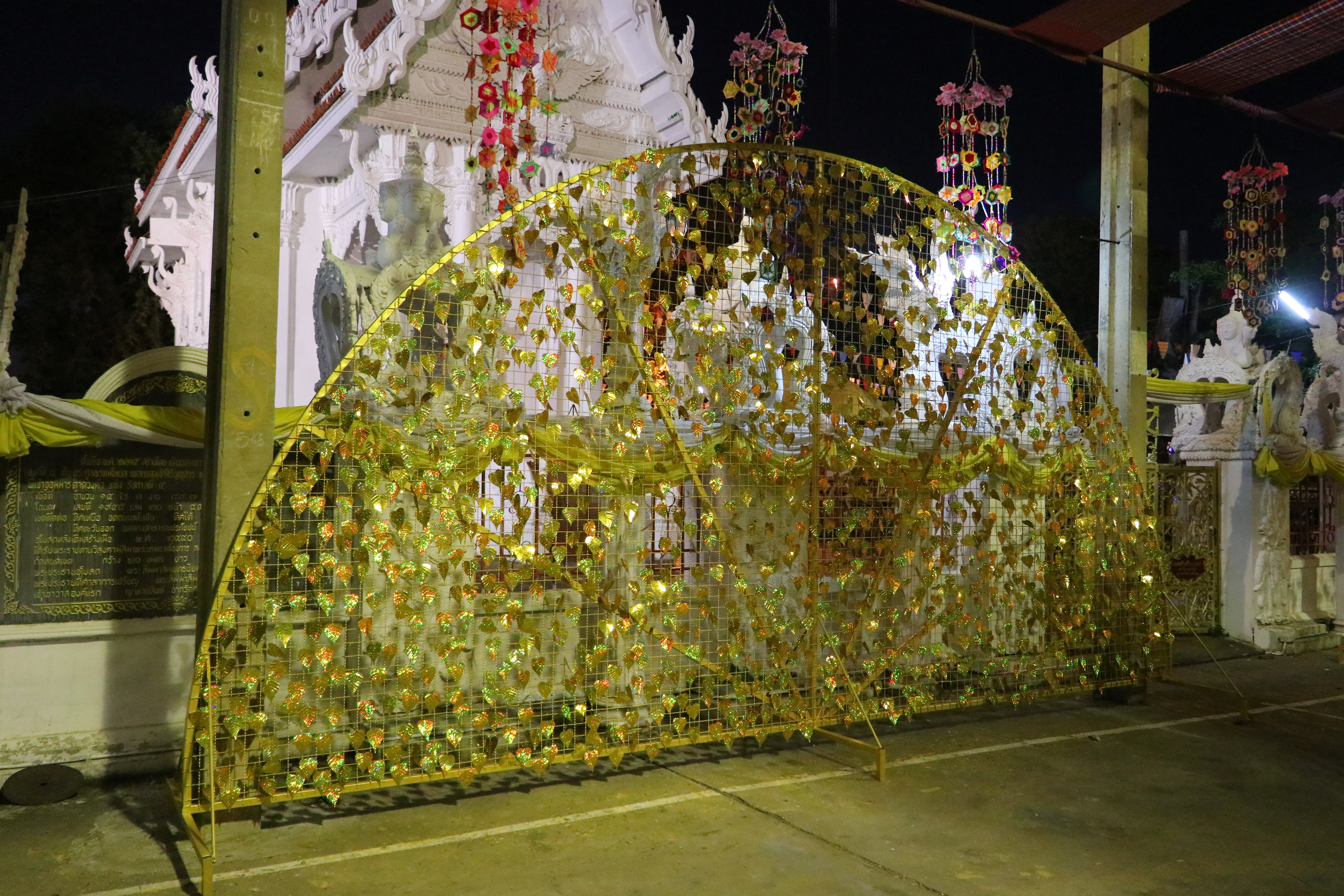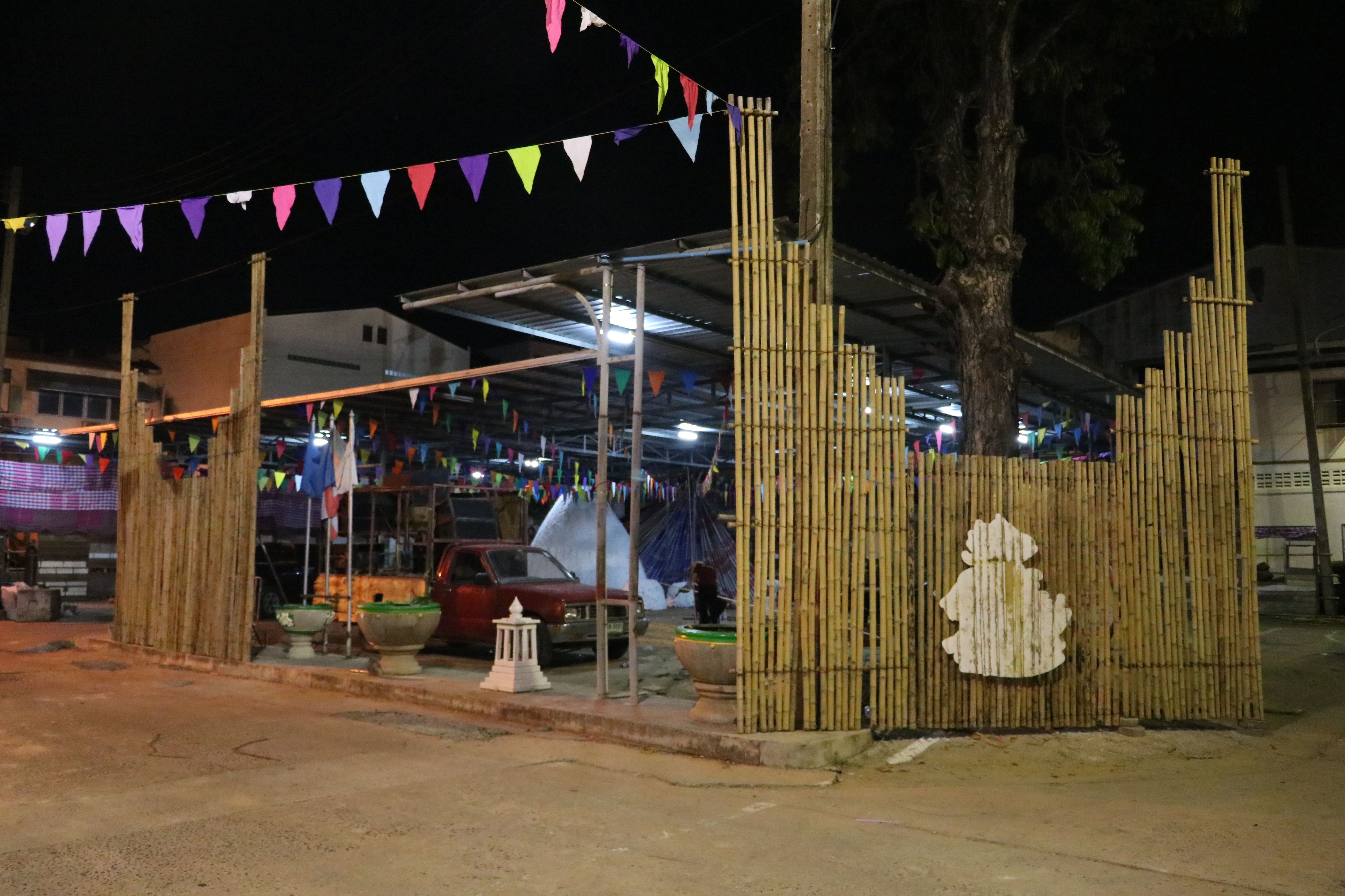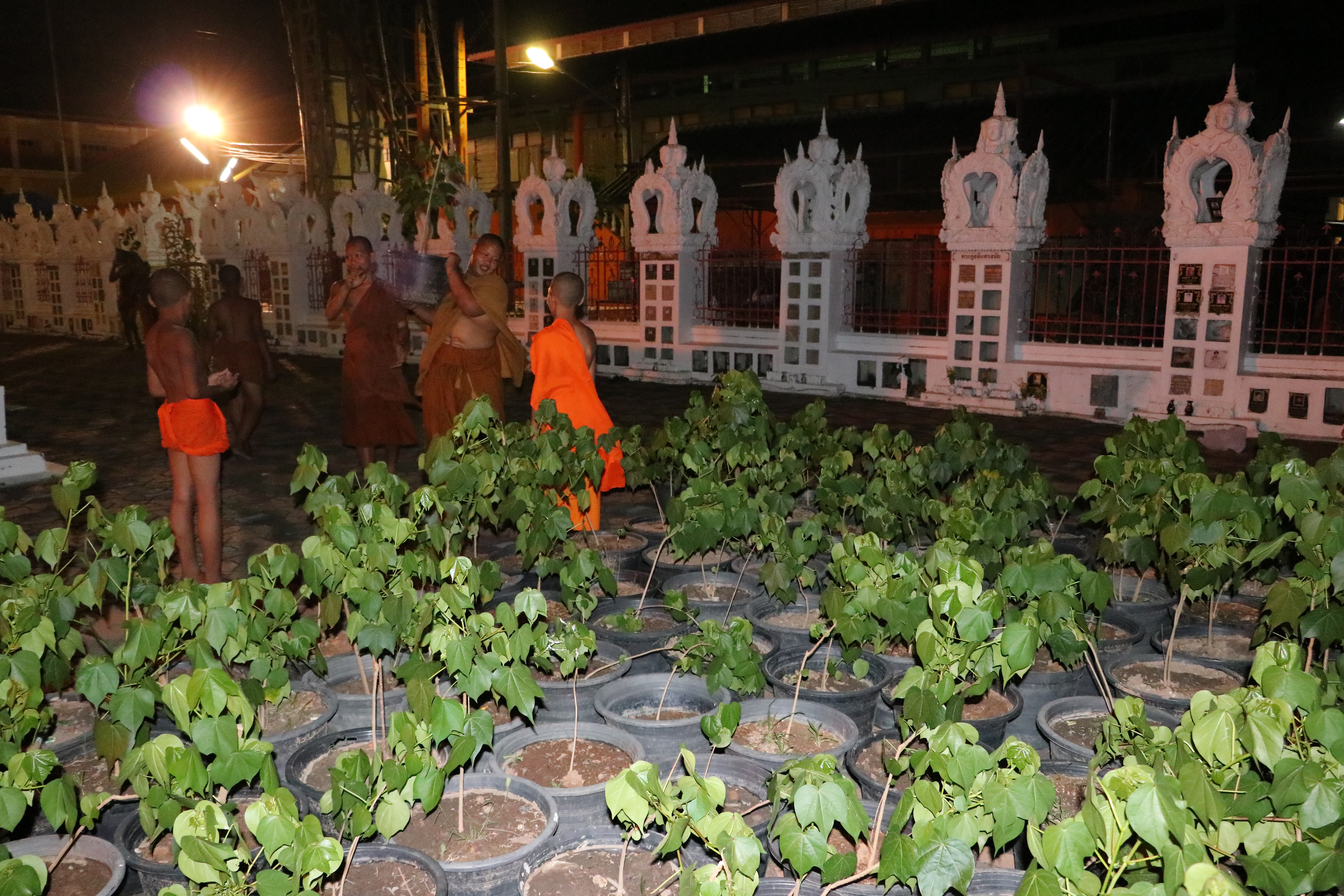ที่ วัดไชยมงคล ต.ในเมือง อ.เมือง จ.อุบลราชธานี บรรยากาศยามดึกดื่นค่ำคืน พระครูจิตวิสุทธิญาณคุณ เจ้าอาวาสวัดไชยมงคล พร้อมด้วย คณะครูโรงเรียนพุทธเมตตาวิทยา พระภิกษุ สามเณรได้หลอมรวมใจกัน จัดเตรียม ตกแต่ง ซุ้ม สถานที่ต่างๆ ภายในวัด อย่างตั้งอกตั้งใจ โดยไม่รู้จักเหน็ดเหนื่อย เพื่อเตรียมงานทอฝ้ายเป็นสายบุญ จุลกฐิน ถิ่นอุบลคนมีธรรม ครั้งที่ 11 จังหวัดอุบลราชธานี ที่จะมีขึ้นในช่วงต้นเดือนพฤศจิกายน 2562