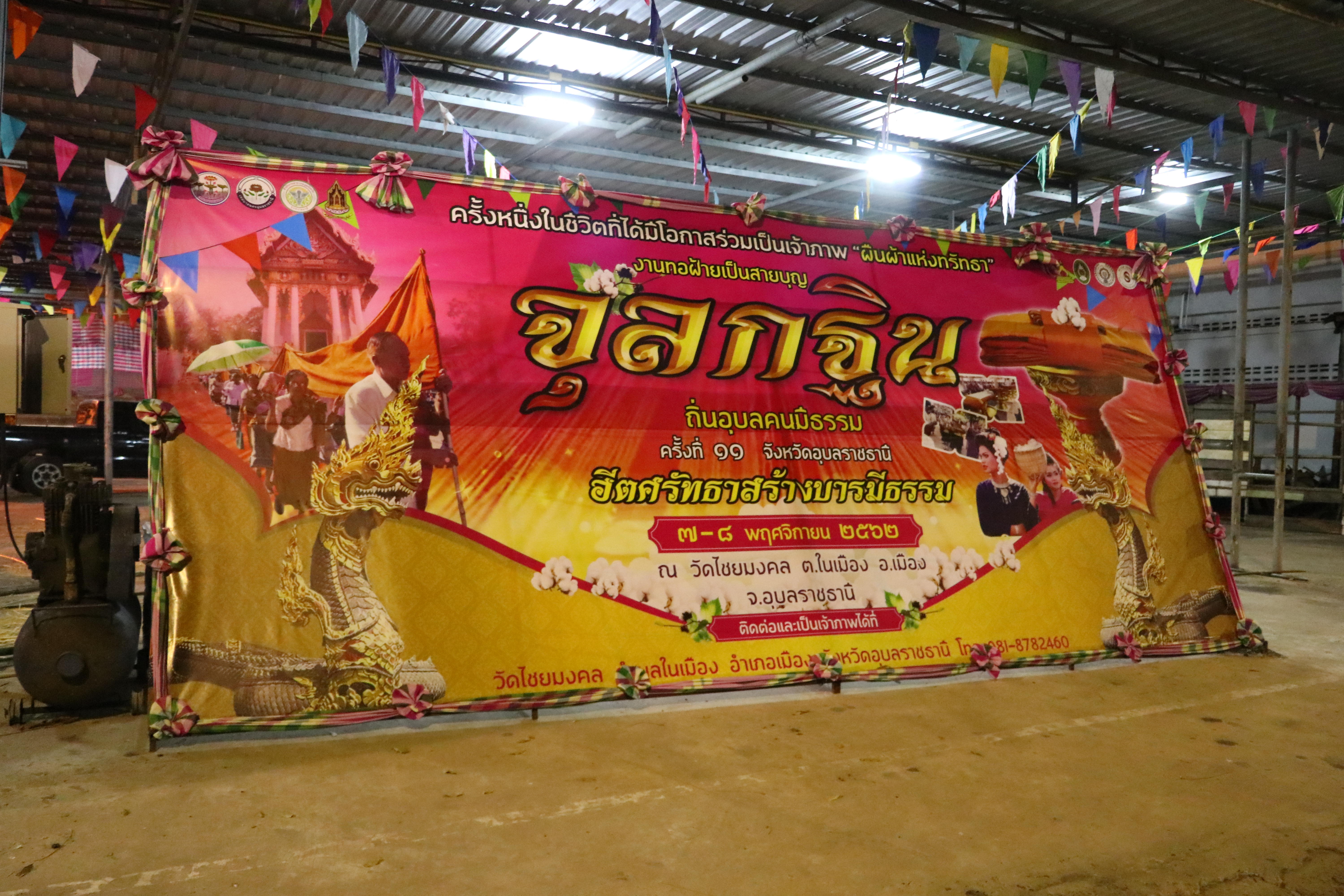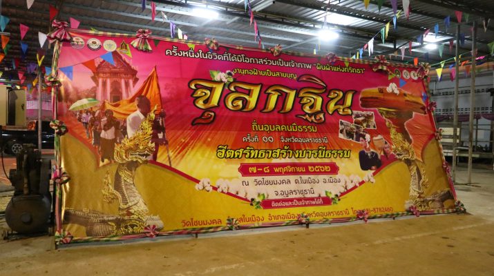 ทอฝ้ายเป็นสายบุญ จุลกฐิน ถิ่นอุบลคนมีธรรม อุบลราชธานี ปีที่ 11 ฮีตศรัทธาสร้างบารมีธรรม รวมพลังแห่งความร่วมมือร่วมใจ ความสมัครสมานสามัคคี แม้ในยามดึกดื่น