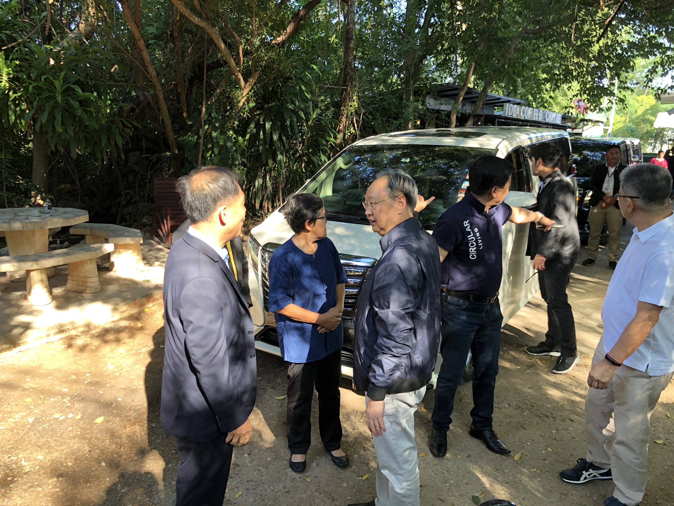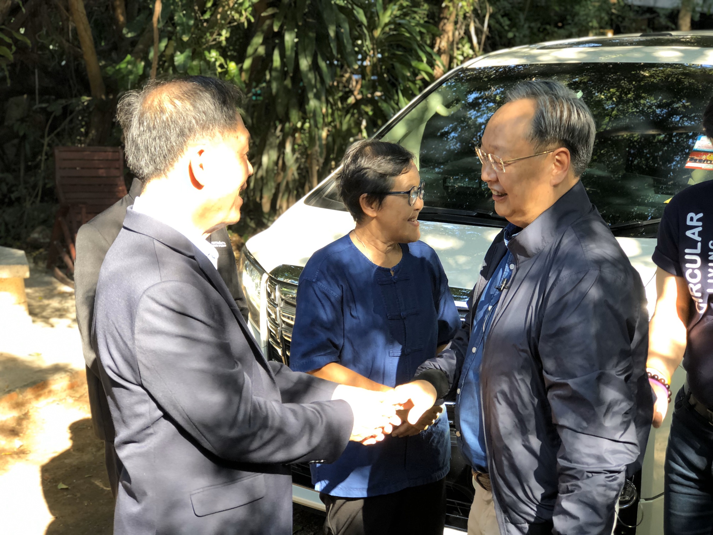 โดยมี นายวาทิน ทองแก้ว พลังงานจังหวัดกาญจนบุรี นายแพทย์พลเดช ปิ่นประทีป สมาชิกวุฒิสภา นายสมเกียรติ วอนเพียร ส.ส.จังหวัดกาญจนบุรี เขต 2 พรรคพลังประชารัฐ นายยศวัฒน์ มาไพศาลสิน ส.ส.จังหวัดกาญจนบุรี นางทิวาพร ศรีวรกุล ผู้ก่อตั้งศูนย์กสิกรรมธรรมชาติท่ามะขาม และนายยุทธการ มากพันธ์ ผู้จัดการศูนย์กสิกรรมธรรมชาติท่ามะขาม ให้การต้อนรับ