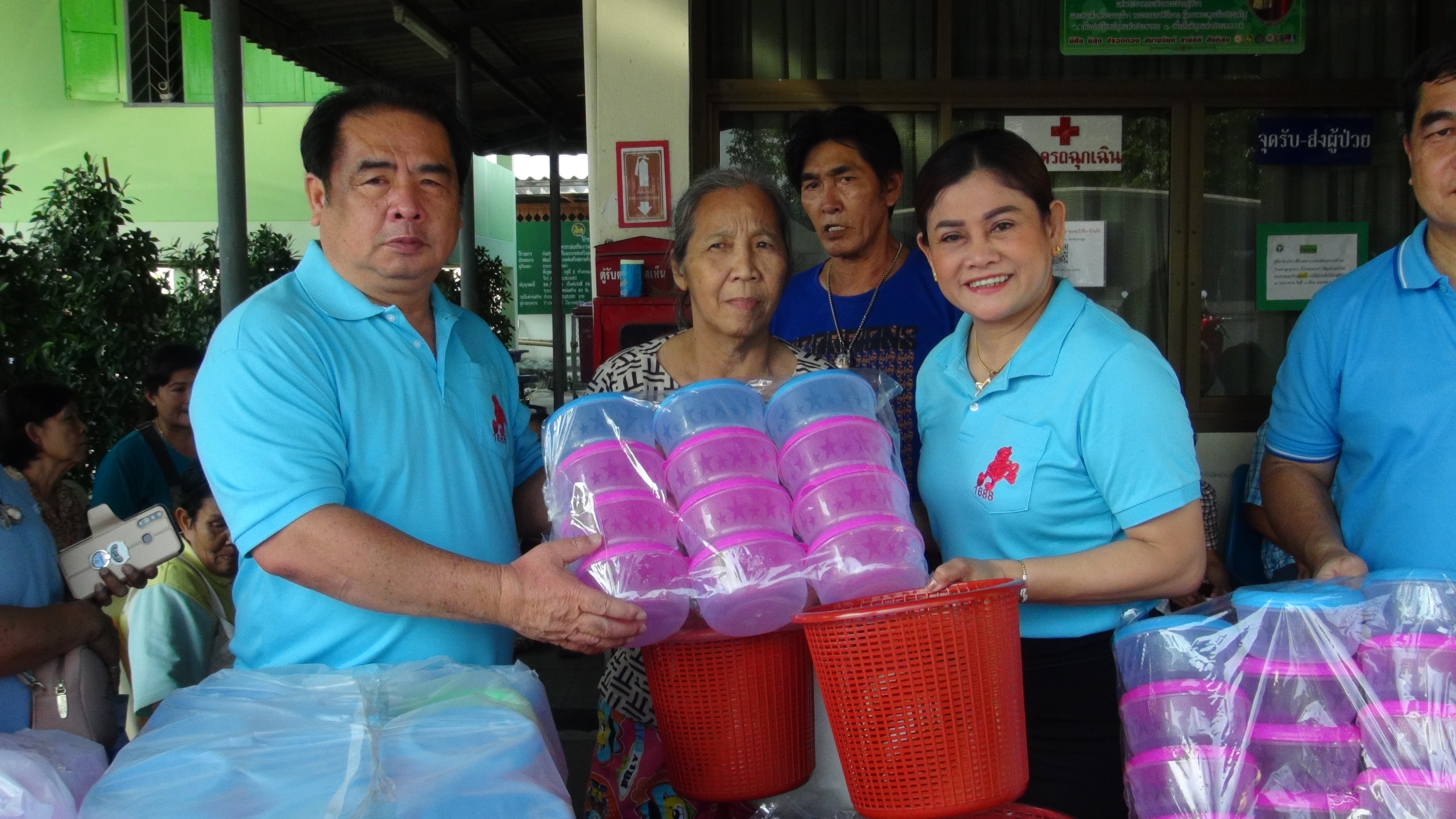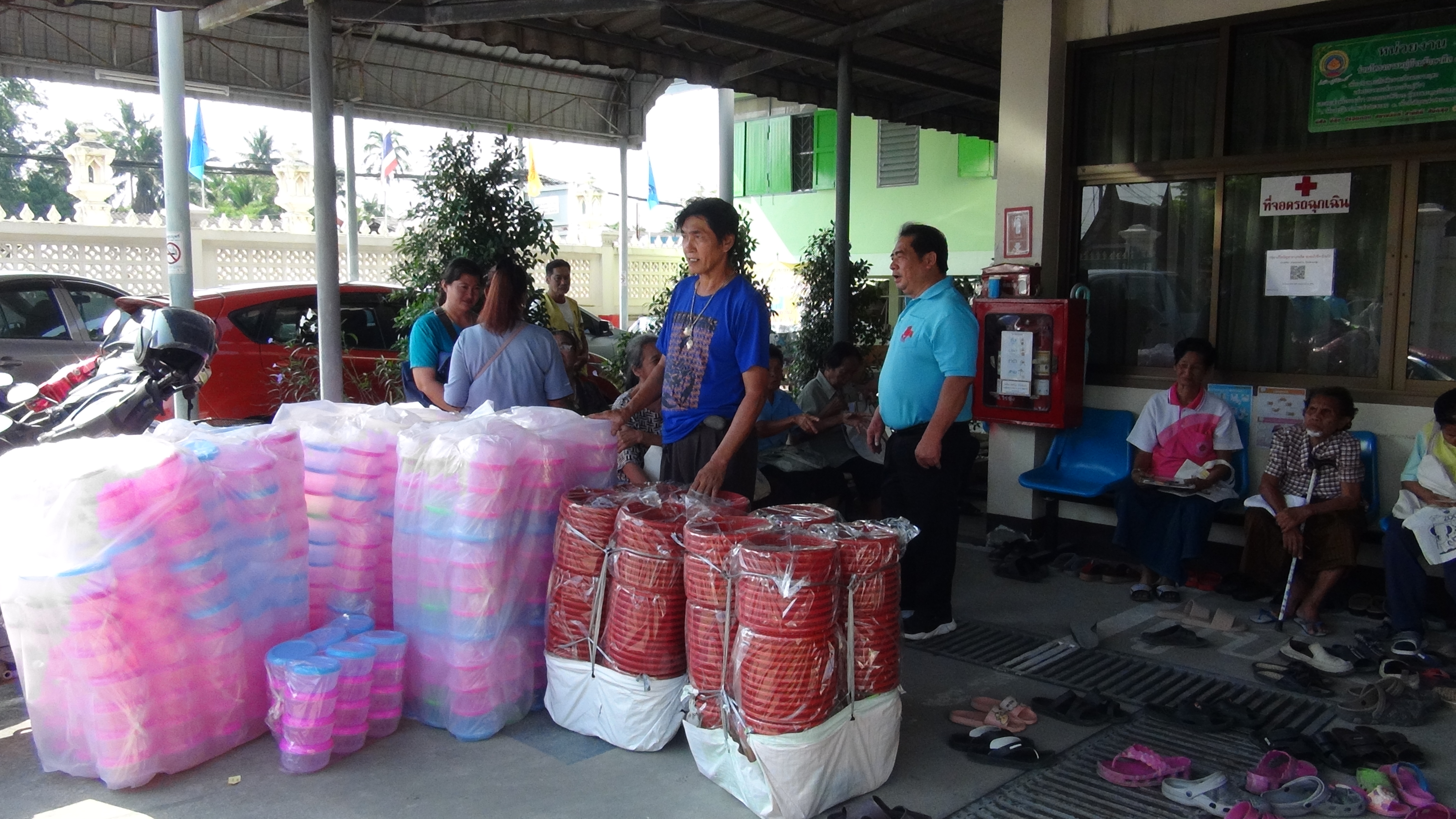กองบุญเมืองไร่ขิงมอบกล่องพลาสติกและตะกร้าพลาสติกให้รพ.สต.บ้านท่าพูดใส่ยาให้ผู้ป่วยกลับบ้าน