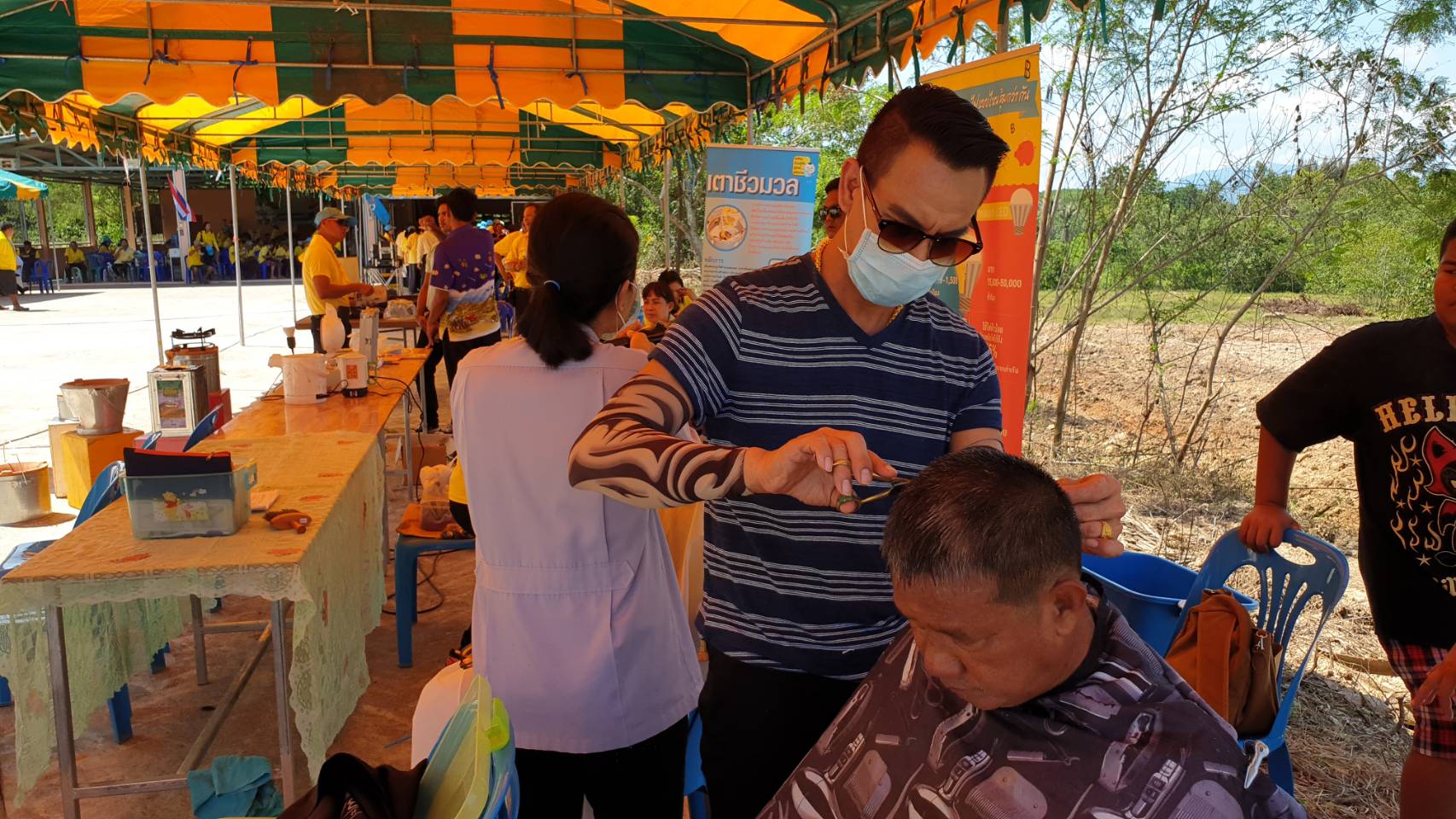 ร่วมกิจกรรมโดยภายในกิจกรรมได้มีการมอบถุงยังชีพเพื่อเป็นการบรรเทาความเดือดร้อนทางด้านเครื่องอุปโภคบริโภค จากกาชาดหัวหิน รวมถึงเปิดหน่วยศูนย์ดำรงธรรมอำเภอเคลื่อนที่ เพื่อรับแจ้งเรื่องราวร้องทุกข์ และปัญหาความเดือดร้อน นอกจากนี้ยังมีบริการตัดผมฟรีให้กับชาวบ้านซึ่งอยู่ในพื้นที่ห่างไกลจากตัวเมือง จากสำนักงานพัฒนาฝีมือแรงงานจังหวัดประจวบคีรีขันธ์ และชมรมจิตอาสาบาร์เบอร์ประจวบฯ กิจกรรมเลี้ยงอาหารมื้อกลางวัน กิจกรรมโครงการ อบต.พบประชาชนนอกสถานที่ ให้บริการในด้านต่างๆ อาทิ ชำระภาษี ชำระค่าน้ำประปา รวมถึงการเปิดรับลงทะเบียนเบี้ยยังชีพผู้สูงอายุ ปีงบประมาน พ.ศ.2564 กิจกรรมบริการนวดแผนไทยฟรี ดูแลฟื้นฟูส่งเสริมสุขภาพชุมชน จากโรงพยาบาลทับสะแก กิจกรรมนิทรรศการแนะแนวส่งเสริมด้านพลังงาน จากสำนักงานพลังงานจังหวัดประจวบ และกิจกรรมสรรพสามิตสาขาบางสะพานเพื่อชุมชน สังคม และสิ่งแวดล้อม เป็นต้น