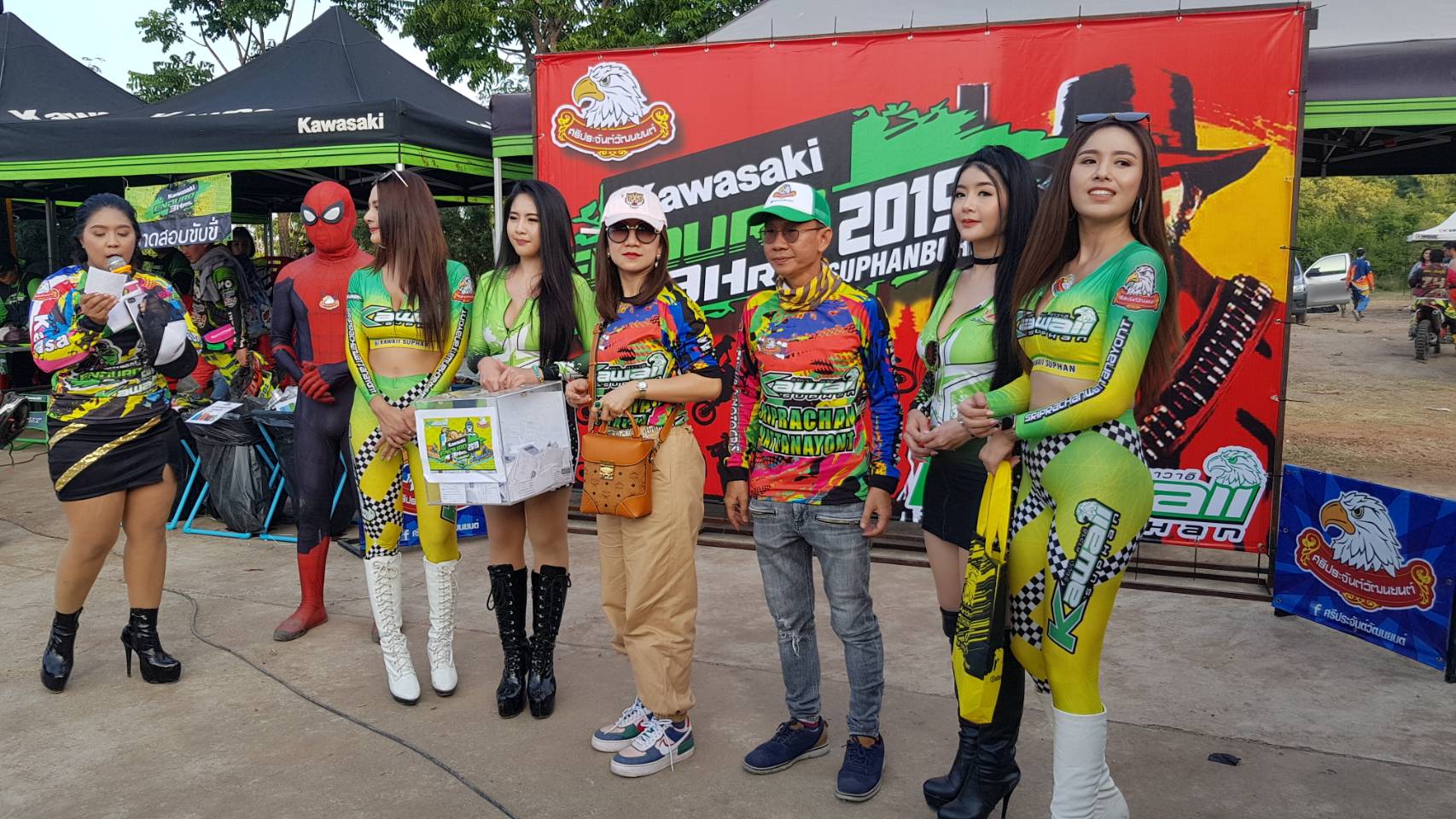 ที่สนามแข่งขันจักรยานยนต์เขาใหญ่ อำเภอเดิมบางนางบวช นายอาทิตย์ (เสี่ยหนุ่ม) สุริยะพันธุ์พงศ์ กรรมการผู้จัดการ บริษัทศรีประจันต์วัฒนยนต์ จำกัด ร่วมกับ คาวาซากิ จัดการแข่งขันจักรยานยนต์ เอ็นดูโร่ วิบากสนามที่ 4 ซึ่งเป็นสนามสุดโหด ทั้งสนุก ตื่นเต้น เร้าใจ มีแฟนคลับมาชมมาเชียร์กันจำนวนมากโดยลุ้นกันชนิดติดขอบสนามแบบไม่กลัวอันตรายแม้อากาศจะร้อนอบอ้าว เพียงขอให้เห็นนักแข่งกันแบบชัดๆ จะนั่งดู ยืนดู ปีนต้นไม้ดู ก็แล้วแต่ตามที่สบายใจและปลอดภัย ภายในงานก็มีกิจกรรมมากมาย ทั้งเล่นเกมส์ แจกของรางวัล การทดสอบทักษะการขับขี่รถจักรยานยนต์ทั้งภาคทฤษฎีและงานนี้มี พริตตี้สาวสวยและซุปเปอร์ฮีโร่ไสปเดอร์แมน มาสร้างสีสัน ทั้งเด็กเล็กทั้งผู้ใหญ่ขอถ่ายรูปเซลฟี่ด้วยไม่ขาดสาย เป็นขวัญใจในงานนี้เลยทีเดียว ยิ่งเวลาถ่ายรูปจะโพสต์ท่าทางต่างๆ เพื่อให้รูปออกมาสวยและเท่ห์ และก่อนพิธีเปิดการแข่งขันขัน ช่วงก่อนปล่อยตัวนักแข่งแต่ละรุ่น จะมีการถ่ายภาพหมู่ทั้งประธานเปิดงาน คนจัดนักแข่งและแขกผู้มีเกียรติ รวมถึงพริตตี้สาวสวยและพี่ซุปเปอร์ฮีโร่ไสปเดอร์แมน