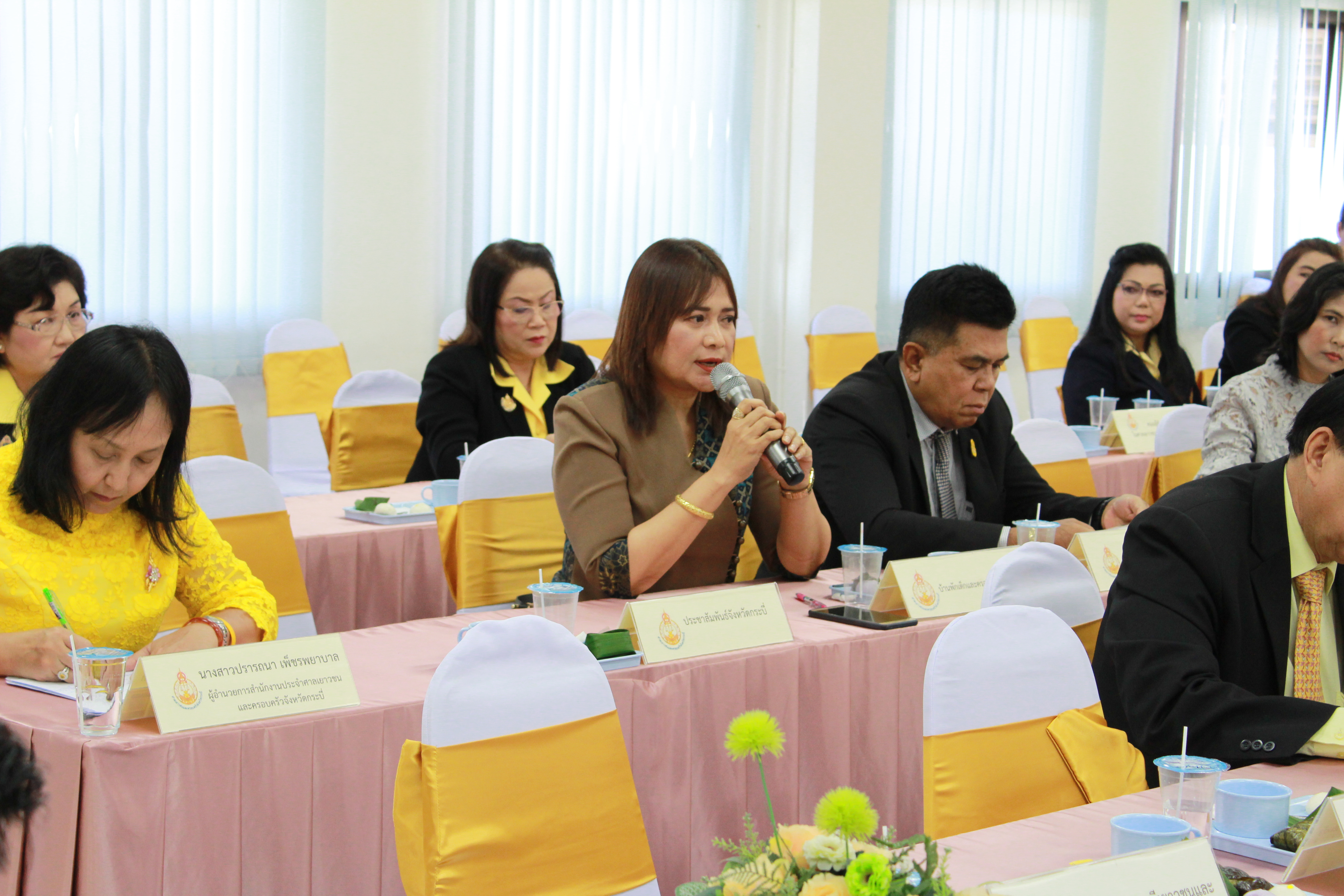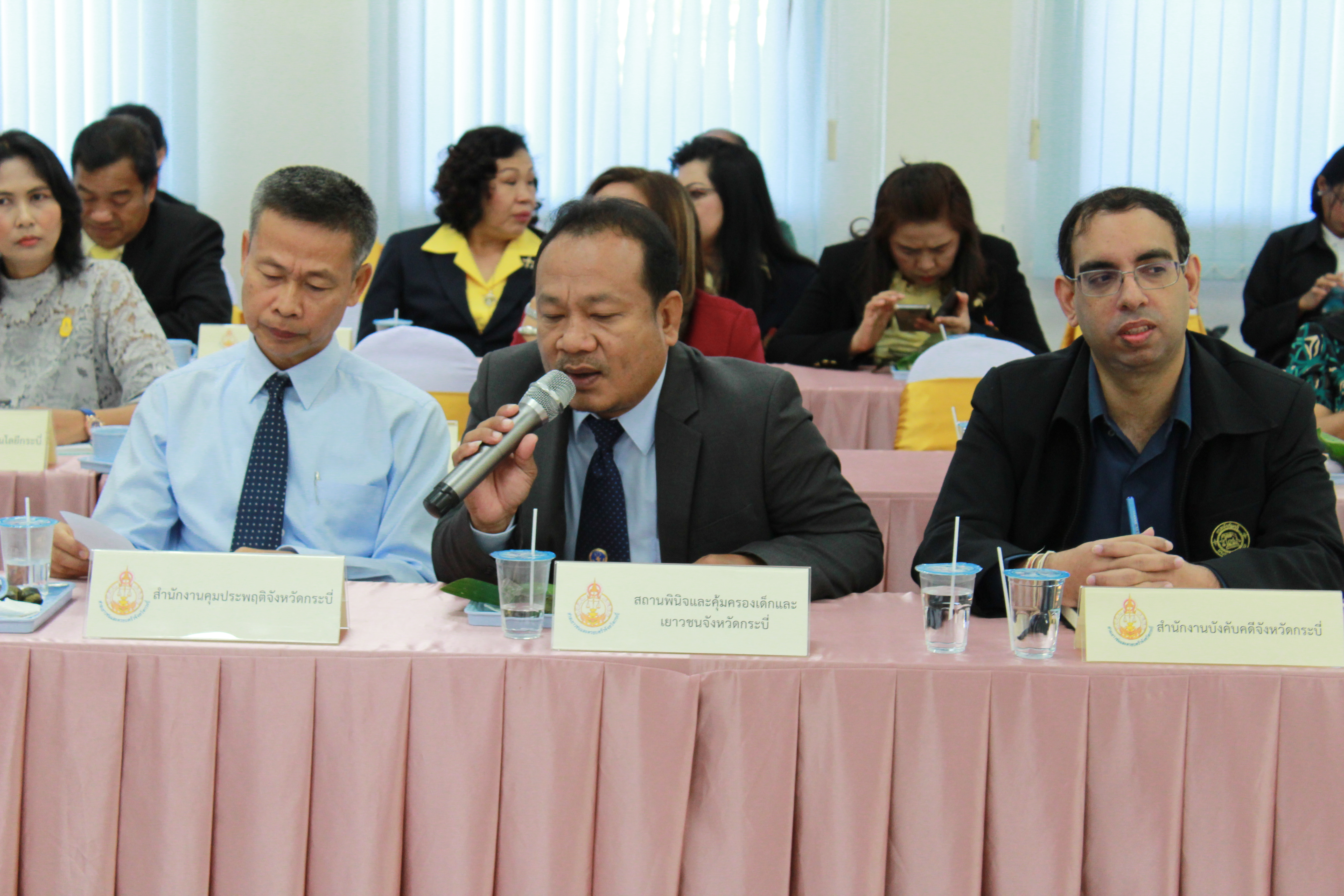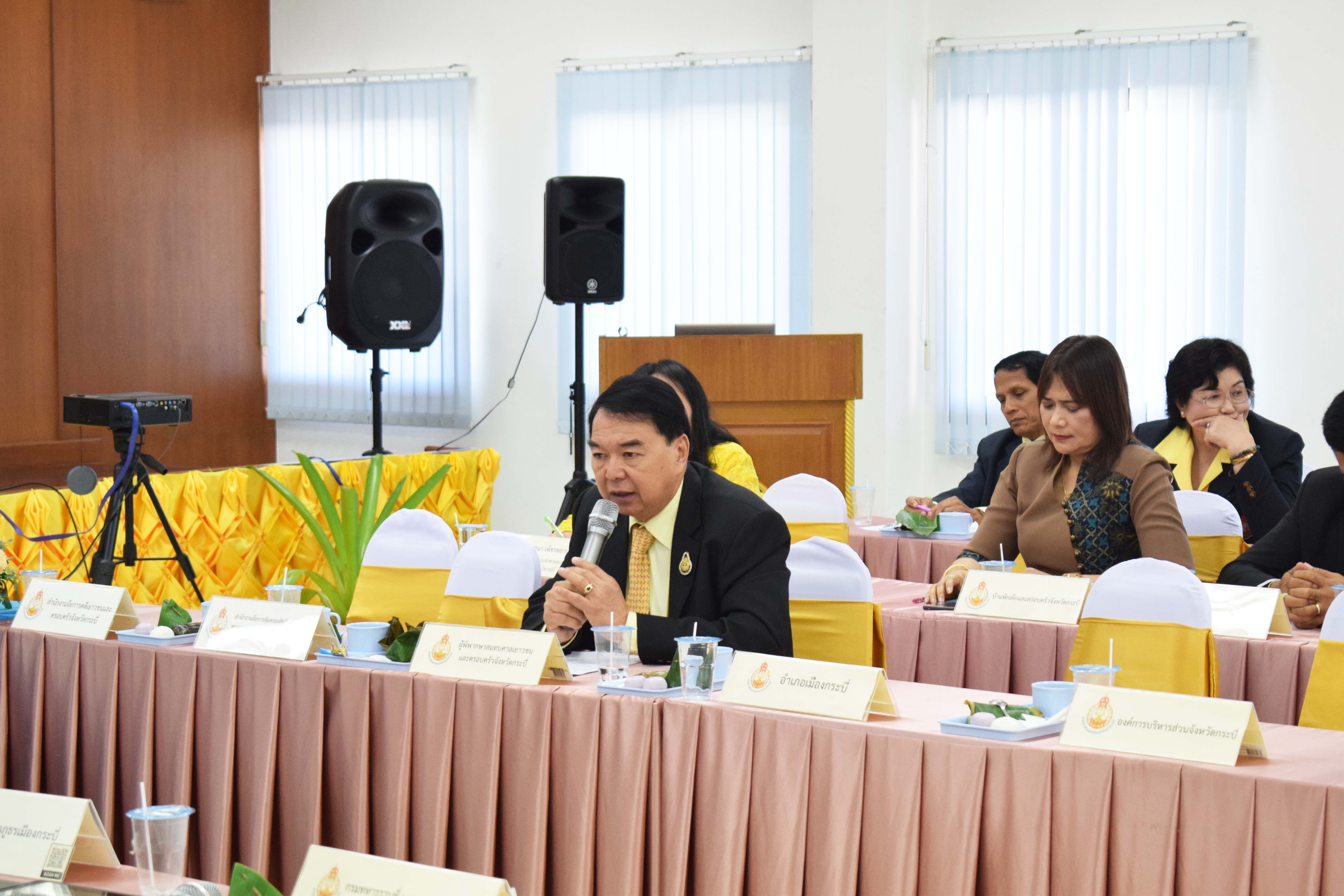 โดยในครั้งนี้ได้รับความสนใจ จากเครือข่ายภาคเอกชนเป็นจำนวนมากที่ประสงค์ขอเข้าร่วม เช่น สภาอุตสาหกรรมจังหวัดกระบี่ สมาคมธุรกิจการท่องเที่ยวจังหวัดกระบี่ สมาคมสตรีจังหวัดกระบี่ สโมสรไลออนส์จังหวัดกระบี่ และศูนย์ส่งเสริมศิลปาชีพระหว่างประเทศ ซึ่งรวมแล้วมีหน่วยงานเข้าร่วมจำนวน 45 หน่วยงาน ณ ห้องประชุมกรมหลวงราชบุรีดิเรกฤทธิ์ ศาลเยาวชนและครอบครัวจังหวัดกระบี่ อำเภอเมืองกระบี่ จังหวัดกระบี่