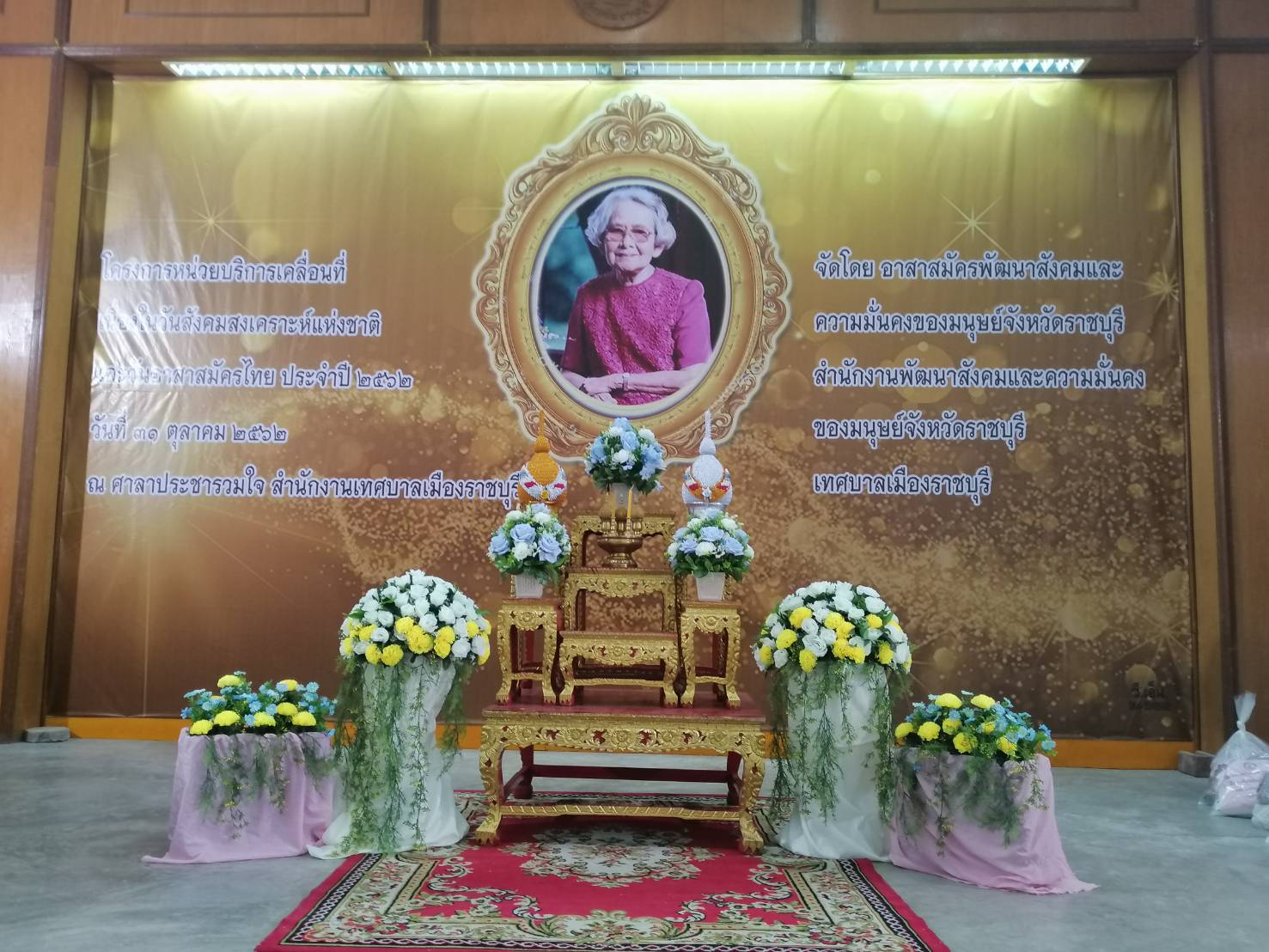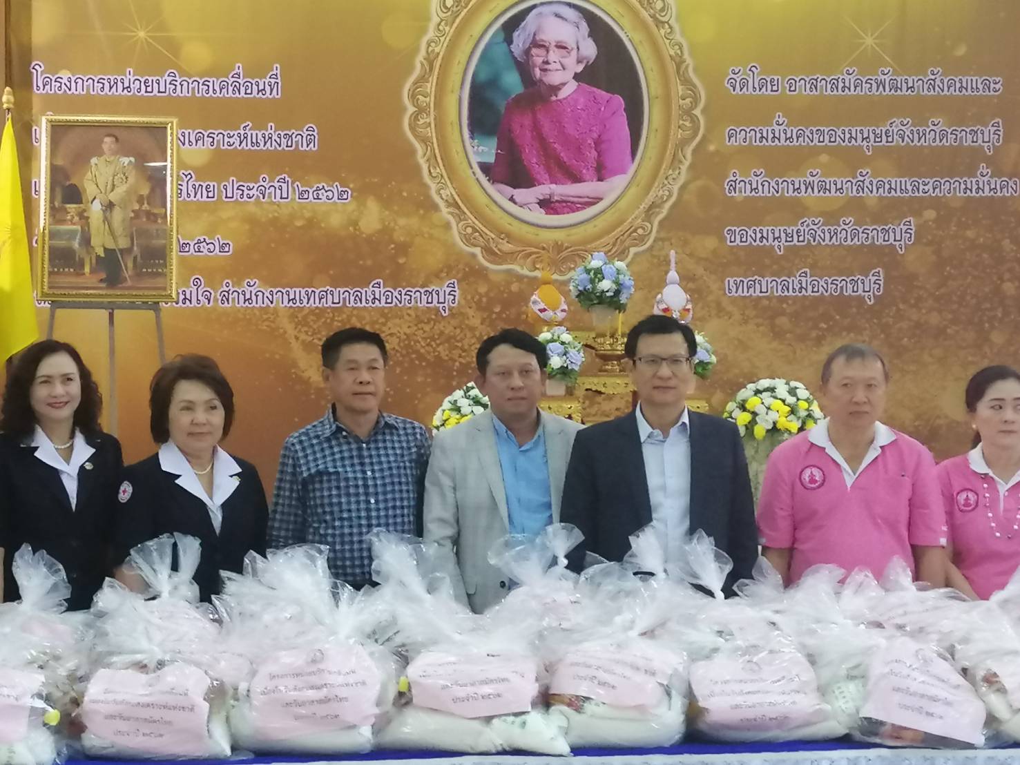 โครงการหน่วยบริการเคลื่อนที่มีกิจกรรมมอบถุงยังชีพแก่ผู้ด้อยโอกาสและผู้พิการจำนวน 300 คนได้รับการสนับสนุนช่างตัดผมจากโรงเรียนสอนตัดผมแก้วนำช่างมาบริการตัดผมให้ฟรี การออกหน่วยเยี่ยมผู้ป่วยติดเตียง14 ตำบลในพื้นที่อ.เมือง จ.ราชบุรี การจัดกิจกรรมในครั้งนี้เพื่อเป็นการสงเคราะห์แก่ผู้ด้อยโอกาสและผู้พิการให้ได้รับการช่วยเหลือมีชีวิตความเป็นอยู่ที่ดีต่อไปในอนาคตและถวายเป็นพระราชกุศลสมเด็จพระศรันครินทราบรมราชชนนีเนื่องในวันสังคมสงเคราะห์แห่งชาติและวันอาสาสมัครไทยประจำปี 2562.