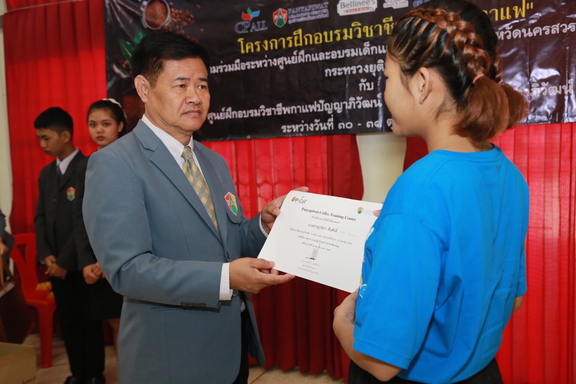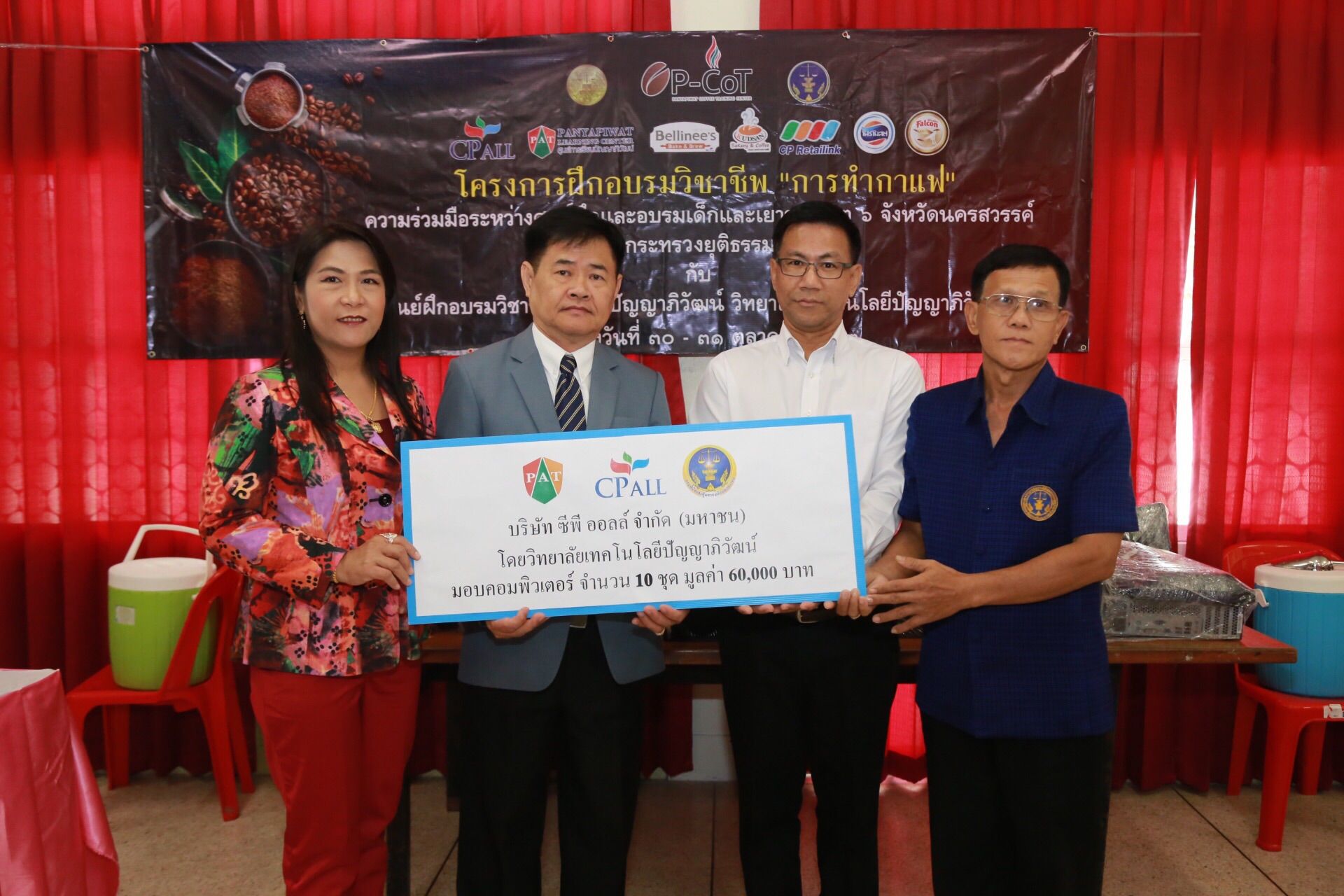 ส่วนการอบรมวิชาชีพการทำกาแฟได้รับการสนับสนุนจาก น.ส.กวิฐาร์พรณ์ จาตุรนต์ภากร ผู้ช่วยผู้จัดการทั่วไปส่วนงานมาตรฐานสินค้าการบริการและกิจกรรมพิเศษหน่วยงานคัดสรรและเบลลินี่ พรีเมี่ยมคาเฟ่และทีมงานให้ความรู้และทักษะวิชาชีพการทำกาแฟ ซึ่งเป็นวิชาชีพที่เด็กและเยาวชนสามารถนำไปประกอบอาชีพได้อีกทางหนึ่ง ทางด้านนายคมกฤช ศิริตระกูล และนายทวี โสนนอก กล่าวด้วยว่า ขอขอบคุณวิทยาลัยเทคโนโลยีปัญญาภิวัฒน์,ศูนย์การเรียนปัญญาภิวัฒน์จังหวัดนครสวรรค์และหน่วยงานคัดสรรและเบลลินี่ที่ให้โอกาสกับเด็กและเยาวชนทางการศึกษาและการมีอาชีพที่มั่นคง เป็นการสร้างอนาคตที่ดีให้กับเด็กและเยาวชน รวมถึงครอบครัว เป็นการสร้างคนดีสู่สังคม และร่วมมือกันสร้างเครือข่ายที่เข้มแข็งให้กับเด็กและเยาวชน เป็นการดูแล ช่วยเหลือสังคมร่วมกัน .