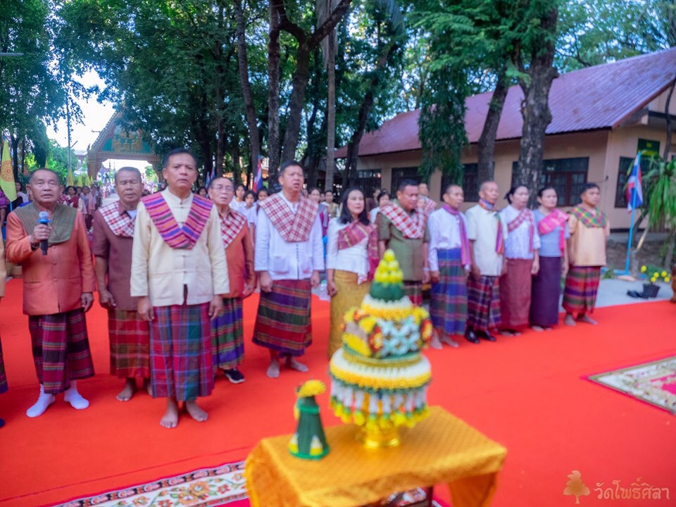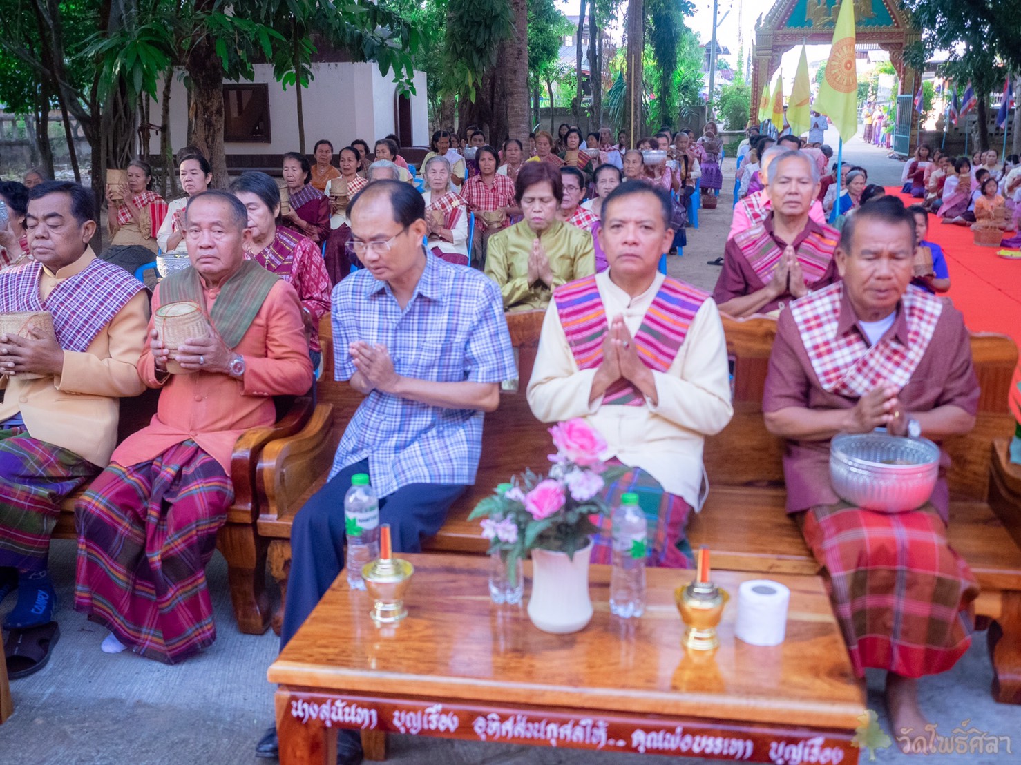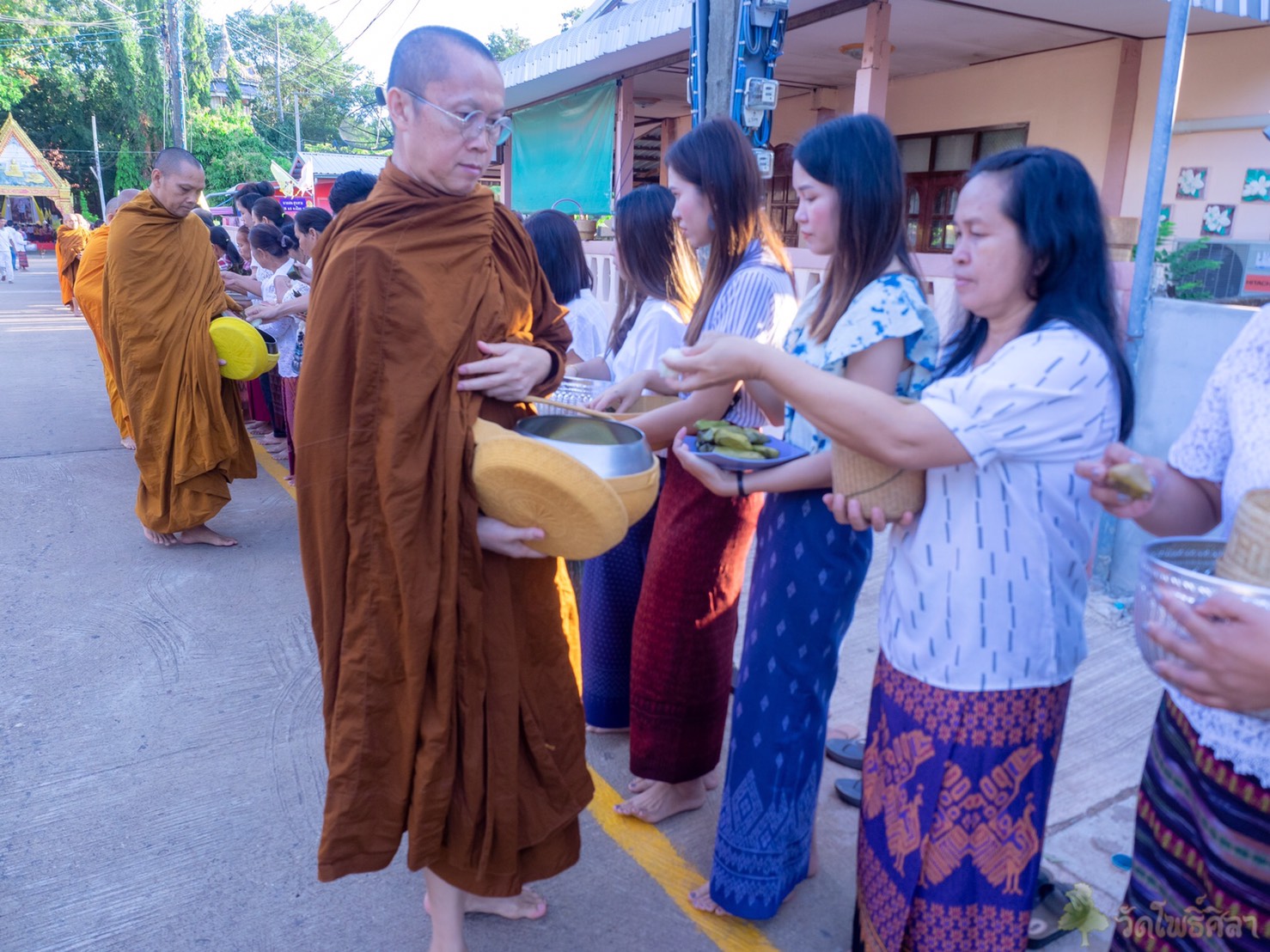 อำนาจเจริญ ทำบุญตักบาตถนนสายวัฒนธรรม นุ่งซิ่นหมี่ สวมโสร่งไหม ห่มสไบเฉียง พร้อมเพรียงกันตักบาตร