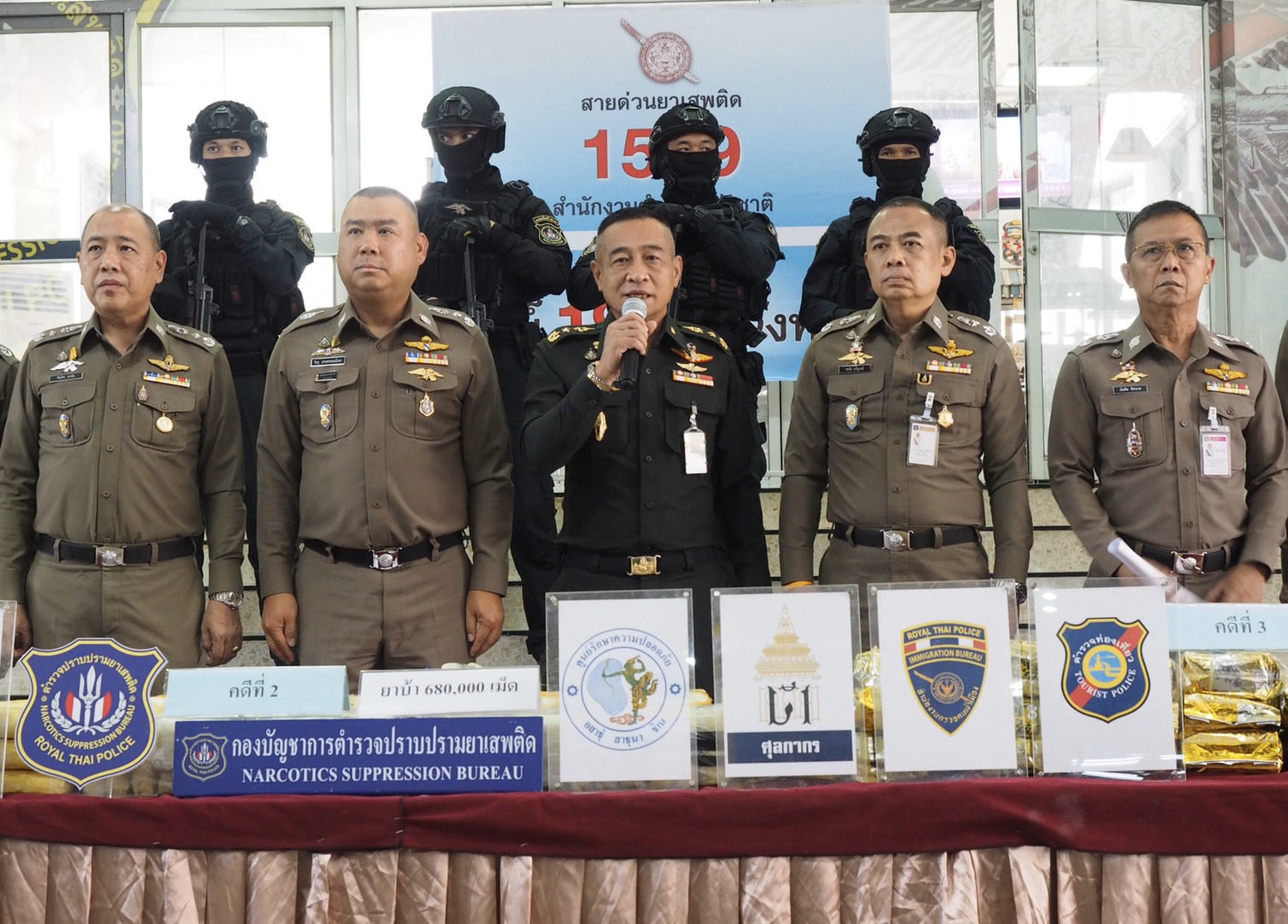 กองอำนวยการรักษาความมั่นคงภายในราชอาณาจักร (กอ.รมน.) โดย พล.อ.ธีรวัฒน์ บุณยะวัฒน์ เลขาธิการ กอ.รมน. มอบหมาย พล.ท.กิตติธัช บุพศิริ ผู้อำนวยการศูนย์ประสานการปฏิบัติที่ 2 (ผอ.ศปป.2 กอ.รมน.) ร่วมแถลงข่าวการบูรณาการขับเคลื่อน การแก้ไขปัญหายาเสพติด กับ พล.ต.อ.สุชาติ ธีระสวัสดิ์ รอง ผบ.ตร.(ปป.),พล.ต.ท.ชินภัทร สารสิน ผบช.ปส. ,พล.ต.ต.พรชัย เจริญวงศ์ รอง ผบช.ปส. ตลอดจน ผู้แทนสำนักงาน ป.ป.ส. และหน่วยภาคีเครือข่าย ณ กองบัญชาการตำรวจปราบปรามยาเสพติด เมื่อ 6 พฤศจิกายน 2562 โดยแถลงผลการจับกุมขบวนการค้ายาเสพติดรายสำคัญ กระทำผิดในห้วงวันที่ 29 ตุลาคม-2 พฤศจิกายน 2562 ในท้องที่ อ.พยุหะคีรี จว.นครสวรรค์,อ.เมือง จว.พะเยา ,อ.ดอยสะเก็ด จว.เชียงใหม่ และ สนามบินสุวรรณภูมิ รวม 4 คดี ผู้ต้องหา 5 คน ของกลางยาบ้า จำนวน 980,000 เม็ด ,ไอซ์ น้ำหนักประมาณ 30 กิโลกรัม,โคคาอีน น้ำหนักประมาณ 1 กิโลกรัม