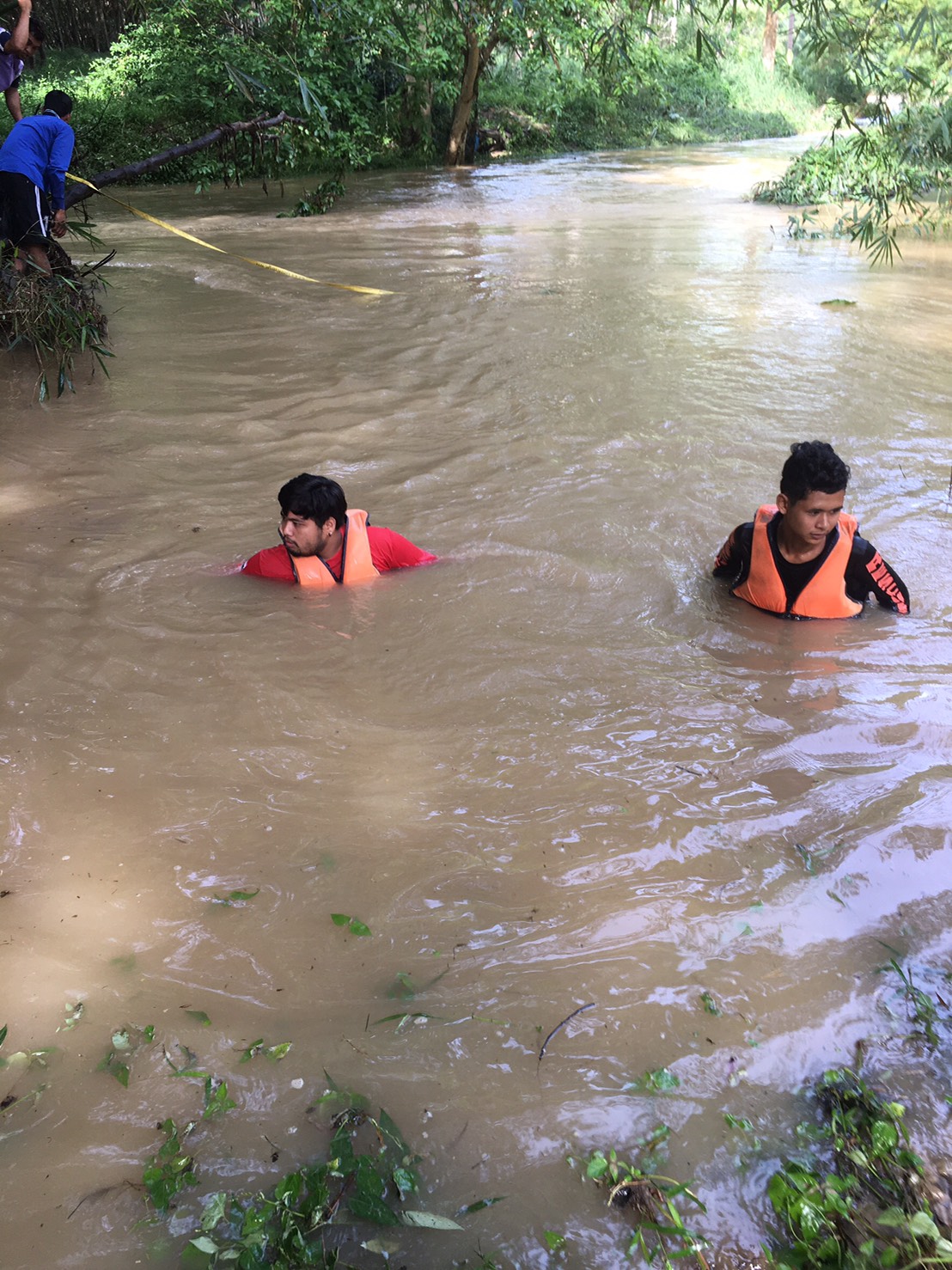 ขณะที่เจ้าหน้าที่อีกส่วนหนึ่งได้เร่งกันงมหา ด.ญ. พิชญาภา ดีหะริง หรือ น้องพิตต้า หนูน้อยวัย 1 ปี 10 เดือน ที่ได้ถูกกระแสน้ำพลัดพาไปโดยยังไม่ทราบชะตากรรม