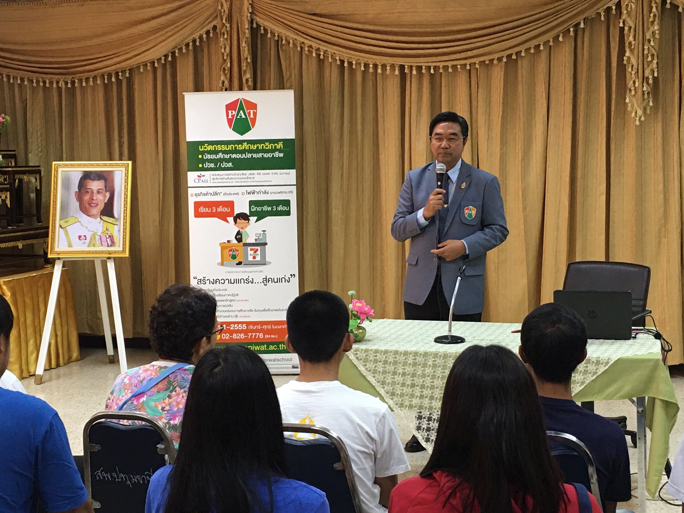 ที่สถานพินิจและคุ้มครองเด็กและเยาวชนจังหวัดปทุมธานี นายจิระประวัติ ชุมสาย ณ อยุธยา หัวหน้าสถานแรกรับเด็กและเยาวชนจังหวัดปทุมธานี ร่วมกับนายวิเชียร เนียมน้อม ผู้อำนวยการวิทยาลัยเทคโนโลยีปัญญาภิวัฒน์และคณะครูแนะแนว อบรมให้ความรู้ด้านการศึกษาและการสร้างอาชีพให้กับเด็กและเยาวชนรวมทั้งผู้ปกครองเพื่อการวางแผนการศึกษาต่อที่ถูกต้อง เหมาะสมกับสภาพเศรษฐกิจทางสังคมและครอบครัว โดยนายวิเชียร เนียมน้อม กล่าวว่าวิทยาลัยเทคโนโลยีปัญญาภิวัฒน์เป็นสถานศึกษาที่เปิดการเรียนการสอนระดับประกาศนียบัตรวิชาชีพ(ปวช.) และระดับประกาศนียบัตรวิชาชีพชั้นสูง(ปวส.) ในสาขาธุรกิจค้าปลีกและสาขาไฟฟ้ากำลัง เด็กและเยาวชนที่จบการศึกษาชั้นมัธยมศึกษา(ม.3) จะได้รับวุฒิการศึกษาและการมีอาชีพมีงานทำที่มั่นคง สามารถเลี้ยงดูตนเองและครอบครัวได้
