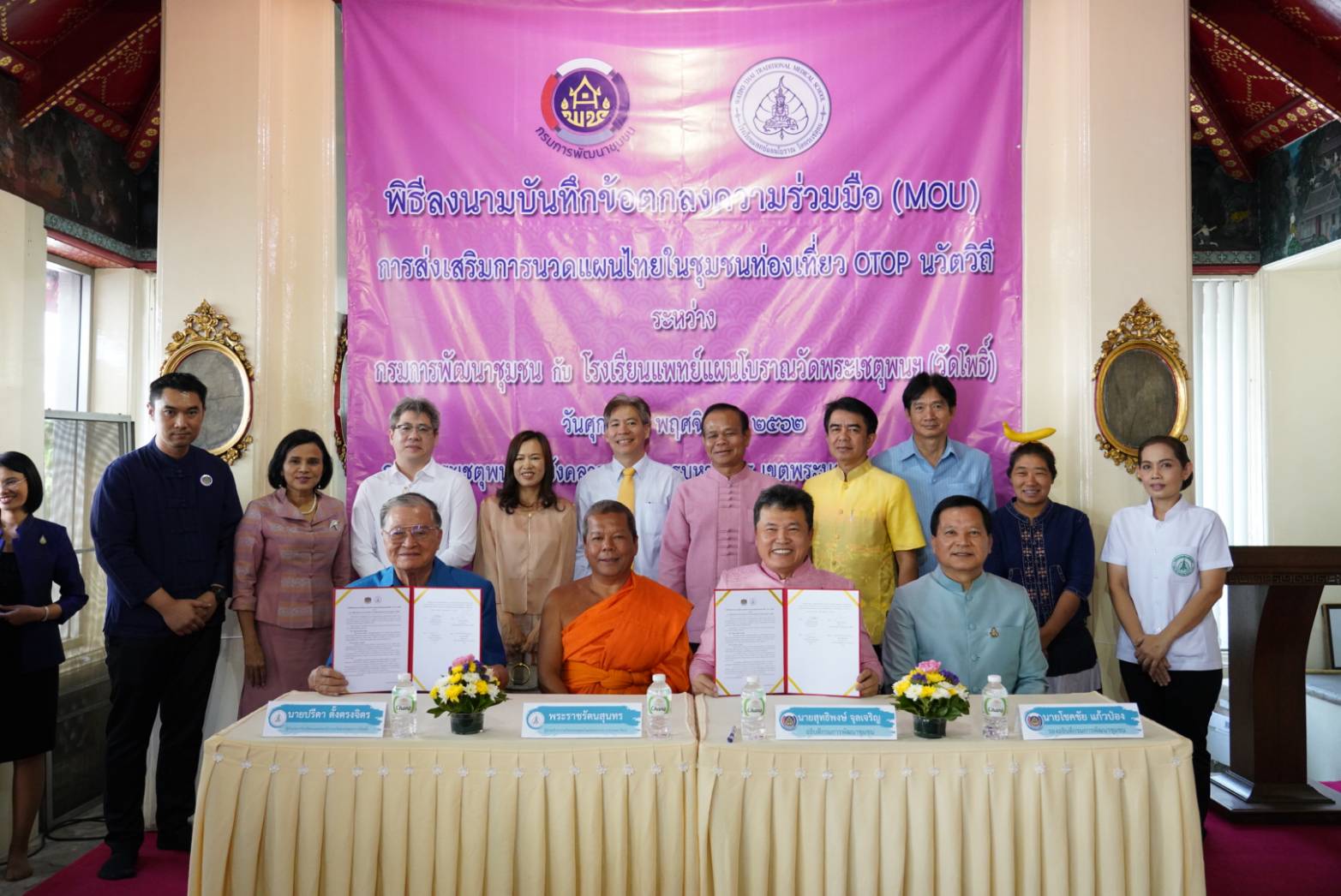 เมื่อวันที่ 8 พ.ย.นายสุทธิพงษ์ จุลเจริญ อธิบดีกรมการพัฒนาชุมชน (พช.) กระทรวงมหาดไทย ร่วมพิธีลงนามบันทึกข้อตกลงความร่วมมือกับนายปรีดา ตั้งตรงจิตร ผู้อำนวยการโรงเรียนแพทย์แผนโบราณวัดพระเชตุพนฯ (วัดโพธิ์) โดยมี พระราชรัตนสุนทร รองเจ้าอาวาสวัดพระเชตุพนฯ นายโชคชัย แก้วป่อง รองอธิบดีกรมการพัฒนาชุมชน คณะผู้บริหารกรมการพัฒนาชุมชน คณะผู้บริหารโรงเรียนแพทย์แผนโบราณวัดพระเชตุพนฯ ร่วมเป็นสักขีพยาน ณ โรงเรียนแพทย์แผนโบราณวัดพระเชตุพนวิมลมังคลาราม ราชวรมหาวิหาร