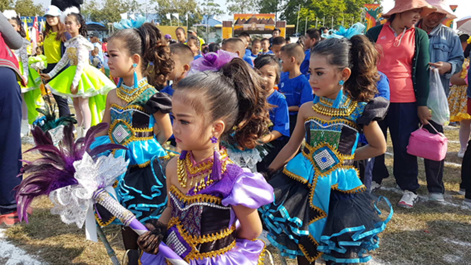 สำหรับไฮไลท์ของงานได้มีขบวนพาเหรดของนักกีฬา ซึ่งมีทั้งเด็กตั้งแต่ชั้นอนุบาลไปจนถึงระดับมัธยมปลาย แต่งกายด้วยชุดไทยพื้นถิ่นที่สวยงามและสร้างสรรค์ ถือป้ายข้อความทำดีเพื่อพ่อ แต่ละโรงเรียนจะนำเอกลักษณ์และวิถีชีวิต ภูมิปัญญาของพื้นถิ่น มานำเสนอผ่านขบวนแห่ มีข้อความรณรงค์ ทั้งต้านยาเสพติด เล่นกีฬาเลิกยาเสพติด กีฬาสร้างสัมพันธไมตรี หยุดทำลายสิ่งแวดล้อม ร่วมกันอนุรักษ์ธรรมชาติ ทั้งหลังพิธีเปิด ก่อนการแข่งขันกีฬา มีนักกีฬาจุดคบเพลิงได้ปืนใหญ่โบราณ ทำเอานักกีฬาที่จุดคบเพลิงสะดุ้งสุดตัวเหมือกันเมื่อปืนใหญ่ยิงไปที่กระถางคบเพลิง จากนั้นได้มีการแสดงของนักเรียน จากโรงเรียนสวนแตงวิทยา ชุดสานสัมพันธ์ชนเผ่าชาวสวนแตง โดยนักแสดงได้ใช้ถังเคมีดับเพลิงหลายถังมาแทนไดร์ไอซ์ประกอบฉากได้อย่างสวยงาม งานนี้เป็นการแข่งขันกีฬาโปรแกรมเล็ก ๆ แต่ทั้งขบวนพาเหรด พิธีเปิด จุดคบเพลิงและการแสดงแต่ละชุดยิ่งใหญ่ไม่แพ้การแข่งขันกีฬาระดับชาติเช่นกันเลยนะครับ