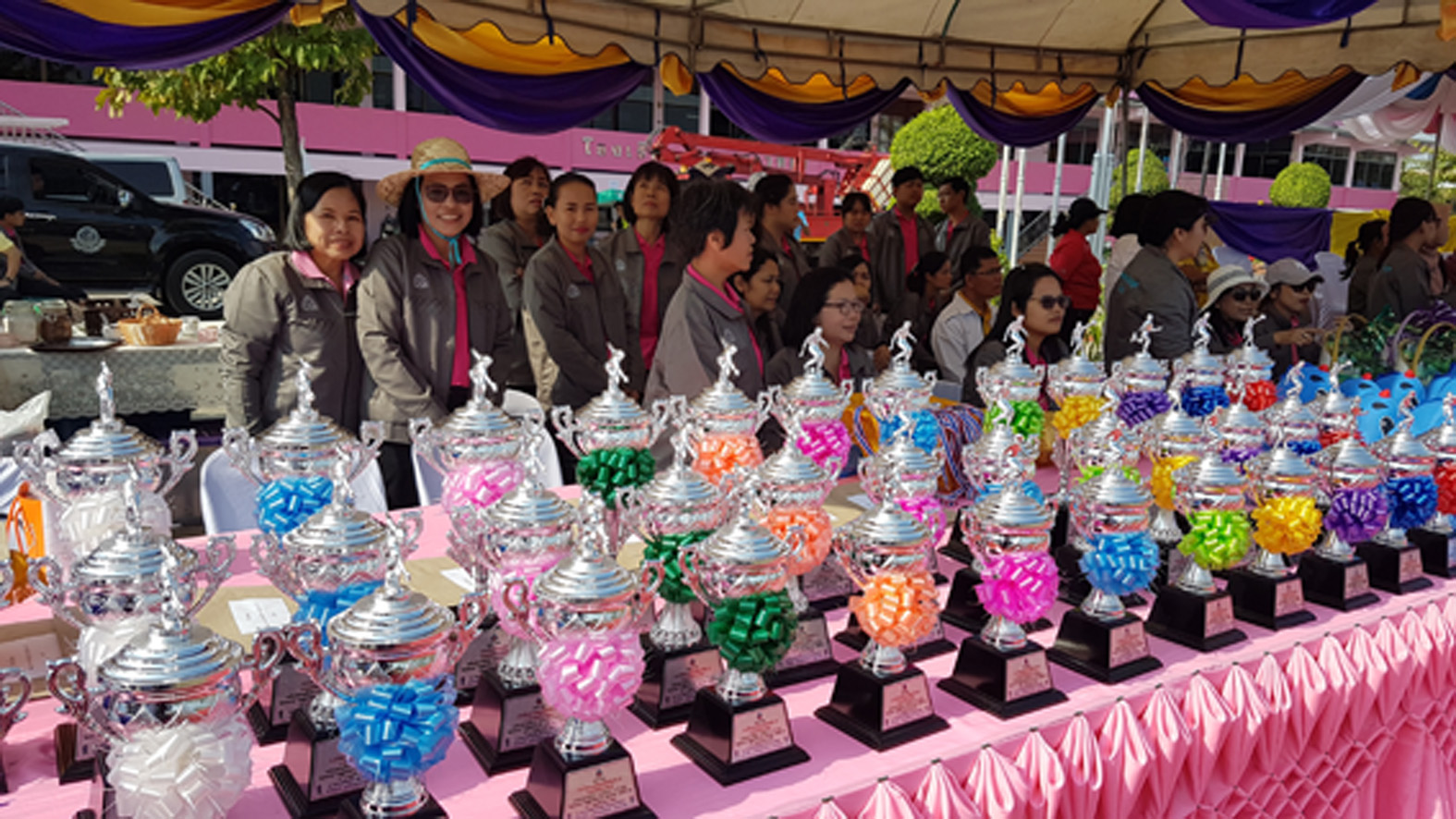 จากนั้นนายนพฤทธิ์ ศิริโกศล ปลัดจังหวัดสุพรรณบุรี ประธานในพิธีได้ขึ้นรถกระเช้า นำคูปองแลกรางวัลต่าง ๆ มีทั้งรางวัลทองคำ ลูกฟุตบอล และอุปกรณ์การเล่นกีฬาต่าง ๆ กว่า 600 ชิ้น มูลค่ารวมกว่า 1 แสนบาท ท่านปลัดจังหวัดสุพรรณบุรี ประธานพิธีนำขึ้นรถกระเช้าไปโปรยลงมาให้นักกีฬาและผู้ร่วมงานได้แย่งคูปองกันเพื่อลุ้นรับแจกของรางวัล แต่งานนี้ทางคณะผู้จัดงานบอกห้ามใช้ร่มออกมากางรับของรางวัลเหมือกับงานอื่น ๆ โดยให้ใช้มือเปล่า ๆ แย่งของรางวัลกันได้เท่านั้น เพื่อจะได้ไม่เป็นการเอาเปรียบกันกับคนที่ไม่มีร่ม หลังจากท่านประธานได้โปรยแจกคูปองของรางวัลจนหมดแล้ว ผลปรากฏว่าเด็กนักเรียนชาย 1 คน และนักเรียนหญิง 1 คน เป็นผู้โชคดีได้รับแจกรางวัลสร้อยข้อมือทองคำไปคนละ 1 เส้น ทางด้านปลัดจังหวัดประธานในพิธี หลังจากลงจากรถกระเช้าแล้วกล่าวว่าไม่เคยขึ้นที่สูงๆ รู้สึกหวาดเสียวๆๆๆ พร้อมกับเอ๋ยปากแซวทางคณะจัดงานว่าไม่บอกกันก่อนล่วงหน้าเลยนะ ว่าจะใช้วิธีนี้แจกของรางวัล เล่นมัดมือชกมุขนี้เลยต้องจัดให้เพื่อที่งานจะได้แจกคูปองให้กับเยาวชนและงานจะได้ออกมาอย่างสนุกสนานด้วย