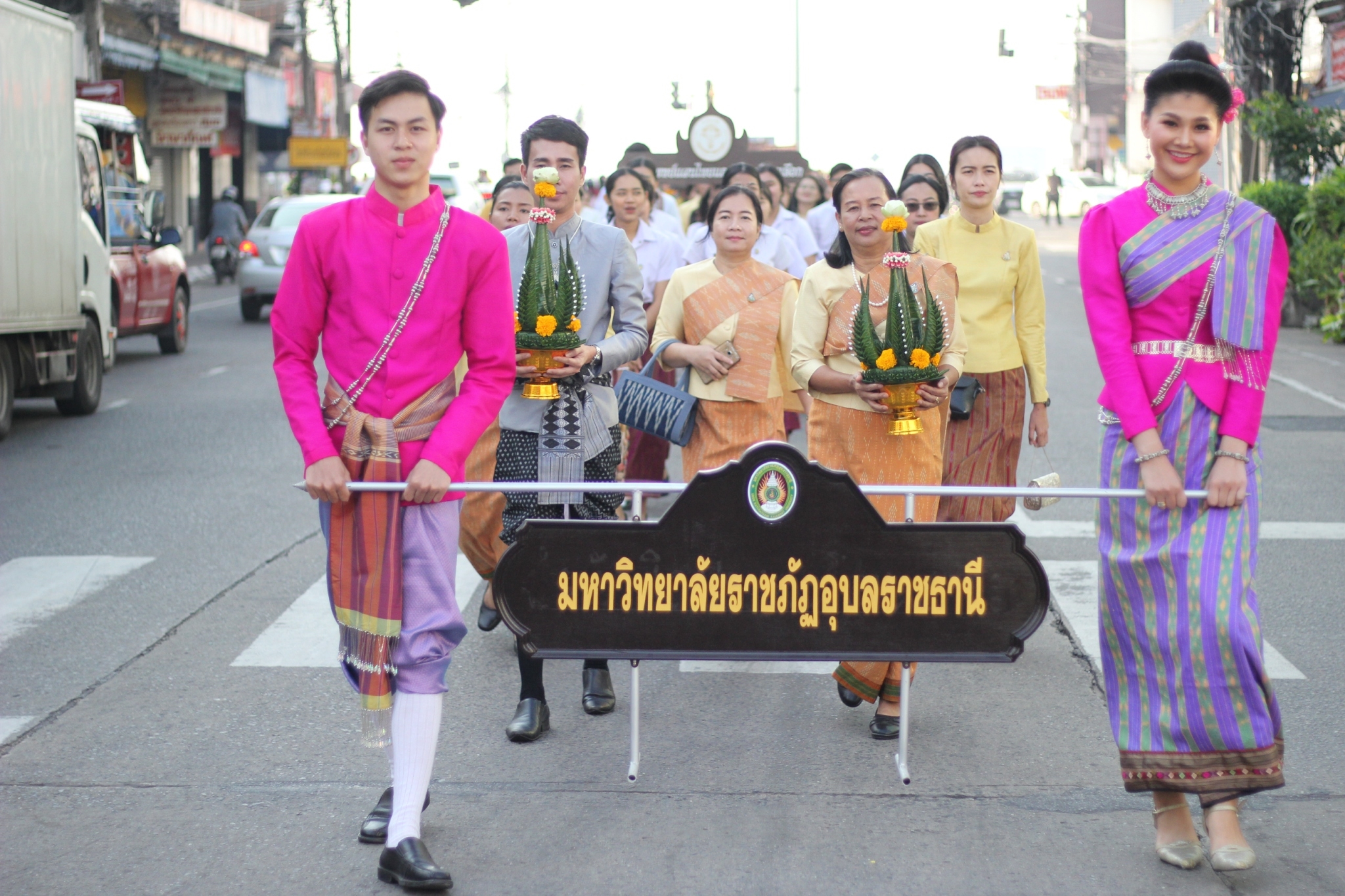 อัญเชิญรูปจำลององค์เล็กนำขบวนอัญเชิญเครื่องยศเจ้าเมืองตามแบบโบราณ จากวัดหลวงมาสู่บริเวณอนุสาวรีย์พระประทุมวรราช สุริยวงษ์ เจ้าคำผง ที่อนุสาวรีย์พระประทุมวรราชสุริยวงษ์ เจ้าคำผง เพื่อประกอบพิธีบวงสรวง สักการะ สดุดีวีรกรรมพระประทุมวรราชสุริยวงษ์ เจ้าคำผง พิธีวางขันหมากเบ็ง การแสดงรำถวายมือ จากนักเรียน นักศึก ประชาชนชาวจังหวัดอุบลราชธานี พระประทุมวราชสุริยวงศ์ เจ้าคำผง เป็นบุตรของพระเจ้าตาและ นางบุศดี เกิดเมื่อปี พ.ศ.2252 ที่นครเวียงจันทร์ เป็นหลานปูเจ้าปางคำ ราชวงศ์เชียงรุ้ง เจ้าปางคำได้อพยพมาสร้างเมืองหนองบัวลุ่มภู หนองบัวลำภู หรือ นครเขื่อนขันธ์กาบแก้วบัวบาน เจ้าคำผงได้เสกสมรสกับเจ้านางตุ่ย ธิดาอุปราช ธรรมเทโว อนุชาของพระเจ้าองค์หลวง ไชยกุมาร เจ้านครจำปาศักดิ์ และได้รับแต่งตั้งเป็นพระประทุมสุรราช เมื่อปี พ.ศ. 2323 อันเป็นตำแหน่งนายกองใหญ่คุมเล็ก ไพร่ อยู่ที่บ้านดู่ บ้านแก ขึ้นกับนครจำปาศักดิ์ ต่อมาในปี พ.ศ.2329 ได้ย้ายครอบครัวและไพร่พลจากบ้านดู่ บ้านแก มาตั้งบ้านเมืองใหม่ที่ตำบลห้วยแจระแม โดยพระบรมราชานุญาตในพระบาทสมเด็จพระพุทธยอดฟ้าจุฬาโลก และตั้งชื่อเมืองนี้ว่า เมืองอุบล จากการร่วมปราบกบฏอ้ายเซียงแก้ว ในปี พ.ศ.2335 พระบาทสมเด็จพระพุทธยอดฟ้าจุฬาโลก จึงโปรดเกล้าฯ แต่งตั้งพระประทุมสุรราช เจ้าคำผง เป็นพระประทุมวรราชสุริยวงษ์ และยกฐานะเมืองอุบล เป็น “เมืองอุบลราชธานี ศรีวนาลัย ประเทศราช ด้านการสงคราม เป็นทหารเอกในพระบาทสมเด็จพระพุทธยอดฟ้าจุฬาโลก ช่วยเหลือการสงครามระหว่างไทยกับหัวเมืองประเทศราชปราบปรามความไม่สงบทที่เกิดขึ้นในหัวเมืองต่างๆ หลายครั้ง พระประทุมวรราชสุริยวงษ์ ครองเมืองอุบลาชธานี ตั้งแต่ปี พ.ศ.2321 จนถึงปี พ.ศ.2338 รวม 17 ปี ถึงแก่พิราลัย เมื่อวันที่ 10 พฤศจิกายน พ.ศ. 2338 สิริอายุได้ 85 ปี ทำศพเมรุนกหัสดีลิงค์