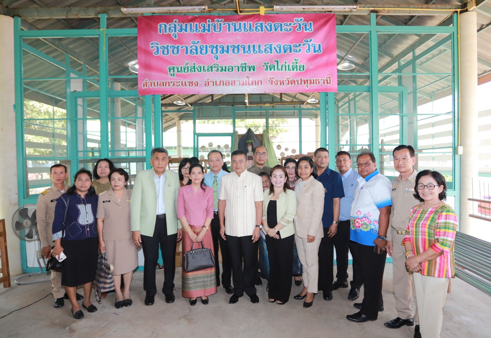 ให้การต้อนรับที่อาคารศูนย์ส่งเสริมอาชีพ วัดไก่เตี้ย ตำบลกระแชง อำเภอสามโคก จังหวัดปทุมธานี