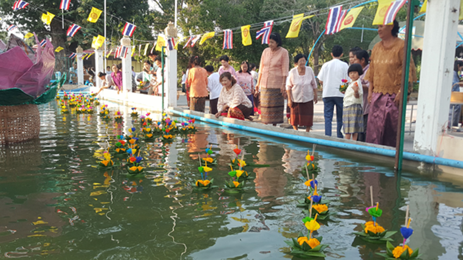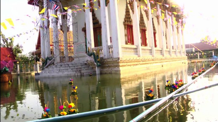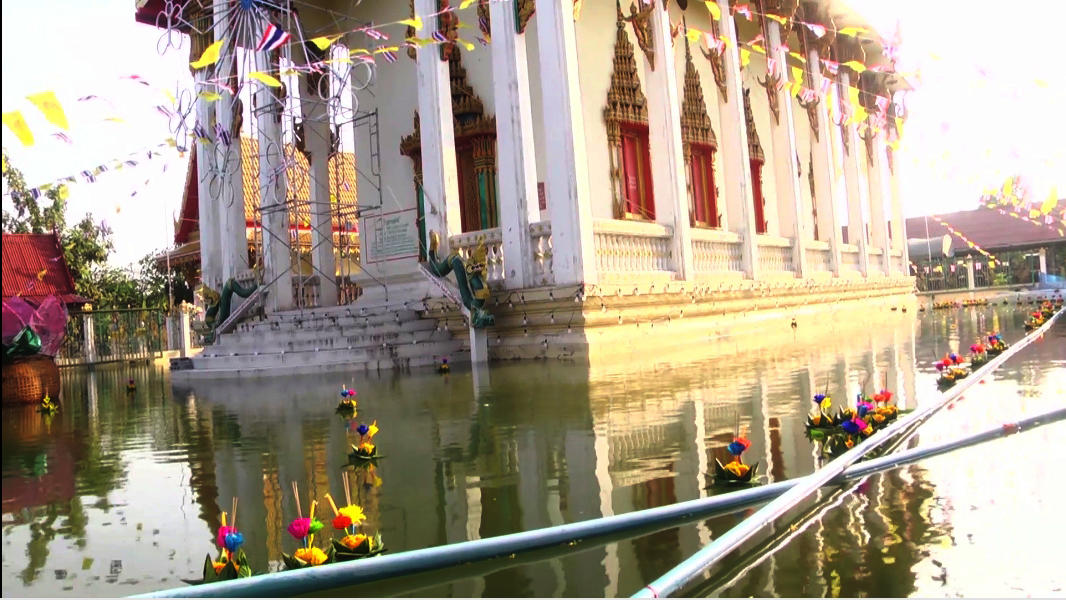 สุพรรณบุรี วัดโภคารามทำบุญลอยกระทงรอบโบสถ์แห่งแรกของภาคกลาง