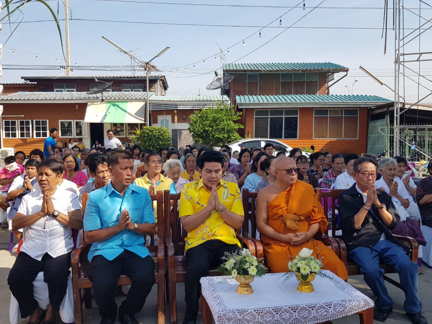 ที่วัดบ้านสร้าง ต.บ้านสร้าง อ.บางปะอิน.จ.พระนครศรีอยุธยา พระอธิการ ถวัลย์ อินทปัญโณเจ้าอาวาสวัดบ้านสร้าง ประธานฝ่ายสงค์ นายสุรศักดิ์ พันธฺเจริญวรกุล.สส.จังหวัดพระนครศรีอยุธยา นายจักกฤษ จันตน กำนันตำบลบ้านสร้าง ประธานทฝ่ายฆรวาสและประชาชน รวมกันทำพิธีบวงสรวง บวงสรวงท้าวเวรสุวรรณ์ ทั่ง2องค์ ที่ตั่งอยู่ประตูทางเข้าประตูหน้า โบสถเพื่อเป็นสิริมงคล กราบไหว้เป็นที่ยึดเหนี่ยวจิตใจ ของประชาชนได้มีประชาชนจำนวนมากเข้ารวมพิธือันดีงาม และ ยังฉลองพระปรางอายุกว่า100ปี ที่ยังสวยงามเป็นสัญญาของวัดบ้านสร้างอีกด้วย.