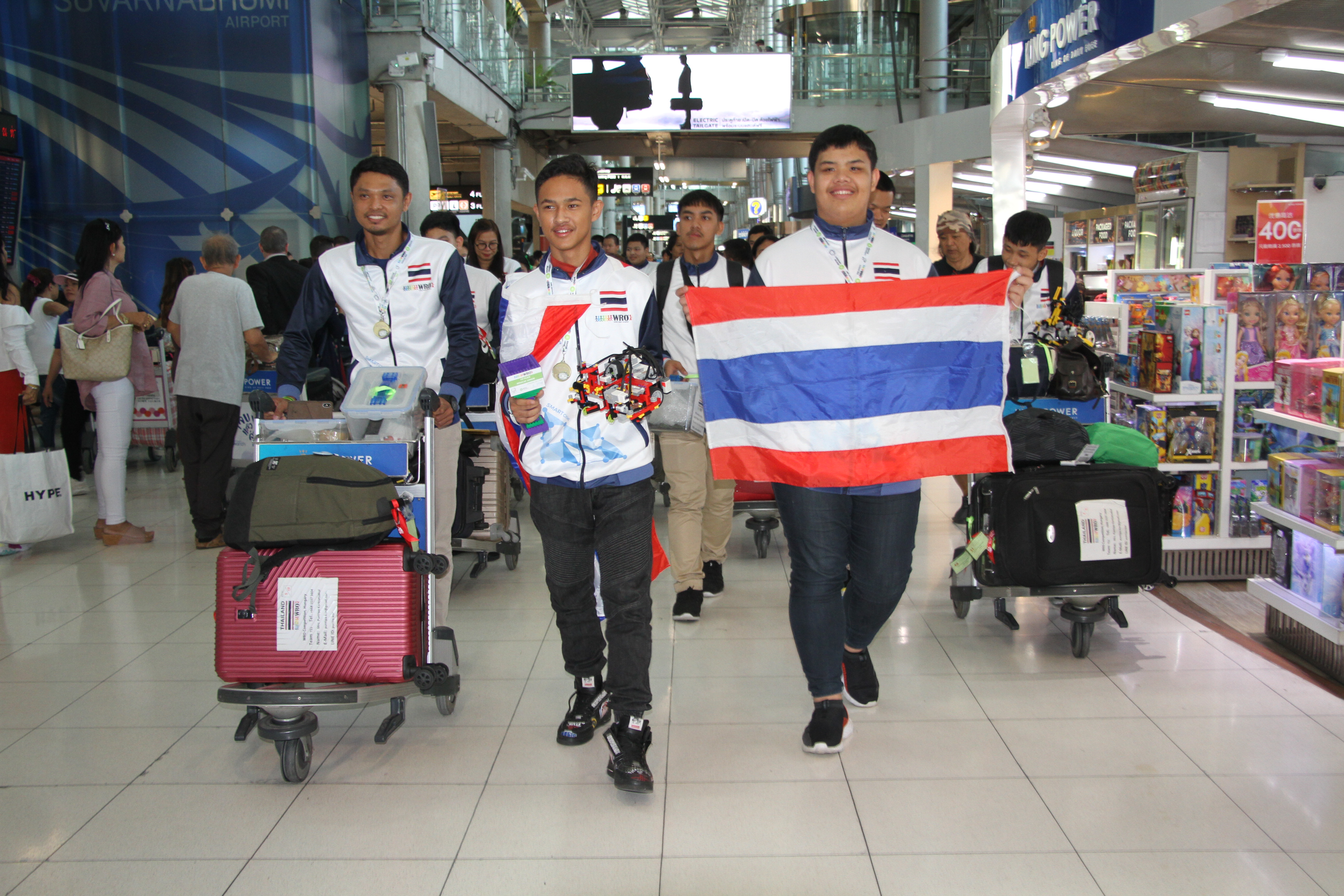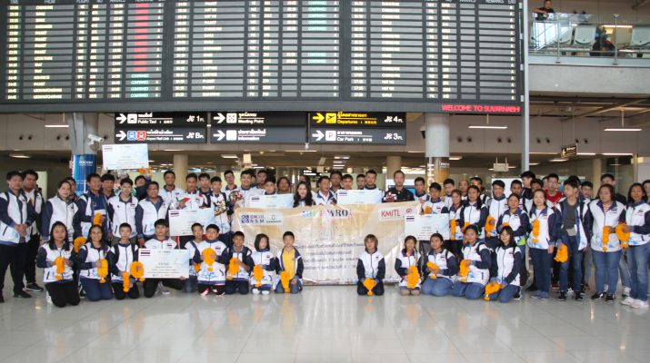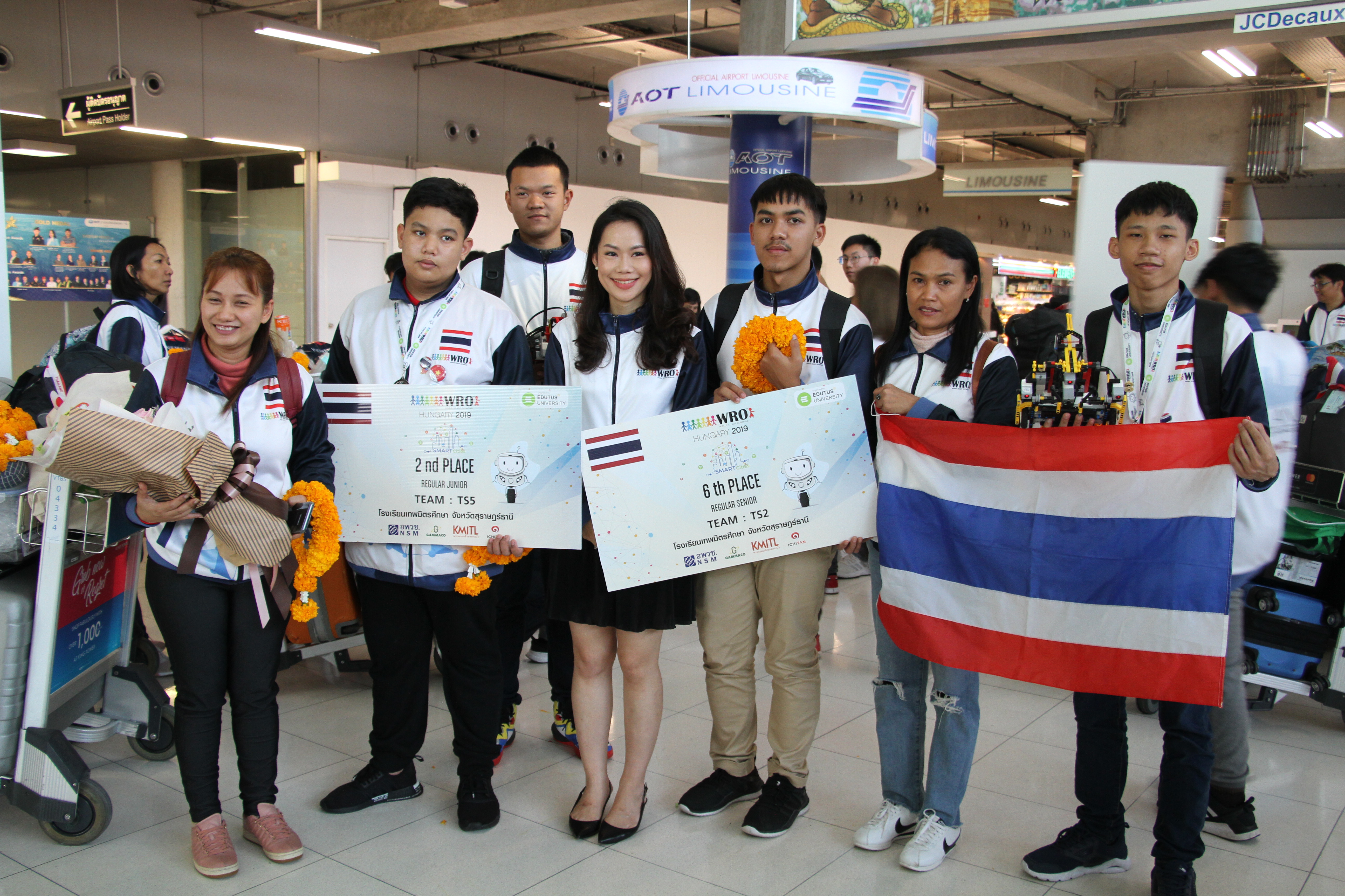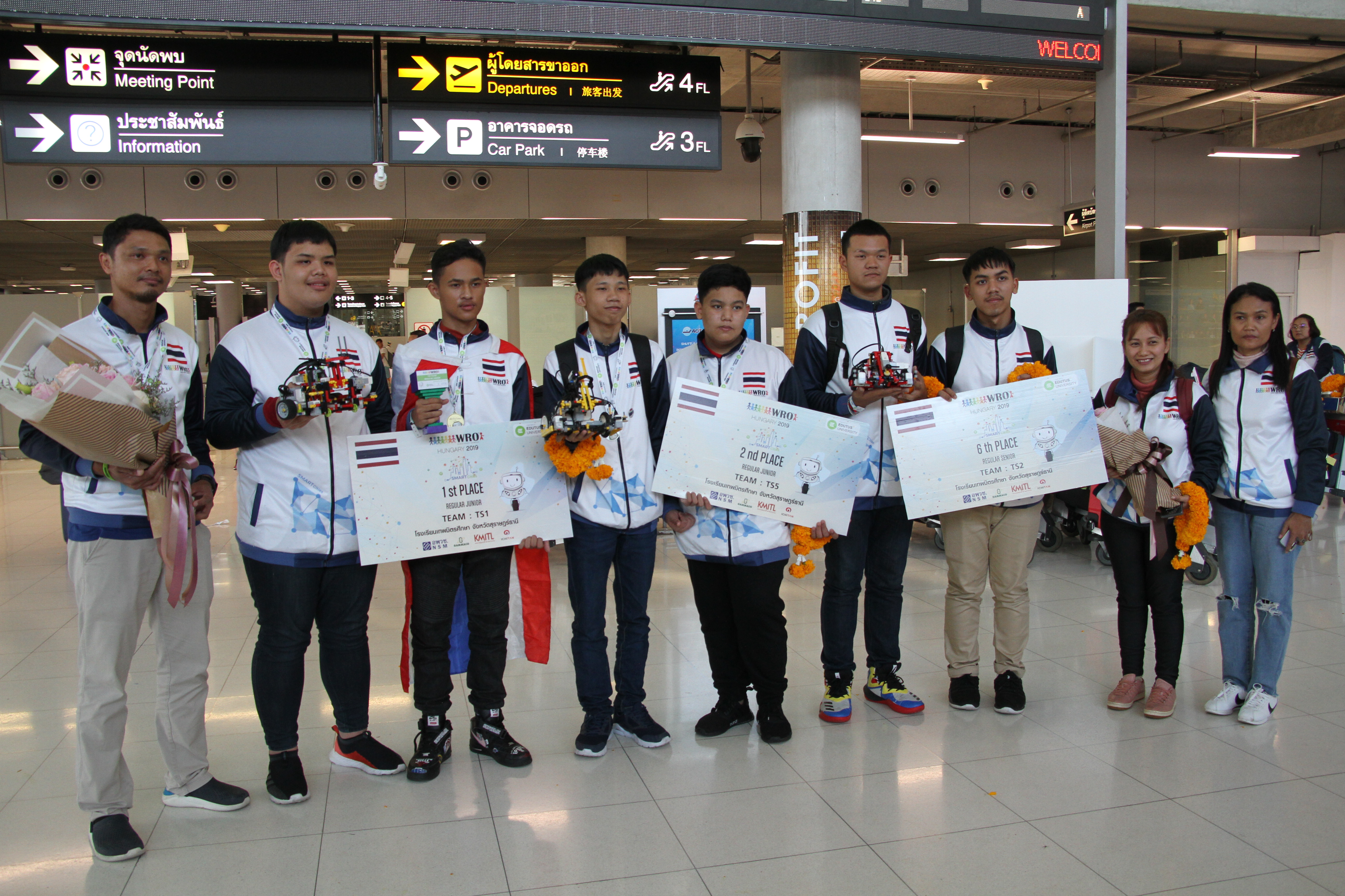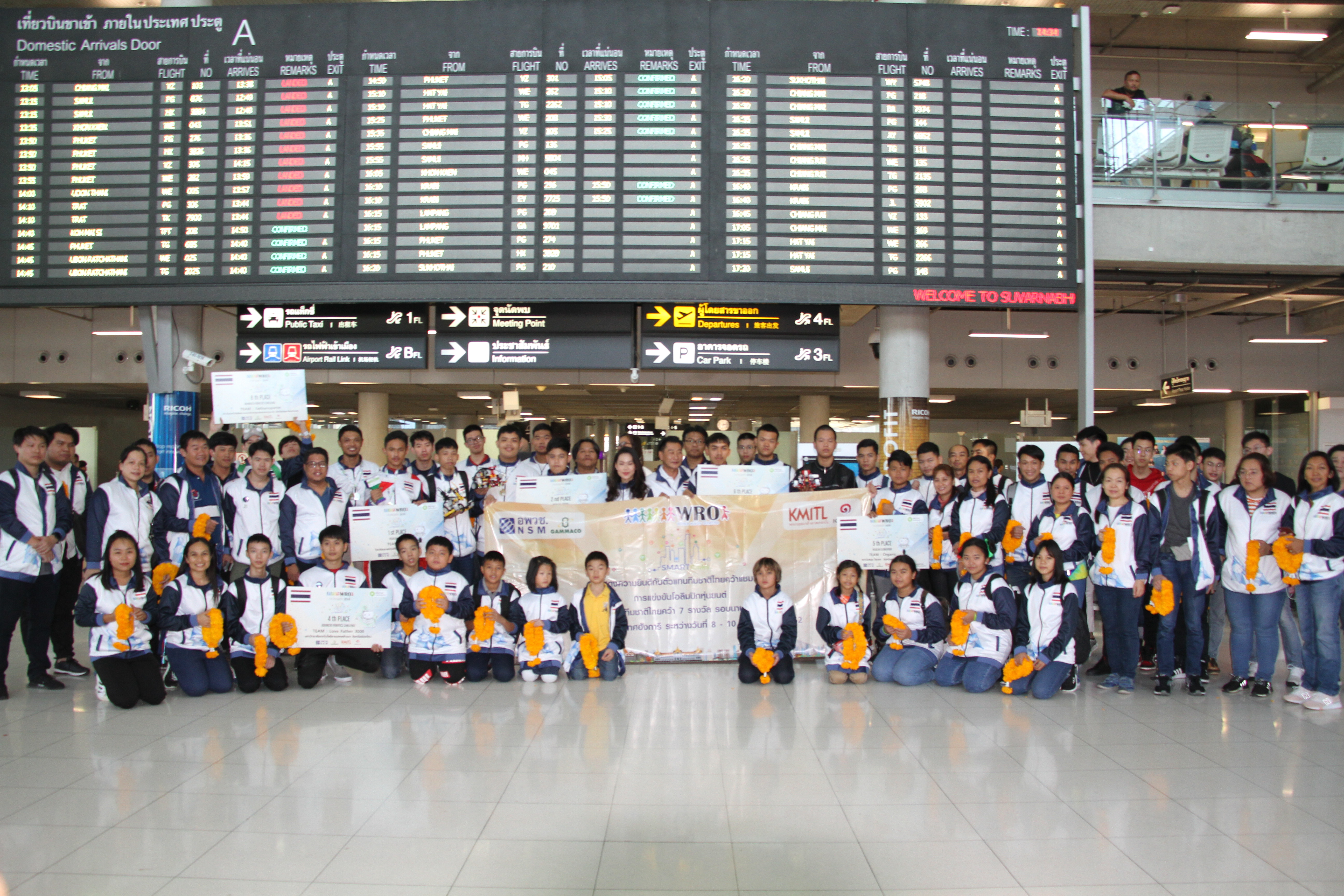 *****เมื่อเวลา 15.00 น.วันที่ 12 พ.ย.2562 ดร. นวลวรรณ ชะอุ่ม ประธานโครงการจัดการแข่งขันโอลิมปิกหุ่นยนต์ ประเทศ ไทย ตัวแทนบริษัท แกมมาโก้ (ประเทศไทย) จำกัด เป็นผู้จัดการแข่งขันโอลิมปิกหุ่นยนต์ ในประเทศไทย และคณะ นักเรียนนักศึกษาตัวแทนทีมชาติไทยที่เดินทางไปแข่งขันโอลิมปิกหุ่นยนต์ รอบนานาชาติ ณ เมืองเยอร์ ประเทศฮังการี ระหว่างวันที่ 8-10 พฤศจิกายน 2562 สามารถคว้าแชมป์หุ่นยนต์มาได้ 1 เหรียญทอง 1 เหรียญเงิน และรางวัลต่าง ๆ รวมทั้งหมด 7 รางวัล เดินทางจาก เมืองโดฮา ประเทศกาต้าร์ กลับถึง สนามบินสุวรรณภูมิ อ.บางพลี จ.สมุทรปราการ เที่ยวบิน QR 836 เครื่องลงเวลา 13.15 น.โดยมี คณะครูและญาติเพื่อนๆ ให้การต้อนรับและร่วมแดงความยินดี