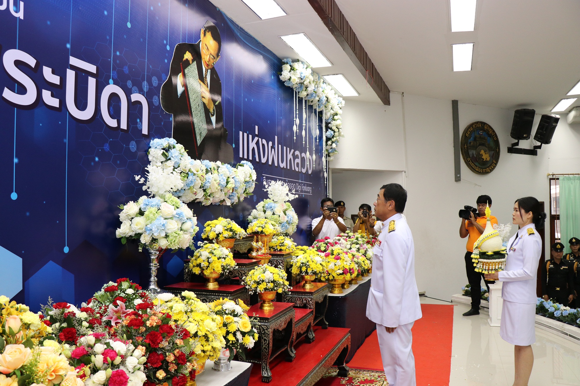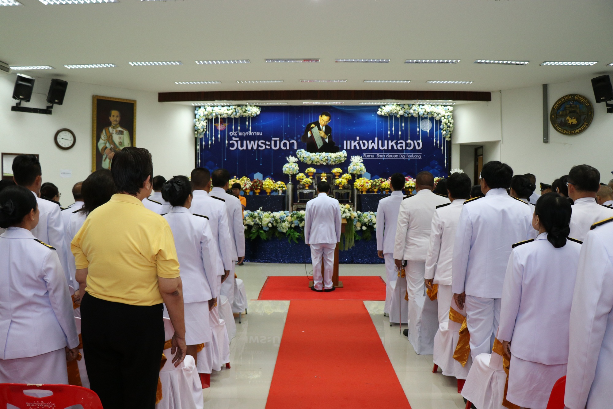 กาญจนบุรี ผู้ว่าฯนำทุกภาคส่วนวางพานพุ่มดอกไม้สดถวายราชสักการะพระบาทสมเด็จพระบรมชนกาธิเบศร มหาภูมิพลอดุลยเดชมหาราช บรมนาถบพิตร เนื่องใน “วันพระบิดาแห่งฝนหลวง”