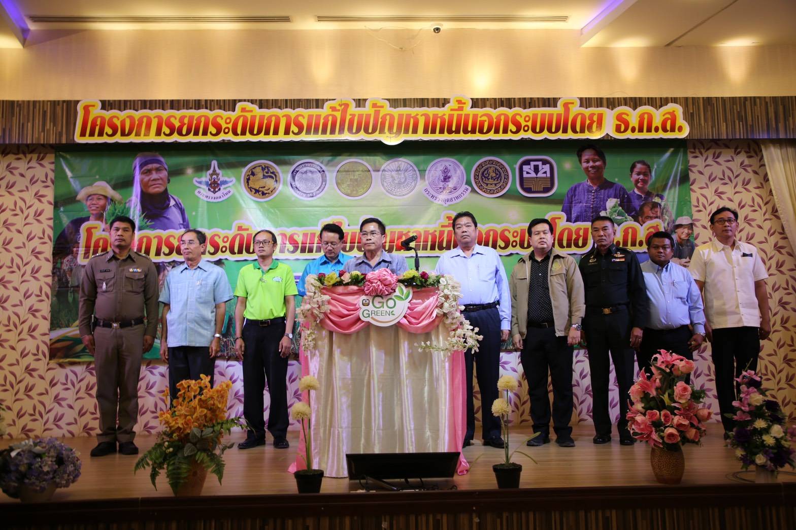 นายศิริชัย ศรีเหนียง รองผู้ว่าราชการจังหวัดสิงห์บุรี นายมงคล ผดุงไทย ผู้อำนวยการสำนักงาน ธ.ก.ส.จังหวัดสิงห์บุรี ร่วมกับคณะอนุกรรมการไกล่เกลี่ยประนอมหนีนอกระบบประจำจังหวัด,ผู้แทนองค์กรการเงินชุมชน, เกษตรกรลูกค้าที่เข้าร่วมโครงการแก้ไขปัญหาหนี้นอกระบบ และเกษตรกรทั่วไปร่วม ประชาสัมพันธ์ชี้แจง “โครงการยกระดับการแก้ไขปัญหาหนี้นอกระบบโดย ธ.ก.ส. พร้อมมอบโฉนดที่ดินคืนให้กับเกษตรกร ณ ห้องประชุมเกษรา ร้านอาหารเกษรา เรสท์ แอเรีย นายศิริชัย ศรีเหนี่ยง รองผู้ว่าราชการจังหวัดสิงห์บุรี กล่าวว่า รัฐบาลได้ดำเนินการเดินหน้าแก้ไขปัญหาหนี้นอกระบบให้กับประชาชนอย่างจริงจัง โดยมอบให้กระทรวงการคลังดำเนินการร่วมกับหน่วยงานที่เกี่ยวข้อง เพื่อบริหารทั้งด้านลูกหนี้และด้านเจ้าหนี้ ควบคู่กันไปอย่างเป็นระบบ ครบวงจร และมีความต่อเนื่อง ปัญหาหนี้นอกระบบที่ธ.ก.ส.ทุกสาขา สนับสนุนสินเชื่อเพื่อแก้ไขปัญหาหนี้นอกระบบให้กับเกษตรกรและบุคคลในครัวเรือนของเกษตรกร