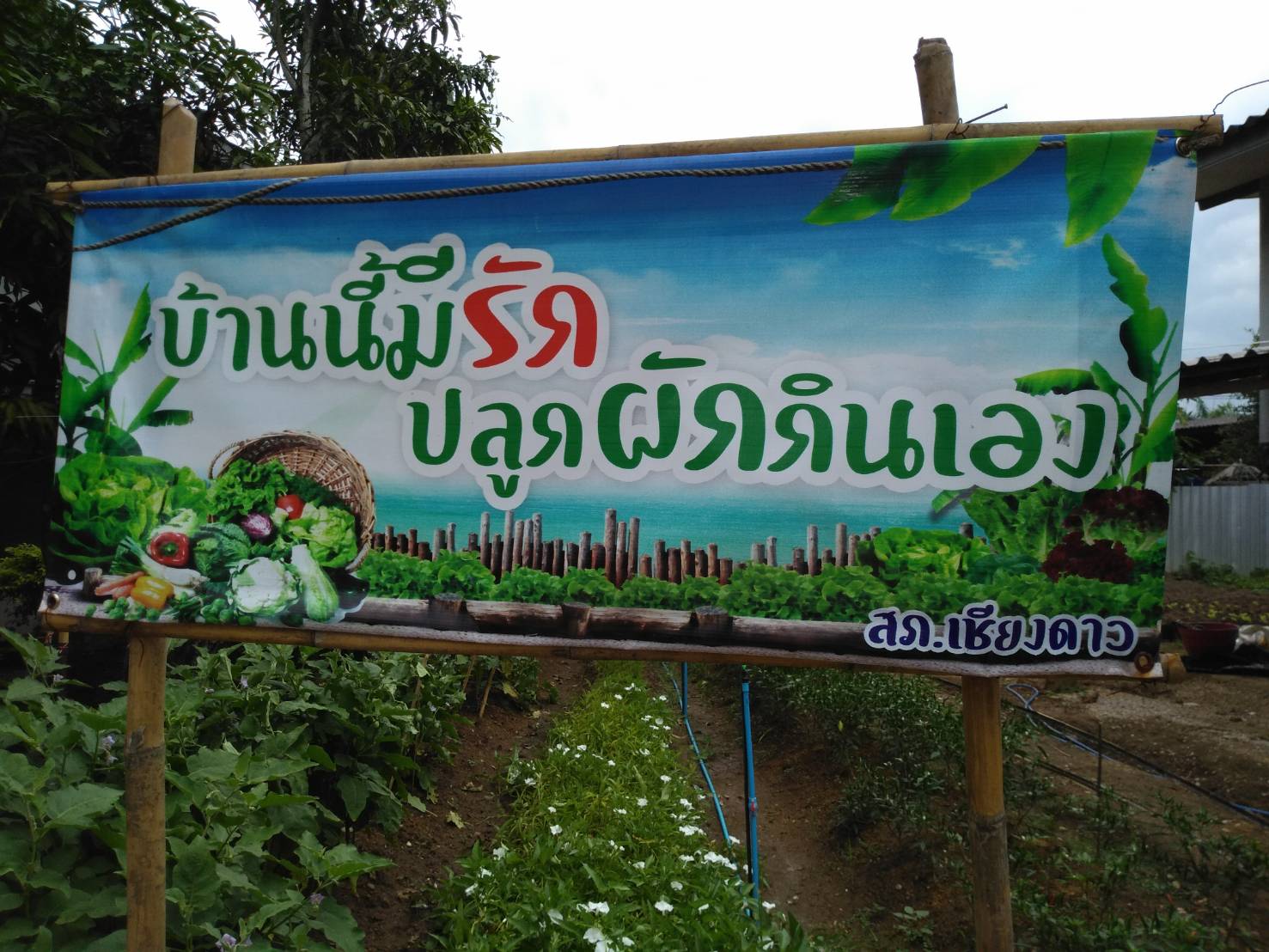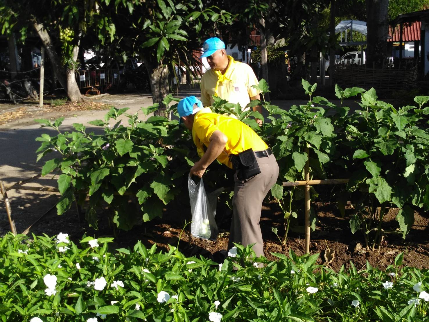ในวันนี้ได้มีการลงแปลงเก็บผักสวนครัวที่มีทั้งพริก มะเขือ ผักบุ้ง ผักกาด ที่ทำการปลูกไว้แบบอินทรีย์ปลอสารพิษ มาทำอาหารเลี้ยงกัน ซึ่งก็น่าประทับใจที่พืชผักสวนครัวนั้นออกมางดงามและเต็มสวน ใครไปมาสามารถเก็บกินได้ ช่วยลดค่าครองชีพได้อีกด้วย