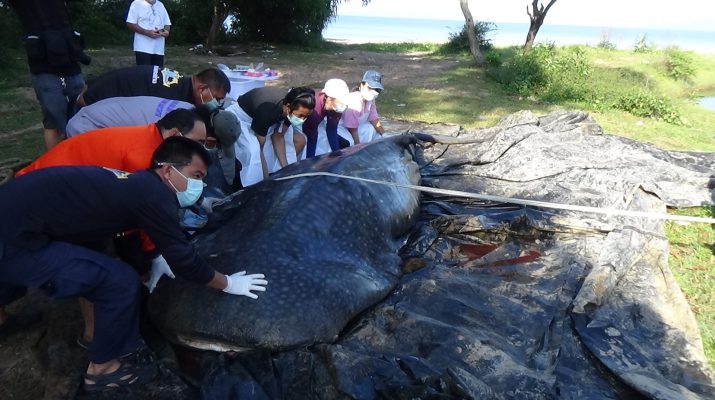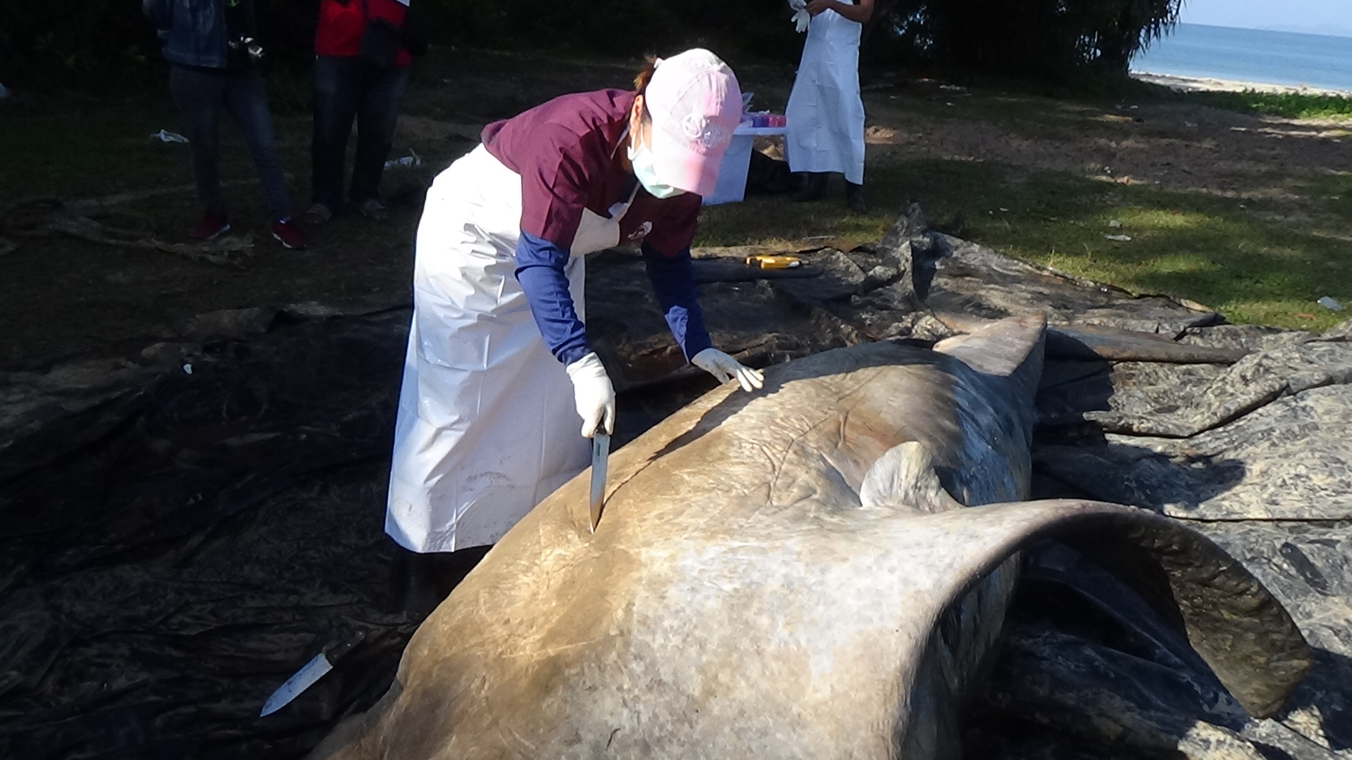 ทีมสัตวแพทย์จากศูนย์วิจัยทรัพยากรทางทะเลและชายฝั่งทะเลอันดามันตอนล่าง ผ่าพิสูจน์การตายของฉลามวาฬ เบื้องต้นสาเหตุการตายน่าจะมาจากลามวาฬมีอาการป่วย เนื่องจากในกระเพาะอาหารไม่พบสิ่งผิดปกติจำพวกขยะทะเล