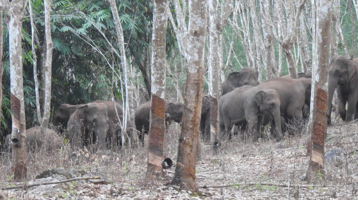 นายเจริญ ใจชนหัวหน้าอุทยานแห่งชาติทองผาภูมิ เปิดเผยว่า คณะเจ้าหน้าที่ได้ติดตามสังเกตการณ์เฝ้าระวังช้างป่าที่บริเวณป่าบ้านพุรางหมู หมู่ที่ 3 ตำบลพุล่อ ตรวจพบโขลงช้างป่า จำนวนประมาณ 30 ตัว บริเวณพิกัดที่ 47P 0468563E 1608690N กำลังออกจากป่ามุ่งหน้าเข้าหากินบริเวณป่าผาผึ้ง คณะเจ้าหน้าที่จึงสังเกตการณ์เตรียมผลักดัน แต่ปรากฏว่าช้างป่าเริ่มแยกกระจายแบ่งเป็นกลุ่มละ 5-10 ตัว ในหลายช่องทางจึงยังไม่สามารถทำการผลักดันได้-เวลา 18.30 น. คณะเจ้าหน้าที่และชุดเฝ้าระวังช้างป่า ได้เฝ้าระวังสังเกตการณ์ช้างป่า บริเวณบ้านวังหิน(ป่าผาผึ้ง) หมู่ที่ 1 ตำบลหินดาด บริเวณพิกัดที่ 47P 0468031 E 1610123 N ไม่พบช้างป่าออกหากินในบริเวณดังกล่าว-เวลาประมาณ 21.00 น. ได้รับการแจ้งประสานว่ามีช้างป่าเข้าหากินในบริเวณบ้านหม่องกะลา (หลังวัดเขาแทงหมู) หมู่ที่ 2 ตำบลหินดาด คณะเจ้าหน้าที่และชุดจิตอาสาเฝ้าระวังจึงเข้าตรวจสอบ สังเกตการณ์บริเวณพิกัดที่ 47P 0467005E 1611845N ตรวจพบโขลงช้างป่า จำนวนประมาณ 20 ตัว กำลังหากินมุ่งหน้าไปทางวัดถ้ำหม่องกะลาจึงทำการผลักดันออกจากบริเวณดังกล่าวถึงบริเวณป่าหลังโบสถ์คริสเตียน บ้านวังหิน หมู่ที่ 1 ตำบลหินดาด บริเวณพิกัดที่ 47P 0469328E 1610312N โขลงช้างป่าได้แยกกระจาย หลายจุดและบางพื้นที่มีสภาพป่ารกทึบจึงไม่สามารถติดตามผลักดันต่อไปได้ จึงเฝ้าระวังสังเกตการณ์เตรียมผลักดันในบริเวณดังกล่าว