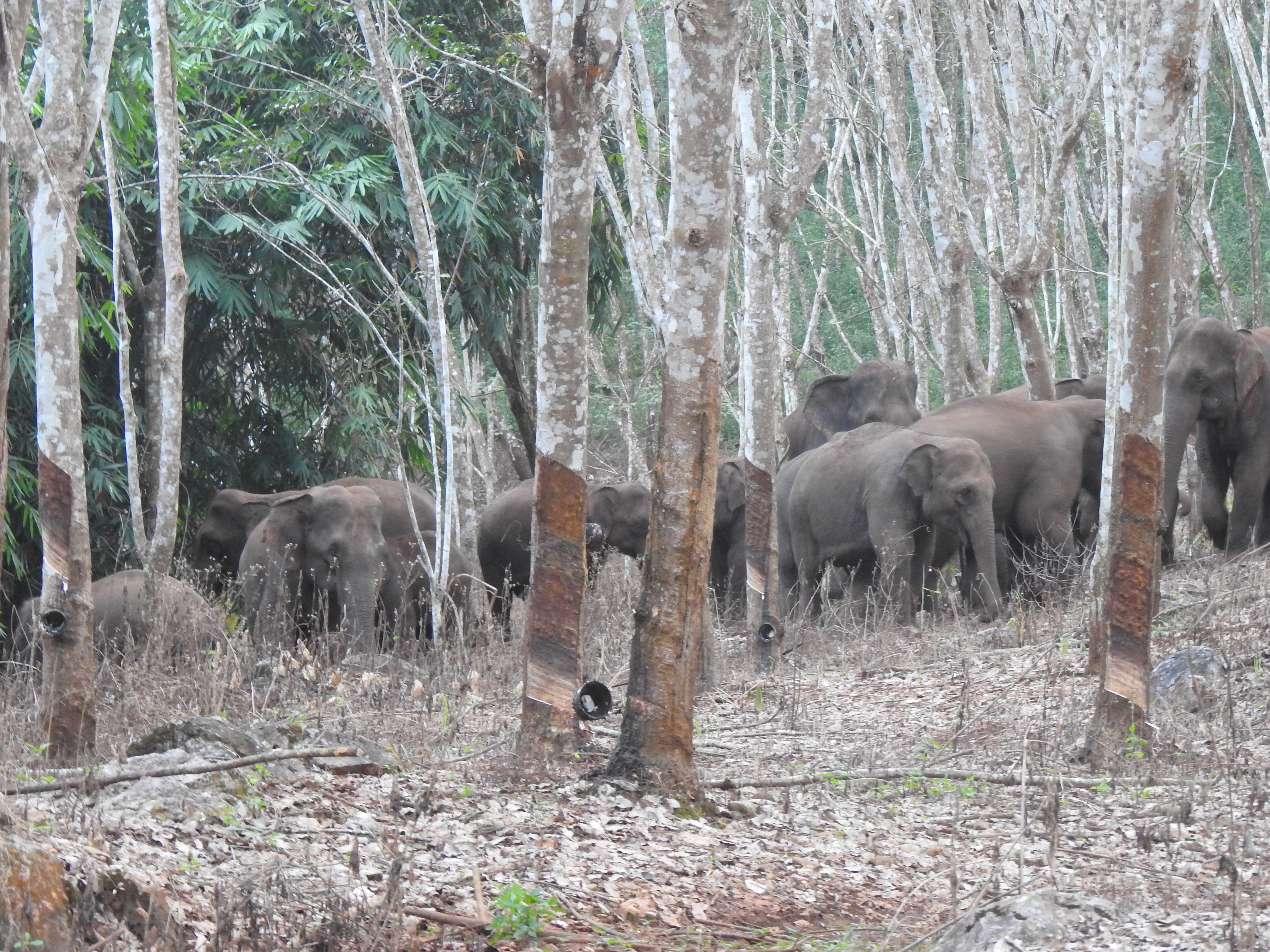 2. วันที่ 16 พฤศจิกายน 2562-เวลา 08.30 น. คณะเจ้าหน้าที่ติดตาม ตรวจสอบร่องรอยช้างป่า และโดยการแจ้งประสานทางโทรศัพท์ทราบว่าช้างป่าหากินหลบพักอาศัย บริเวณป่าบ้านพุรางหมู 3 ต.พุล่อ อ.ทองผาภูมิ บริเวณพิกัดที่ 47P 0468702E 1608411N จำนวนประมาณ 30 ตัว