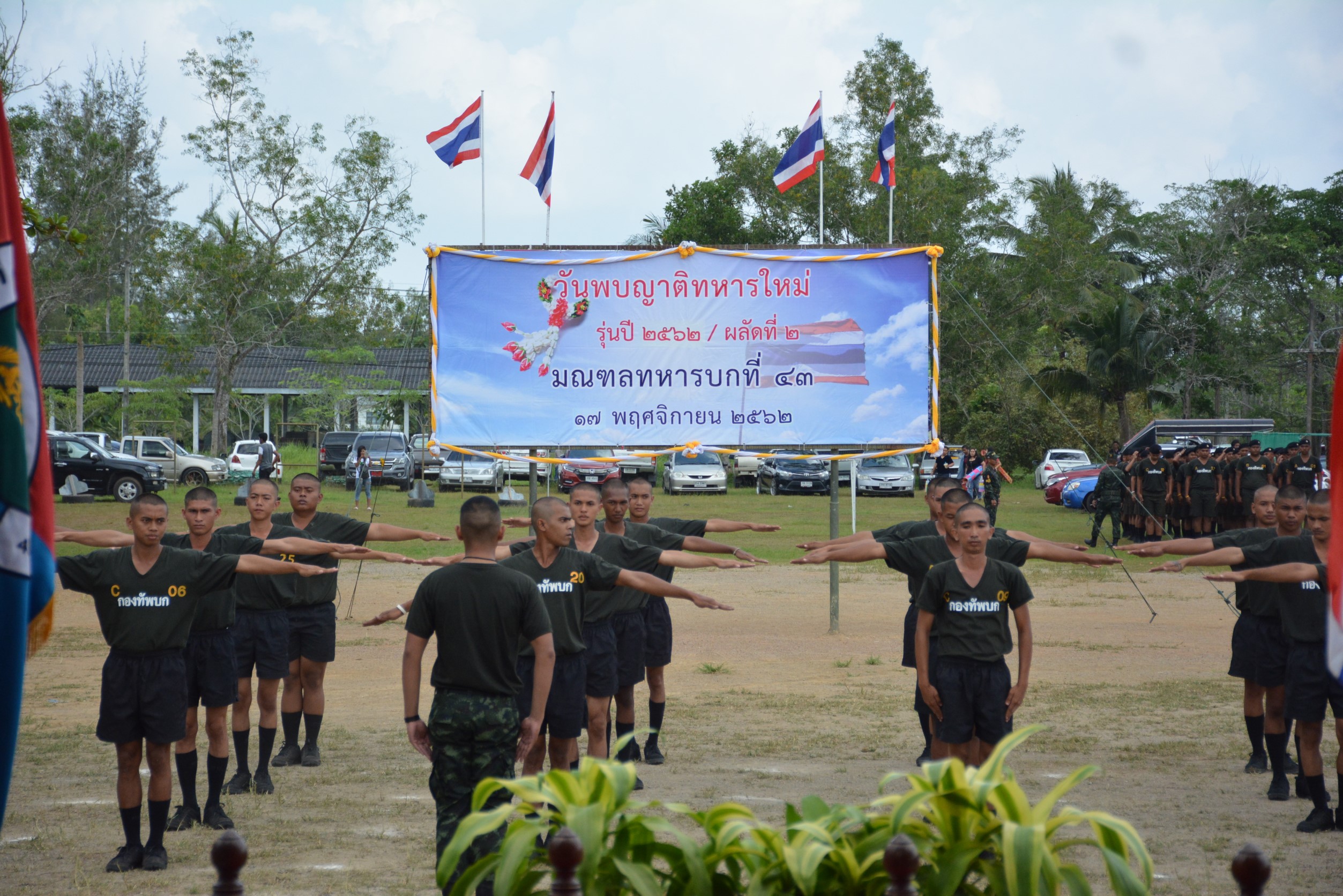 วันนี้ (17 พ.ย. 62) ณ สนามฝึกหน่วยฝึกทหารใหม่ มณฑลทหารบกที่ 43 อำเภอทุ่งสง จังหวัดนครศรีธรรมราช จัดกิจกรรมวันพบญาติทหารใหม่ รุ่นปี 2562 ผลัดที่ 2 โดยมีพันเอก ขจรศักดิ์ อินทร์ทอง เสนาธิการ มณฑลทหารบกที่ 43 เป็นประธานให้การต้อนรับ พบปะครอบครัวและญาติทหารใหม่ ณ หน่วยฝึกทหารใหม่ มณฑลทหารบกที่ 43 ซึ่งมีกิจกรรมการแสดงของทหารใหม่ซึ่งผ่านการฝึกมาแล้ว เป็นเวลา 3 สัปดาห์ รวมถึงการปฏิญาณเป็นคนดีและไม่ยุ่งเกี่ยวกับยาเสพติด พร้อมการแสดงความกตัญญูกตเวทีต่อบุพการีและผู้มีพระคุณ โดยมีครอบครัว ญาติพี่น้องทหารใหม่ ร่วมในพิธี ซึ่งครั้งนี้ถือเป็นวันแรกของการเปิดเข้าเยี่ยมหารใหม่ รุ่นปี 2562 ผลัดที่ 2