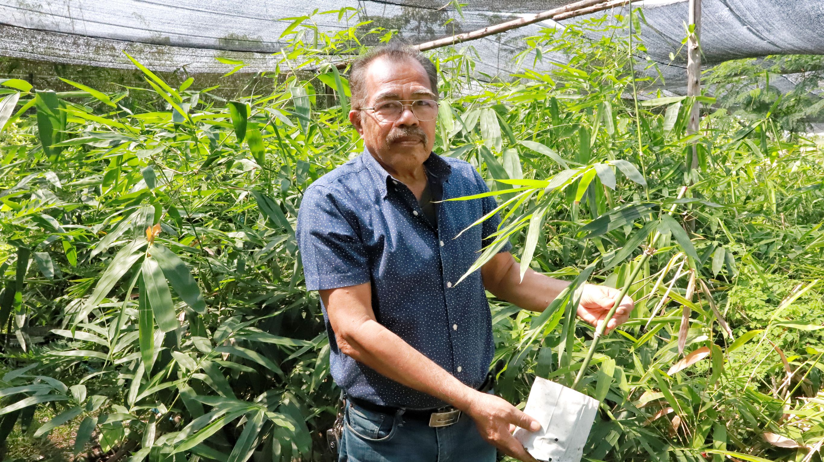 เทียนชัย ศิริเสน ชายวัย 68 ปี เล่าที่มาที่ไปของการปลูกไผ่ตง สายพันธุ์อินโดฯ ว่า ก่อนหน้านี้ได้เริ่มศึกษาหาพืชที่เหมาะกับสภาพอากาศ และสภาพดิน เนื่องจากผลผลิตการปลูกข้าวในปัจจุบัน ราคามันตกต่ำ แถม ปุ๋ยยาก็มีราคาสูงขึ้น ตนเองเลยพลิกผืนนาที่มีอยู่ 15 ไร่หันมาปลูกไผ่ 2,500 ต้นเป็นไผ่ตงสายพันธุ์อินโดฯ เป็นพืชชนิดเดียวที่ตอบโจทย์ได้ดีที่สุด เนื่องจากปลูกได้ในทุกสภาพดินฟ้าอากาศ อีกทั้งทนแล้งได้ดี น้ำท่วมไม่ตาย ไฟไหม้ก็ไม่ตาย วิธีการปลูกก็ง่าย ดูแลง่าย โตไว และสามารถจำหน่ายและแปรรูปได้ทั้งหน่อ ลำ และกิ่งพันธุ์ ที่สำคัญไม่ต้องสิ้นเปลืองเรื่องปุ๋ยเคมีหรือสารเคมีอื่นๆ เพราะไผ่ไม่มีโรคและแมลงรบกวน สามารถปลูกและดูแลแบบออร์แกนิกได้เลย ใช้เวลาปลูก 7-8 เดือน ก็เก็บผลผลิตได้ และอายุในการเก็บผลผลิตยาวนาน ถือเป็นการลงทุนครั้งเดียว แต่สามารถเก็บเกี่ยวได้ตลอดปีและต่อเนื่องอีกหลายสิบปี