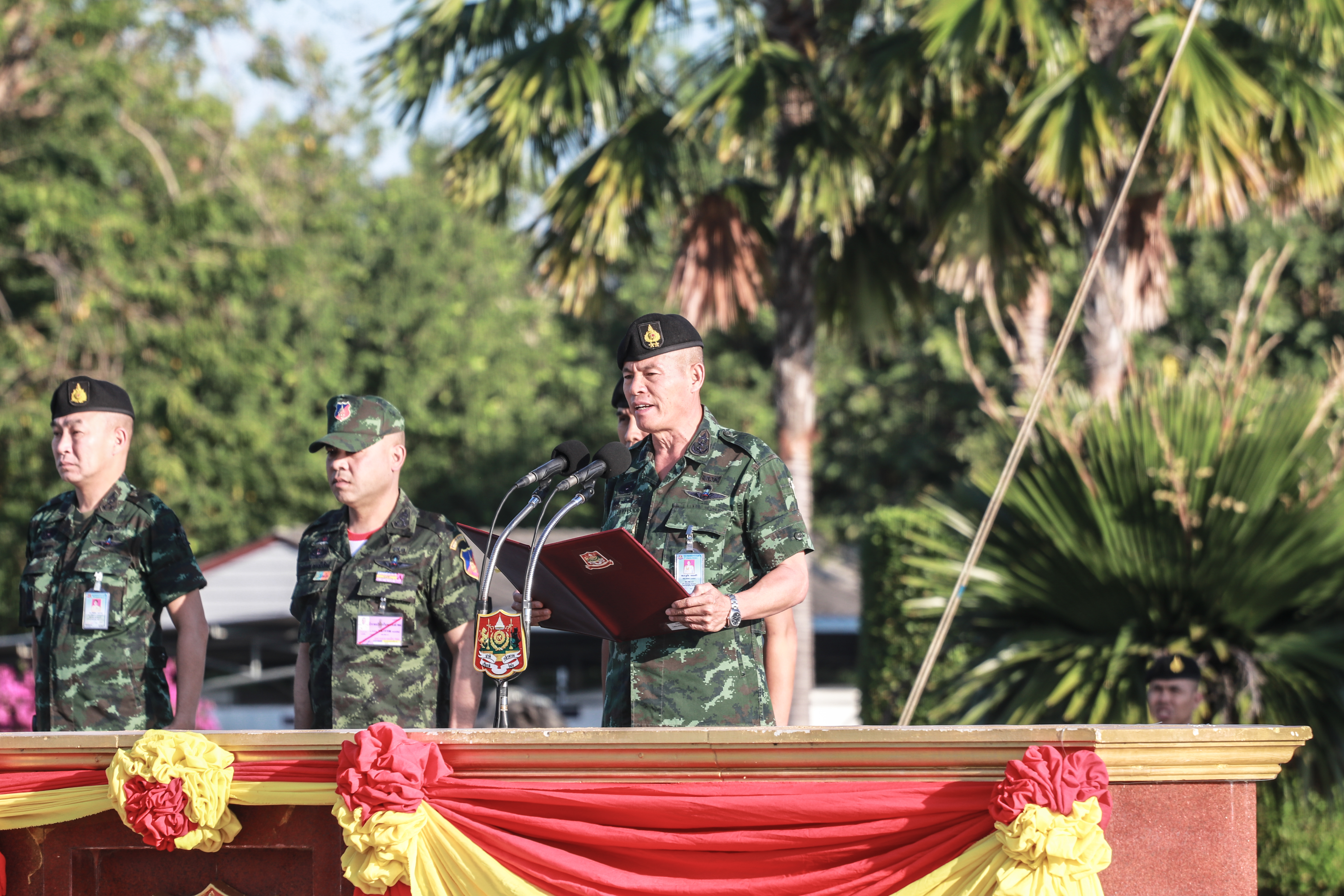 พล.ต.ฐกัด หลอดศิริ ผู้บัญชาการกองพลทหารราบที่ 9 กล่าวว่า การเข้ามาเป็นทหารนั้นต้องมีการฝึก เพื่อเตรียมความพร้อมให้ทหารใหม่ทั้งความรู้ ร่างกาย และจิตใจ ให้มีความพร้อมก่อนออกไปปฏิบัติงานตามที่ผู้บังคับบัญชามอบหมาย ได้อย่างเต็มขีดความสามารถ ในการเข้ามาเป็นทหารถือว่าเป็นความภาคภูมิใจที่จะได้รับใช้ชาติ และประชาชน อีกทั้งยังเป็นโอกาสที่จะได้เพิ่มพูนประสบการณ์และการศึกษา ทั้งนี้ทหารใหม่ทุกนายต้องตระหนักถึงภาระหน้าที่ของการเป็นทหาร ในการปกป้องอธิปไตยของชาติและสถาบันพระมหากษัตริย์อันเป็นที่รักยิ่งของปวงชนชาวไทยทุกคน พร้อมทั้งได้เน้นย้ำกำชับผู้บังคับหน่วยดูแลเอาใจใส่น้องทหารใหม่อย่างใกล้ชิดให้ผ่านการฝึกไปได้ด้วยความราบรื่นเรียบร้อย