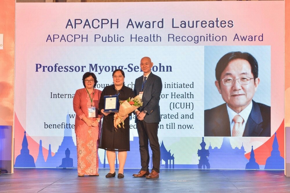 1)The APACPH Public Health Recognition Award โดยผู้ที่ได้รับรางวัลนี้ ได้แก่ Professor Myong-Sei Sohn, APACPH President Emeritus