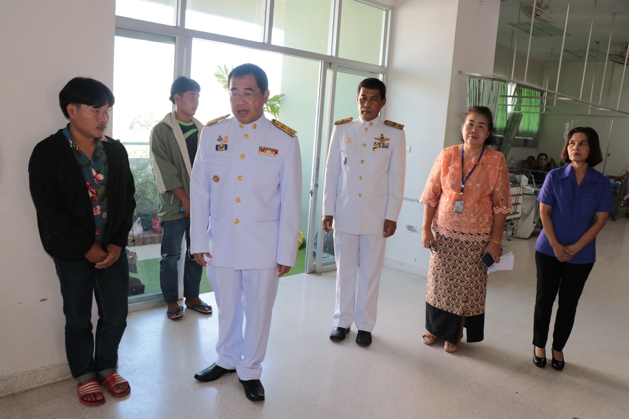 ที่ หอผู้ป่วยศัลยกรรมชาย โรงพยาบาลพหลพลพยุหเสนา จังหวัดกาญจนบุรี สมเด็จพระเจ้าลูกเธอ เจ้าฟ้าพัชรกิติยาภา นเรนทิราเทพยวดี กรมหลวงราชสาริณีสิริพัชร มหาวัชรราชธิดา ทรงพระกรุณาโปรดเกล้าโปรดกระหม่อมให้ นายจีระเกียรติ ภูมิสวัสดิ์ ผู้ว่าราชการจังหวัดกาญจนบุรี เป็นผู้แทนพระองค์ นำแจกันดอกไม้พระราชทาน แก่นายผู้แพร พิทักษ์ชาตคีรี อายุ 81 ปี ผู้อาวุโสชุมชนบ้านสาละวะ ต.ไล่โว่ อ.สังขละบุรี ที่ป่วยเป็นโรคหลอดเลือดออกในสมอง ความดันโลหิตสูง แขนขาอ่อนแรง ซึ่ๆงแพทย์ผู้ให้การรักษาแจ้งว่าล่าสุดผู้ป่วยมีอาการตับแข็งเนื่องจากพิษสุราเรื้อรังจึงให้พบแพทย์เวชศาสตร์ฟื้นฟู และให้นักกายภาพบำบัดทำการกายภาพเพื่อช่วยเรื่องแขนขาอ่อนแรง ขณะนี้อาการทั่วไป ความดันโลหิตเริ่มปกติ แพทย์หยุดยาลดความดันแบบให้ทางหลอดเลือด
