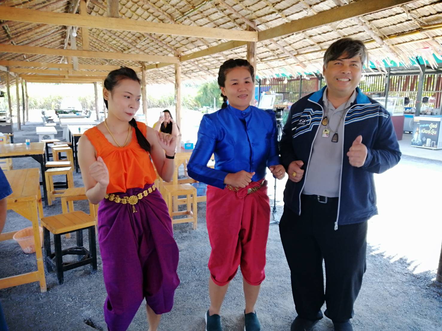 ขณะที่นายภูดิศ ใจเสือกุล (เฮียต๋อย) เจ้าของร้านหลานยายชายทุ่ง เล่าให้ฟังว่าเดิมที่บ้านเปิดฟาร์มไก่ชนและร้านอาหารตามสั่งเล็ก ๆ เปิดขายที่หน้าบ้านมาหลายปี ลูกค้าส่วนใหญ่ก็เป็นคนในหมู่บ้าน ต่อมาได้ปรึกษากับญาติพี่น้องที่อยู่ละแวกเดียวกันพี่ป้าน้าอา ที่ว่างจากงานและมีฝีมือในการทำอาหารแบบบ้านๆ ส่วนที่ตั้งร้านปัจจุบันเดิมเป็นทุ่งนา 10 กว่าไร่ จึงปรับมาทำเป็นร้านอาหาร จะได้มีรายได้ดีกว่าอยู่บ้านเฉยๆ ทุกคนในร้านเป็นญาติพี่น้องกัน มาช่วยกันทำ ช่วยกันเสิร์ฟต้อนรับลูกค้า ใส่ชุดไทยย้อนยุค นุ่งโจงกระเบน เสื้อคอกระเช้า โชว์ลีลารำวงย้อนยุค ได้ทั้งเพลงเก่า เพลงใหม่ รำออกสะเต็ปได้ทุกแนว สร้างความประทับใจและความเป็นกันเองกับลูกค้า (พนักงานเสิร์ฟเดิมอยู่กับบ้านก็ใส่คอกระเช้า อยู่บ้านกันอยู่แล้ว) เมื่อมาเสิร์ฟอาหารจึงมาช่วยกันอนุรักษ์ชุดไทยย้อนยุคโจงกระเบนเสื้อคอกระเช้า ใส่โชว์ให้บริการลูกค้าและนักท่องเที่ยวได้ชม เพื่อไม่ให้ชุดไทยย้อนยุคจะได้ไม่สูญหายไป