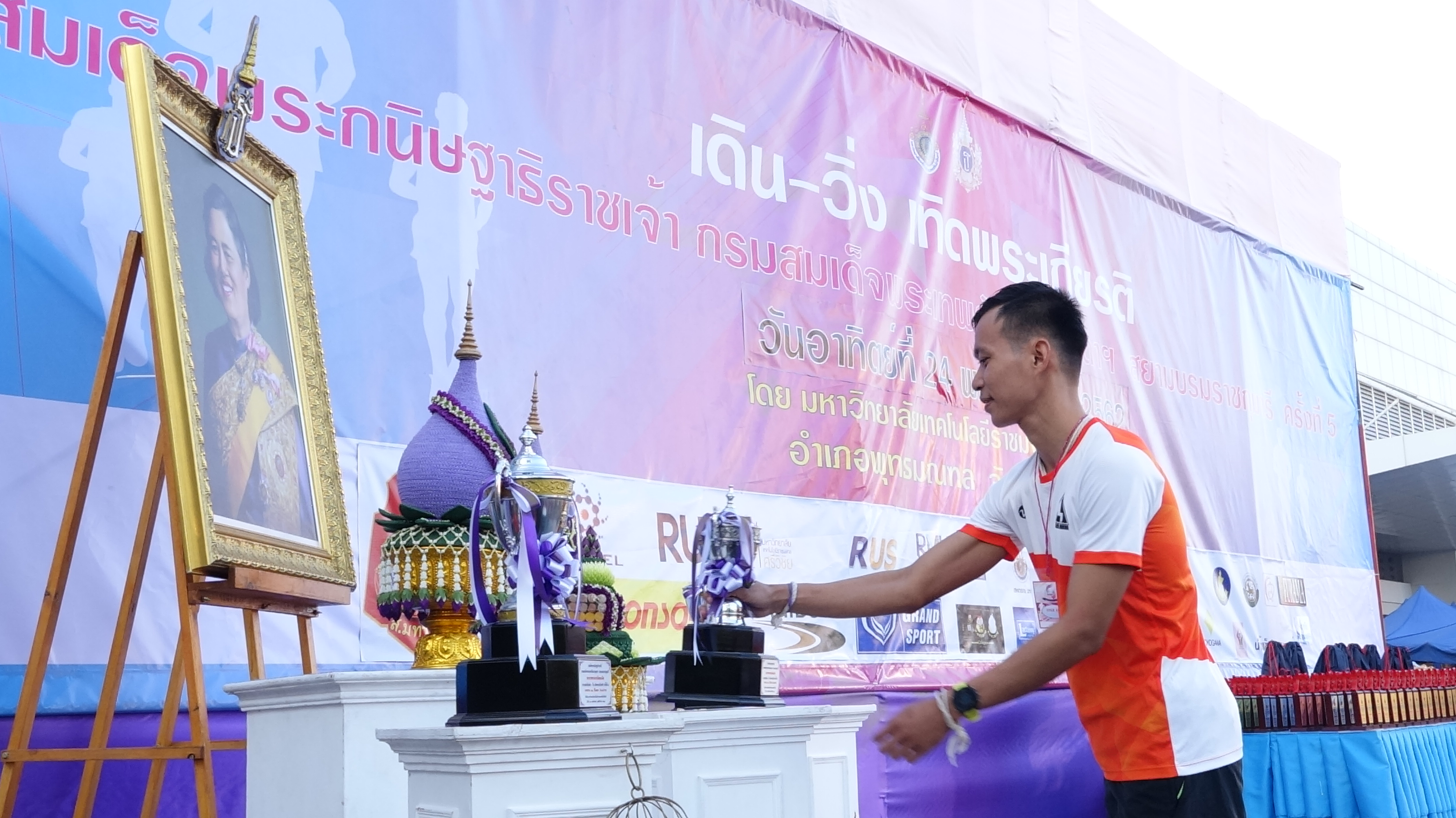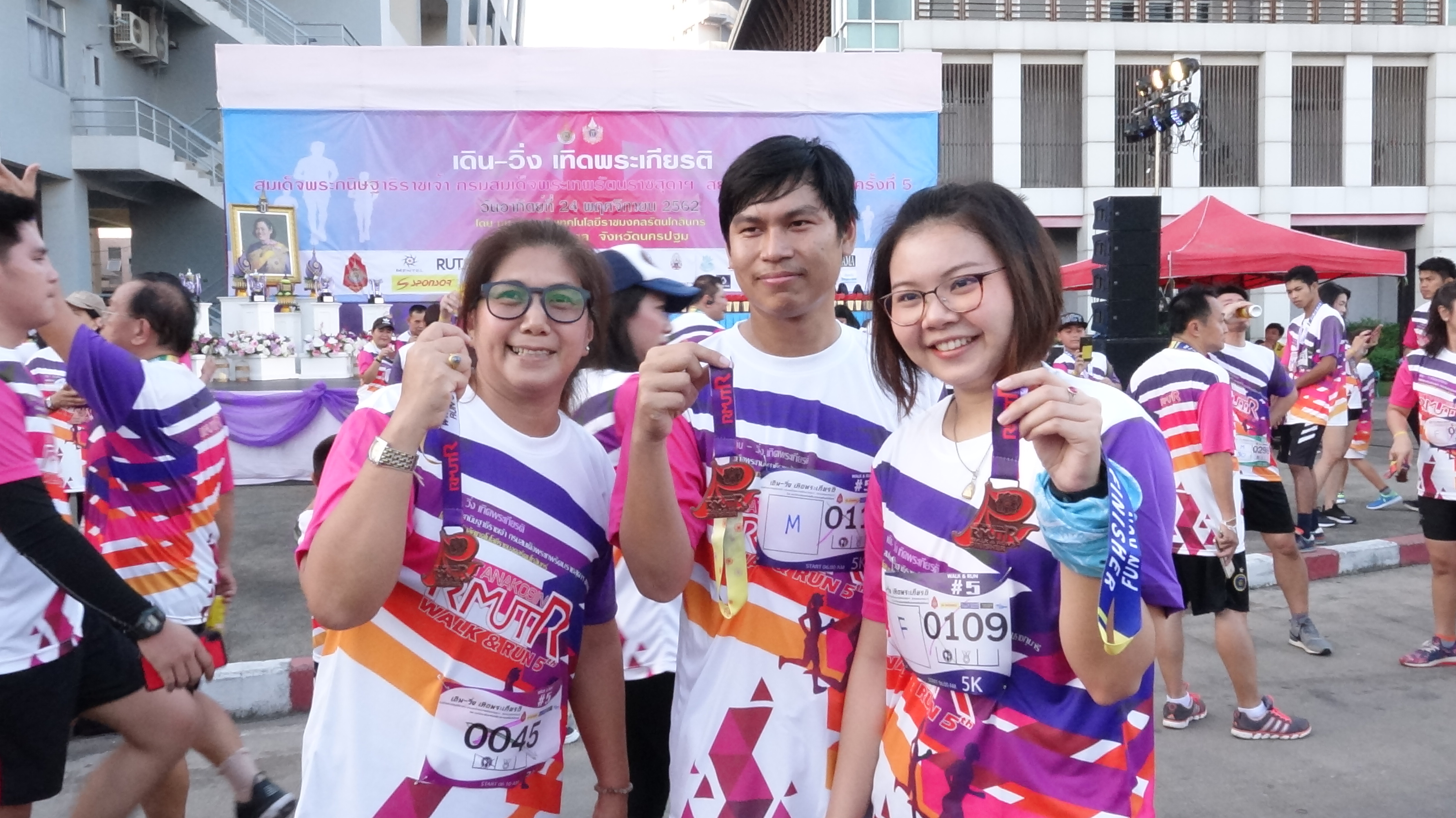 รศ.ดร.อุดมวิทย์ ไชยสกุลเกียรติ รองอธิการบดีมหาวิทยาลัยเทคโนโลยีราชมงคลรัตนโกสินทร์ เปิดกรวยถวายถวายสักการะ และกล่าวคำถวายราชสดุดีเฉลิมพระเกียรติฯ หน้าพระบรมฉายาลักษณ์สมเด็จพระกนิษฐาธิราชเจ้า กรมสมเด็จพระเทพรัตนราชสุดาฯสยามบรมราชกุมารี ก่อนที่นางสาวสลารีวรรณ ทัพทวี นายอำเภอพุทธมณฑล เป็นประธานเปิดการแข่งขันเดิน-วิ่งการกุศล เทิดพระเกียรติสมเด็จพระกนิษฐาธิราชเจ้า กรมสมเด็จพระเทพรัตนราชสุดาฯสยามบรมราชกุมารี ครั้งที่5 โดยมีอาจารย์สมใจ ศรีเนตรผู้อำนวยการสำนักงานอธิการบดีมหาวิทยาลัยเทคโนโลยีราชมงคลรัตนโกสินทร์ กล่าวรายงานวัตถุประสงค์ พร้อมร่วมกันปล่อยตัวผู้เข้าร่วมแข่งขันเดิน-วิ่ง เทดพระเกียรติฯ