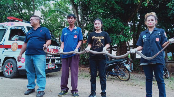 หน่วยกู้ภัยบรรเทาวังวิเศษ (มูลนิธิกุศลสถานตรัง บ๊วนเต็กเซี่ยงตึ๊ง) จังหวัดตรัง จับงูจงอางขนาดใหญ่ได้อีกแล้ว โดยงูจงอางเลื้อยเข้าไปอยู่ในบ้านของคุณยาย อายุ 75 ปี สร้างความตกใจให้กับคุณยายเป็นอย่างมาก ในขณะที่ชาวบ้านที่มามุงดูก็ดูบ้านเลขที่เพื่อนำไปเสี่ยงโชค เนื่องจากใกล้วันหวยออก