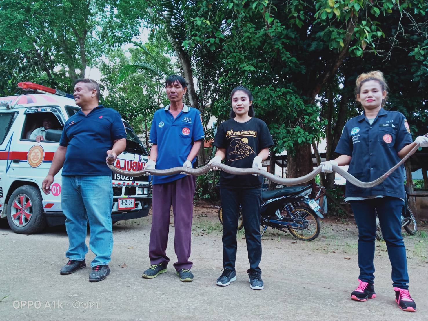 ก็ได้แต่ภาวนาว่าถ้าเป็นงูเจ้าที่เจ้าทางก็ให้ออกไปเถอะ เพราะลูกหลานกลัว และงูจงอางก็เลื้อยเข้ามานอนโดยระเบียบเรียบร้อย ตามความสบายใจ อย่างมีความสุข ตนเองก็ให้คนข้างบ้านได้โทรแจ้งมายังเจ้าพ่อปราบงูจงอางประจำหน่วยกู้ภัย บรรเทาวังวิเศษ ที่จับงูจงอางมาแล้วร่วมครึ่งพันทำการจับและนำไปปล่อยสู่คืนธรรมชาติต่อไป อย่างไรก็ตามทั้งนี้คาดว่างูจงอาง อาจจะมาหาที่สถานที่อุ่นๆอยู่ เนื่องจากช่วงนี้จังหวัดตรังมีฝนตก ทำให้สภาพอากาศเย็น งูจึงเลื้อยเข้ามาในบ้านคนก็เป็นไปได้ โดยงูจงอางที่จับได้ยาวประมาณ 4 เมตร xxxxx ยายทิ้งท้ายบอกว่างวดนี้เอาไปเลย 75 อายุ ของคุณยายและบ้านเลขที่26หมู่ 12 ว่ากันไปตามนักเสี่ยงโชค xxxxx ขอขอบคุณภาพจากเจ้าหน้าที่หน่วยกู้ภัยวังวิเศษ จังหวัดตรัง มนต์เจริญ ศรีมงคล จ.ตรัง