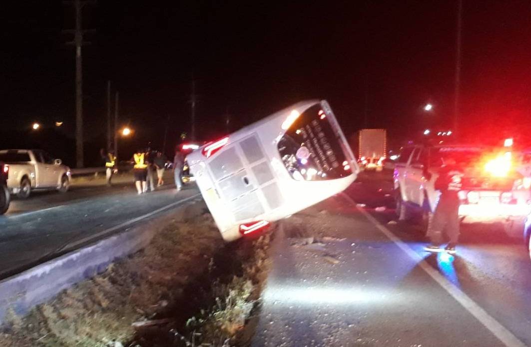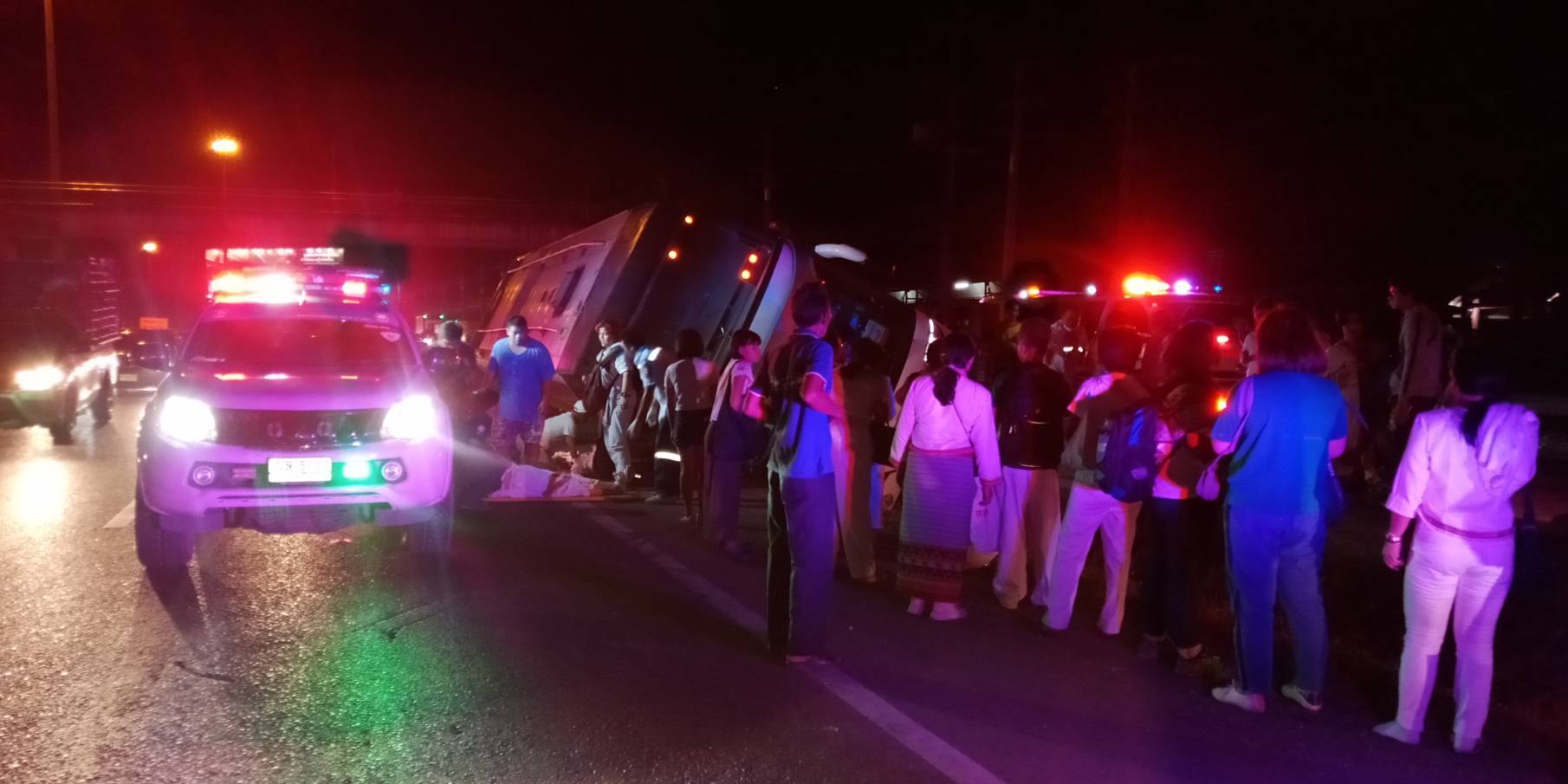 บัสแสวงบุญ เสียหลักพลิกตระแครง ตกร่องกลางเจ็บกว่า10ราย(หวิดตายหมู่)