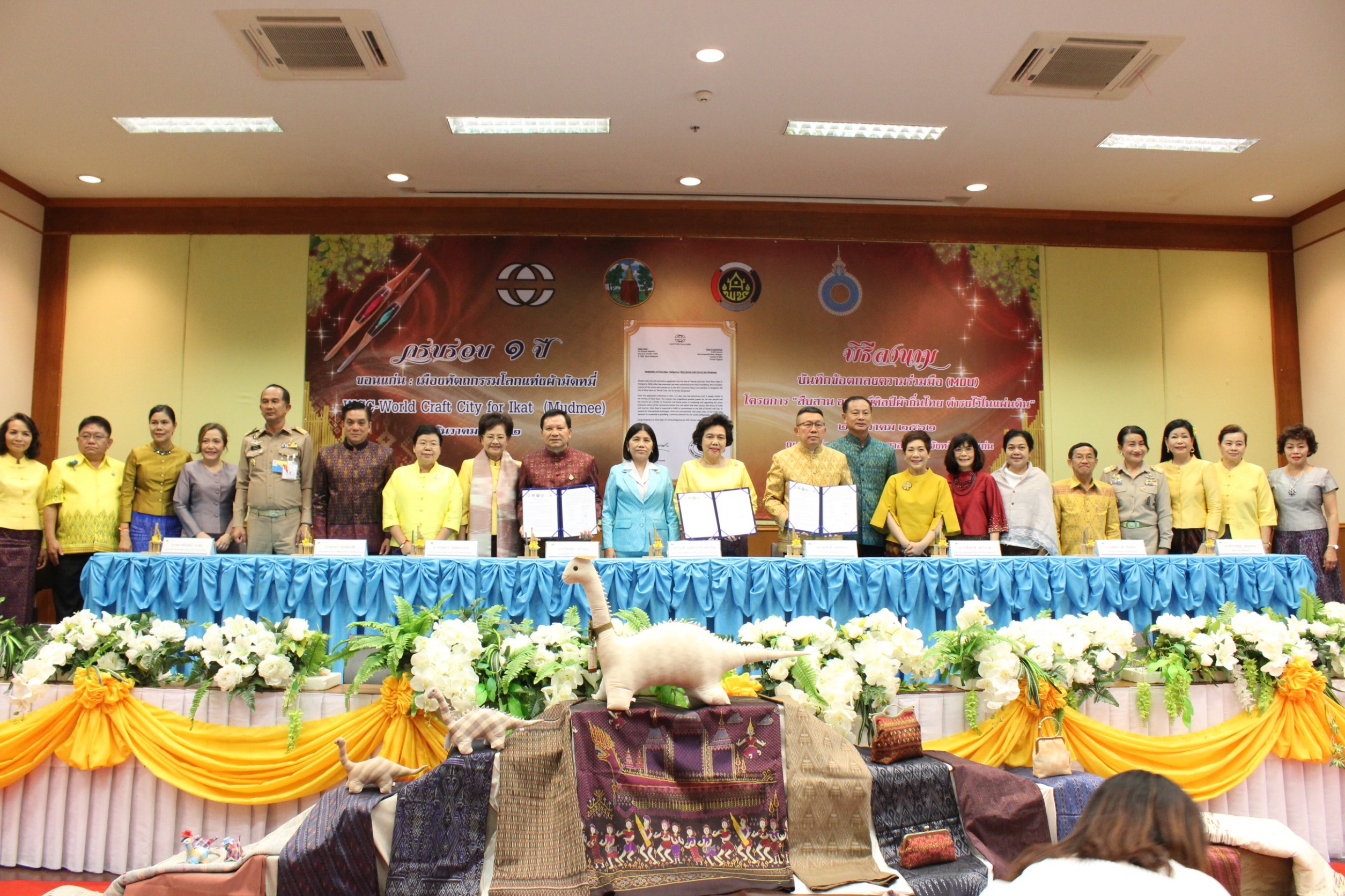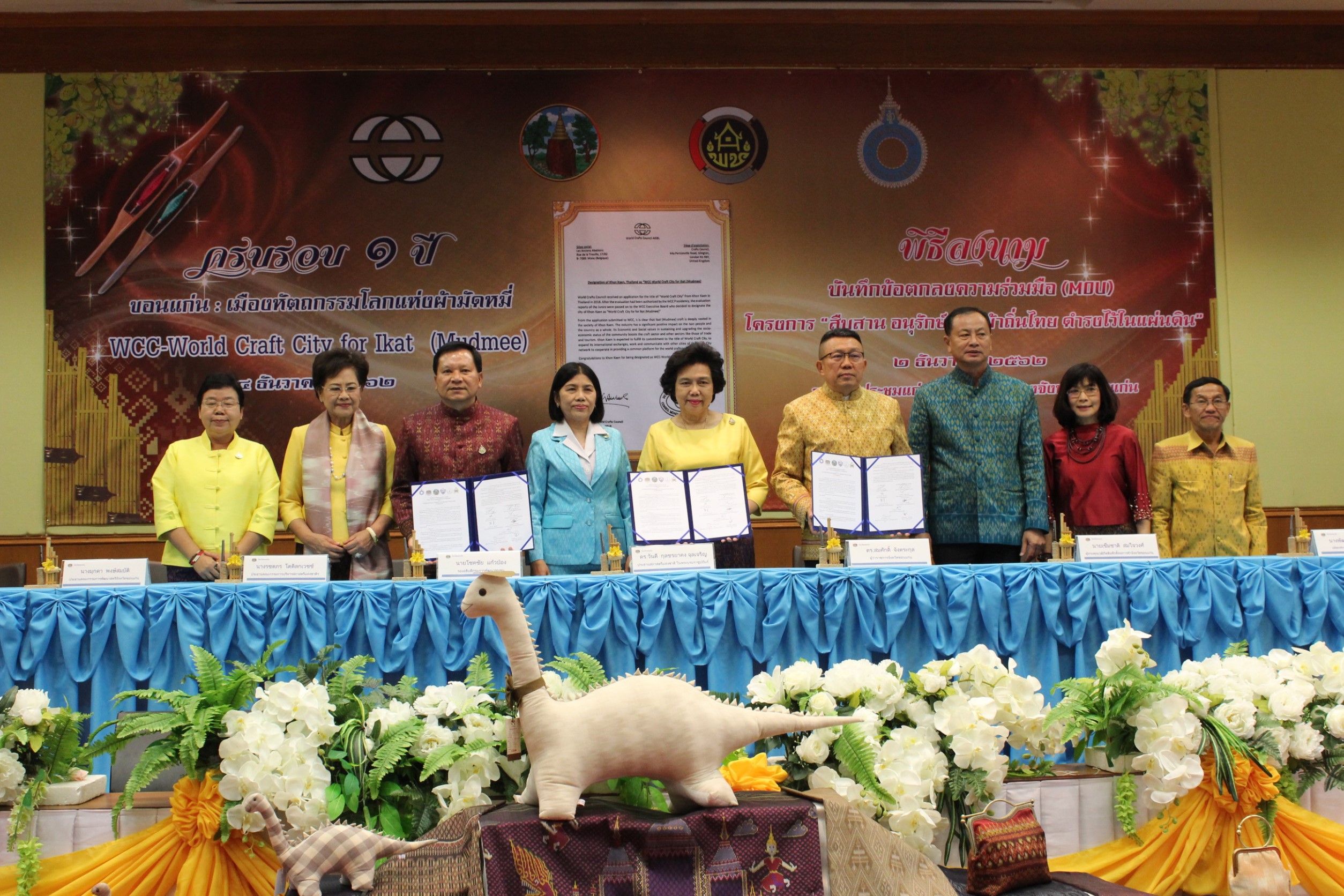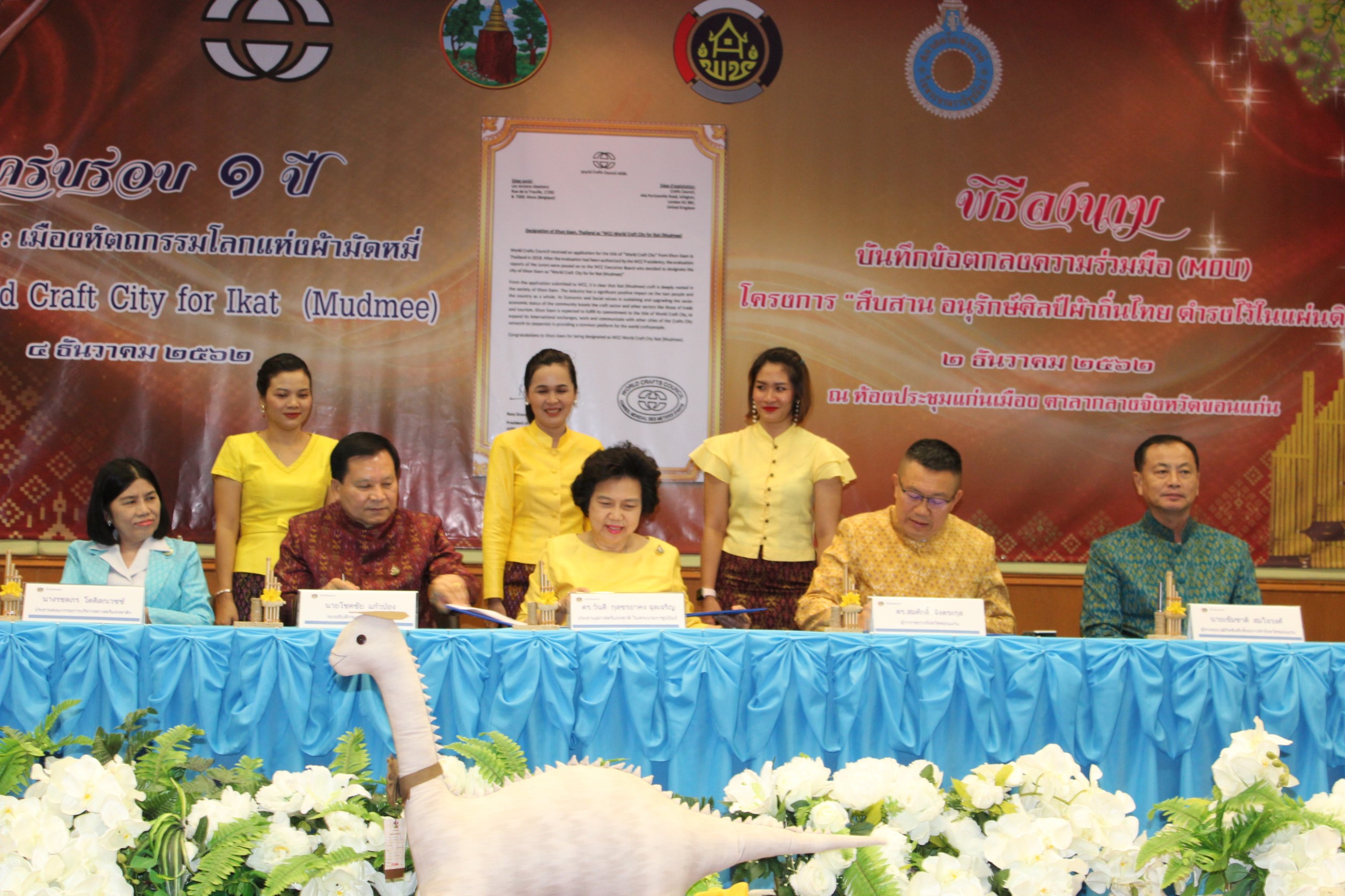 นอกจากนี้ นายธีระเชษฐ สอนปะละ พัฒนาการจ.ขอนแก่น พร้อมด้วยหัวหน้าส่วนราชการ และเจ้าหน้าที่พัฒนาชุมชนจ.ขอนแก่น ได้ร่วมพิธีลงนามบันทึกข้อตกลงความร่วมมือ (MOU) ในการจัดกิจกรรมครบรอบ 1 ปี ขอนแก่น : เมืองหัตถกรรมโลกแห่งผ้ามัดหมี่ (World Craft City For lkat (Mudmee) และพิธีลงนามบันทึกข้อตกลงความร่วมมือ (MOU) โครงการ “สืบสานอนุรักษ์ศิลป์ผ้าถิ่นไทย ดำรงไว้ในแผ่นดิน”