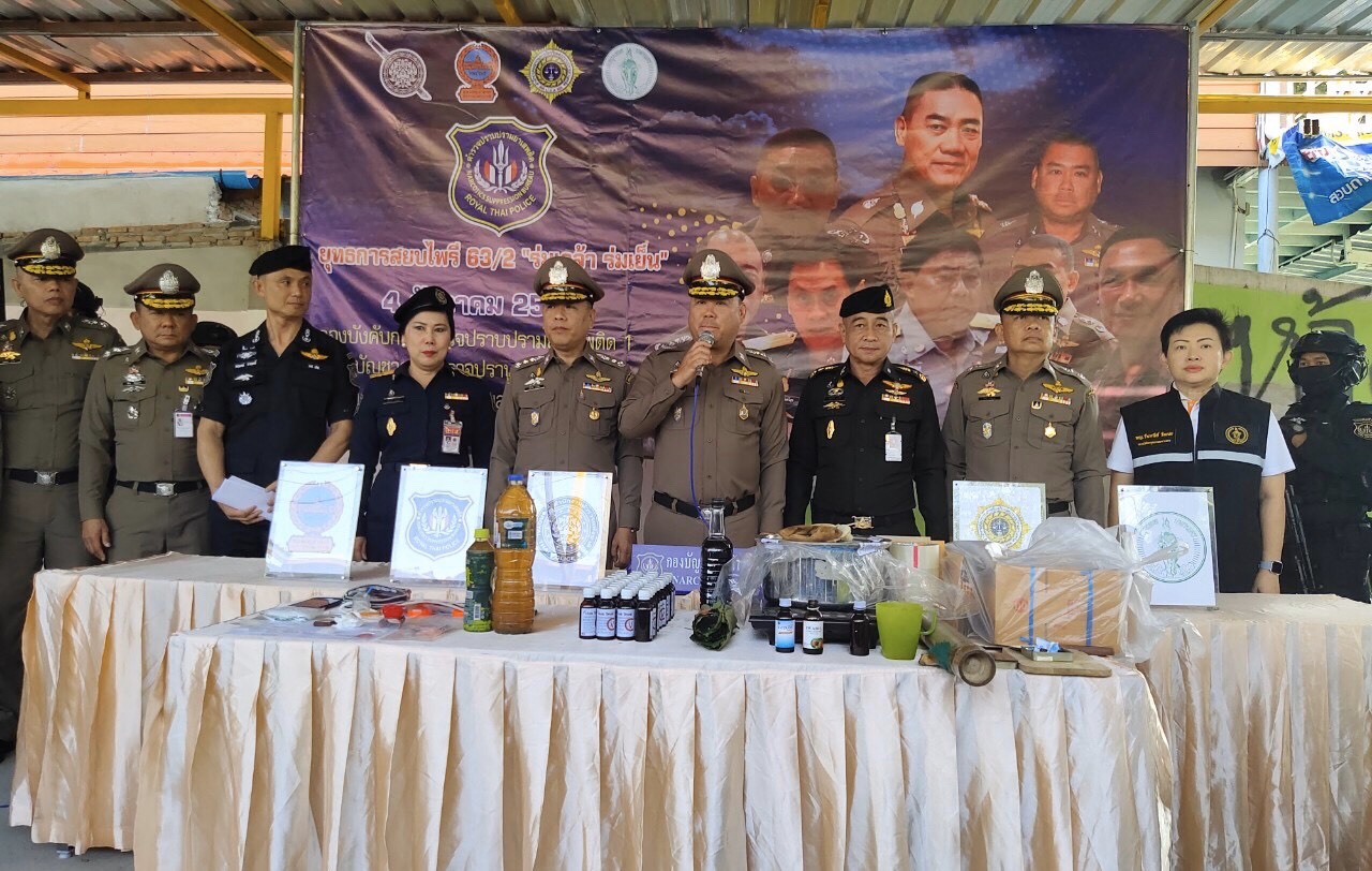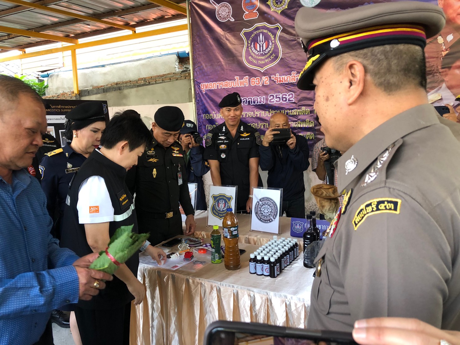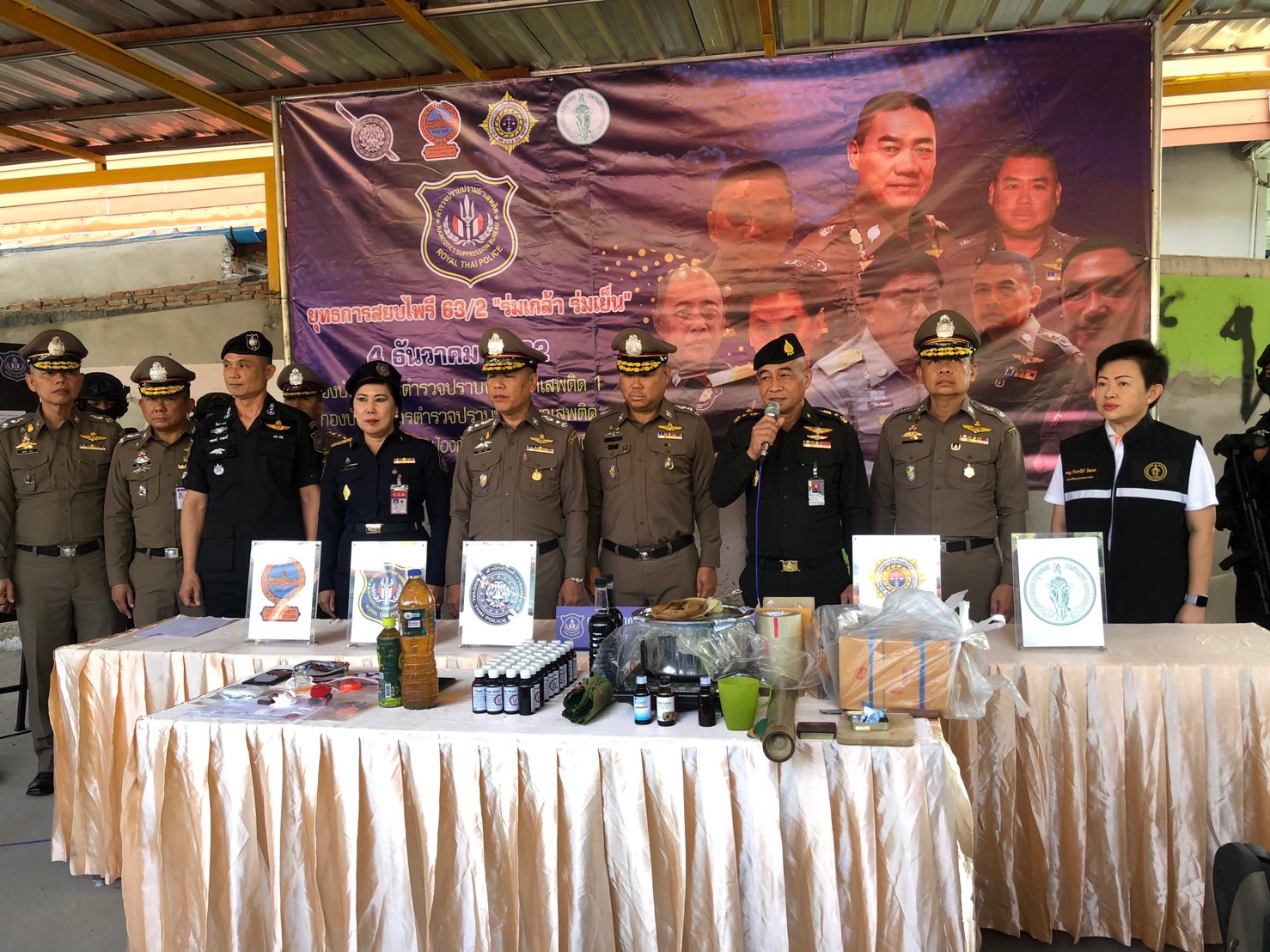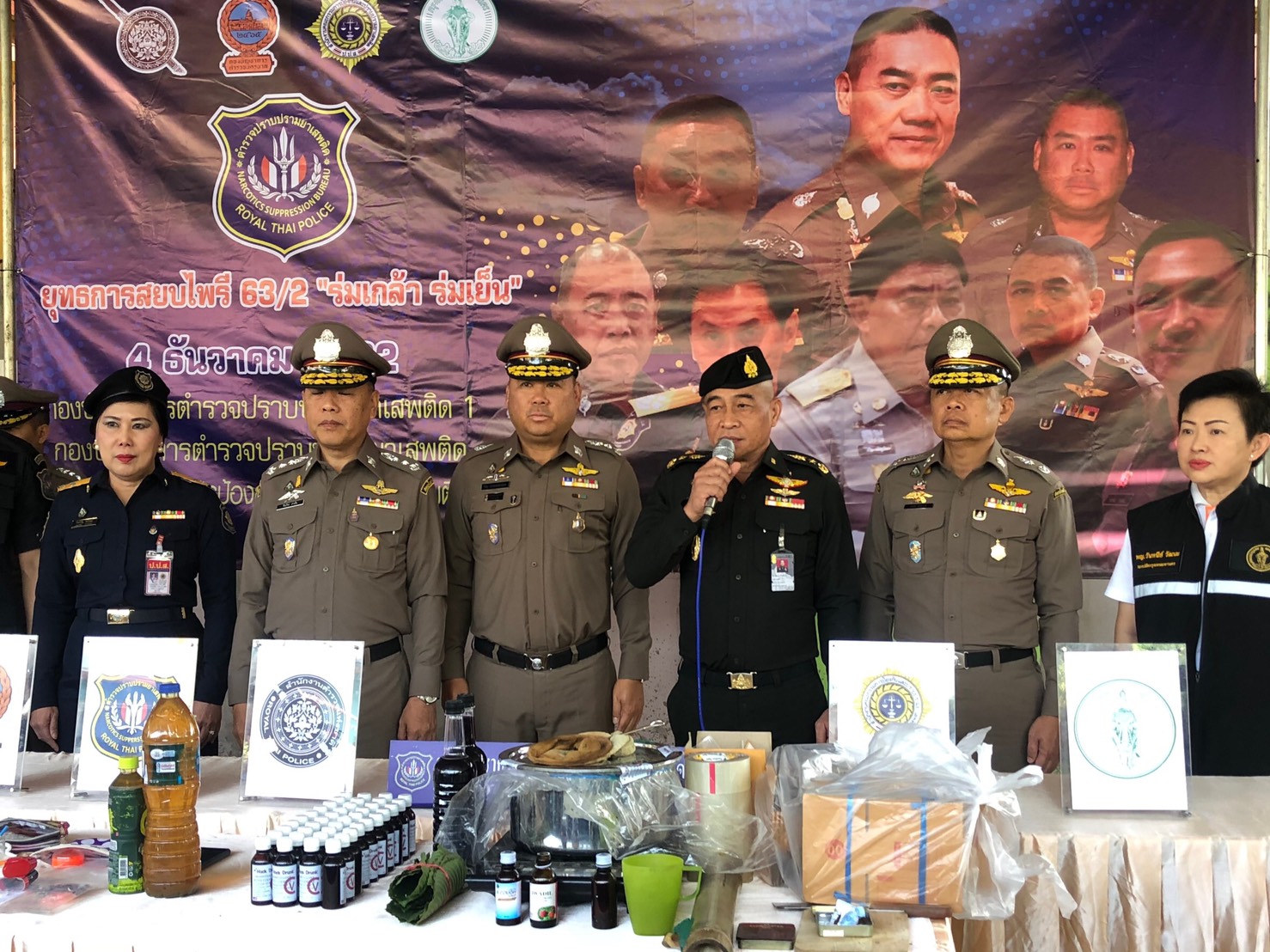 กองอำนวยการรักษาความมั่นคงภายในราชอาณาจักร (กอ.รมน.) โดย พล.อ.ธีรวัฒน์ บุณยะวัฒน์ เลขาธิการ กอ.รมน. มอบหมาย พล.ท.กิตติธัช บุพศิริ ผู้อำนวยการศูนย์ประสานการปฏิบัติที่ 2 (ผอ.ศปป.2 กอ.รมน.) ร่วมแถลงข่าวการบูรณาการขับเคลื่อน การแก้ไขปัญหายาเสพติด ร่วมกับ พล.ต.ท.วิสนุ ปราสาททองโอสถ ผช.ผบ.ตร.,พล.ต.ท.ชินภัทร สารสิน ผบช.ปส. ,พล.ต.ต.พรชัย เจริญวงศ์ รอง ผบช.ปส. ตลอดจน ผู้แทนสำนักงาน ป.ป.ส. และหน่วยภาคีเครือข่าย แถลงผลการจับกุมเครือข่ายกลุ่มนักค้ายาเสพติดรายย่อย และกลุ่มนักค้ายาเสพติดซึ่งใช้วิธีการส่งยาเสพติดผ่านทางระบบโลจิสติกส์ โดยเมื่อวันที่ 4 ธันวาคม 2562 เจ้าหน้าที่ตำรวจ บก.ปส.1และสำนักงาน ป.ป.ส. ได้เข้าปิดล้อมตรวจค้นเป้าหมายผู้ค้ายาเสพติดจำนวน 26 เป้าหมาย สามารถจับกุมตัวผู้ต้องหาทั้งหมด 13 ราย (เป็นผู้ต้องหาตามหมายจับ 3 ราย และจับกุมพร้อมยาเสพติดของกลาง จำนวน 10 ราย) ของกลางจำนวน 7 รายการ ประกอบด้วย ยาบ้า จำนวน 24 เม็ด ,ไอซ์ จำนวน 5 ถุง น้ำหนักประมาณ 5 กรัม,ยาอี จำนวน 4 เม็ด ,เคตามี จำนวน 7 ถุง น้ำหนักประมาณ 7 กรัม ,ยาแก้ไอ 40 ขวด,พืชกระท่อม 32 ใบ และน้ำกระท่อม 1 หม้อ และ 2 ขวด สามารถตรวจยึดทรัพย์สิน 2 รายการมูลค่า ประมาณ 250,000 บาท