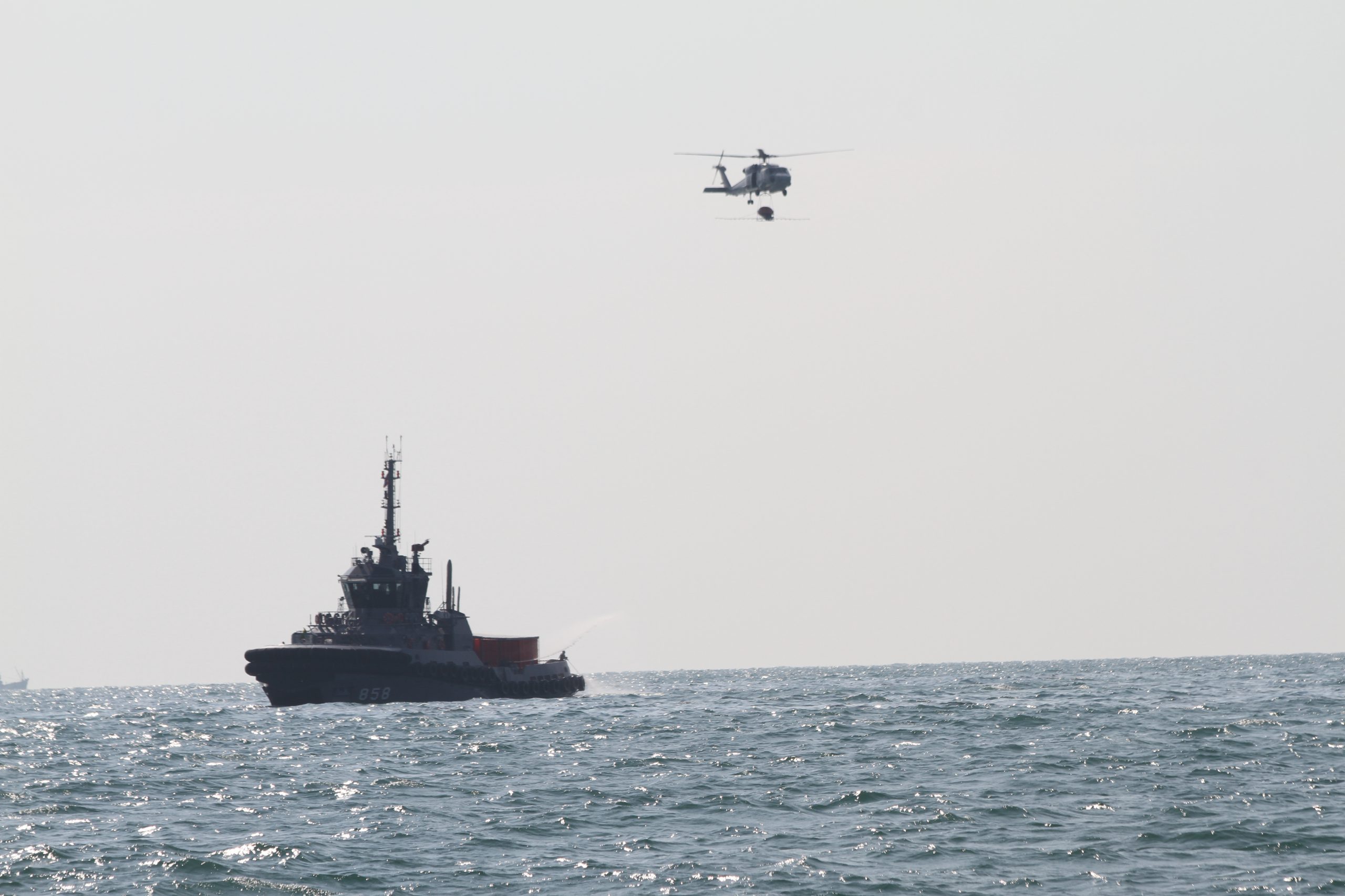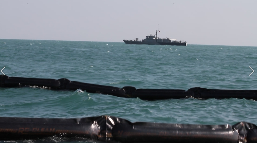 สมุทรปราการ กรมเจ้าท่าร่วมมือกับกองทัพเรือเร่งกำจัดคราบน้ำมันเตากลางทะเลและพ่นสารกำจัดคราบน้ำมัน