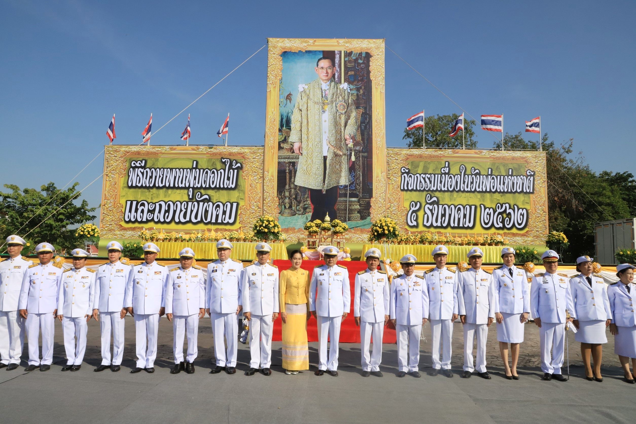 จังหวัดปทุมธานีประกอบพิธีทำบุญตักบาตร ถวายพานพุ่มราชสักการะ ถวายราชสดุดีและถวายบังคมเนื่องในวันคล้ายวันพระบรมราช สมภพในหลวงรัชกาลที่9