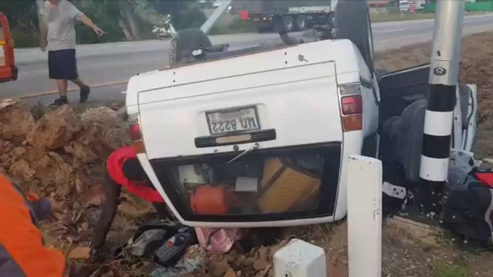 หนุ่มนักแสดงตัวประกอบหนังขับรถพาครอบครัวแอ่วเหนือเกิดหลับในทำรถพลิกคว่ำเจ็บยกครัว.