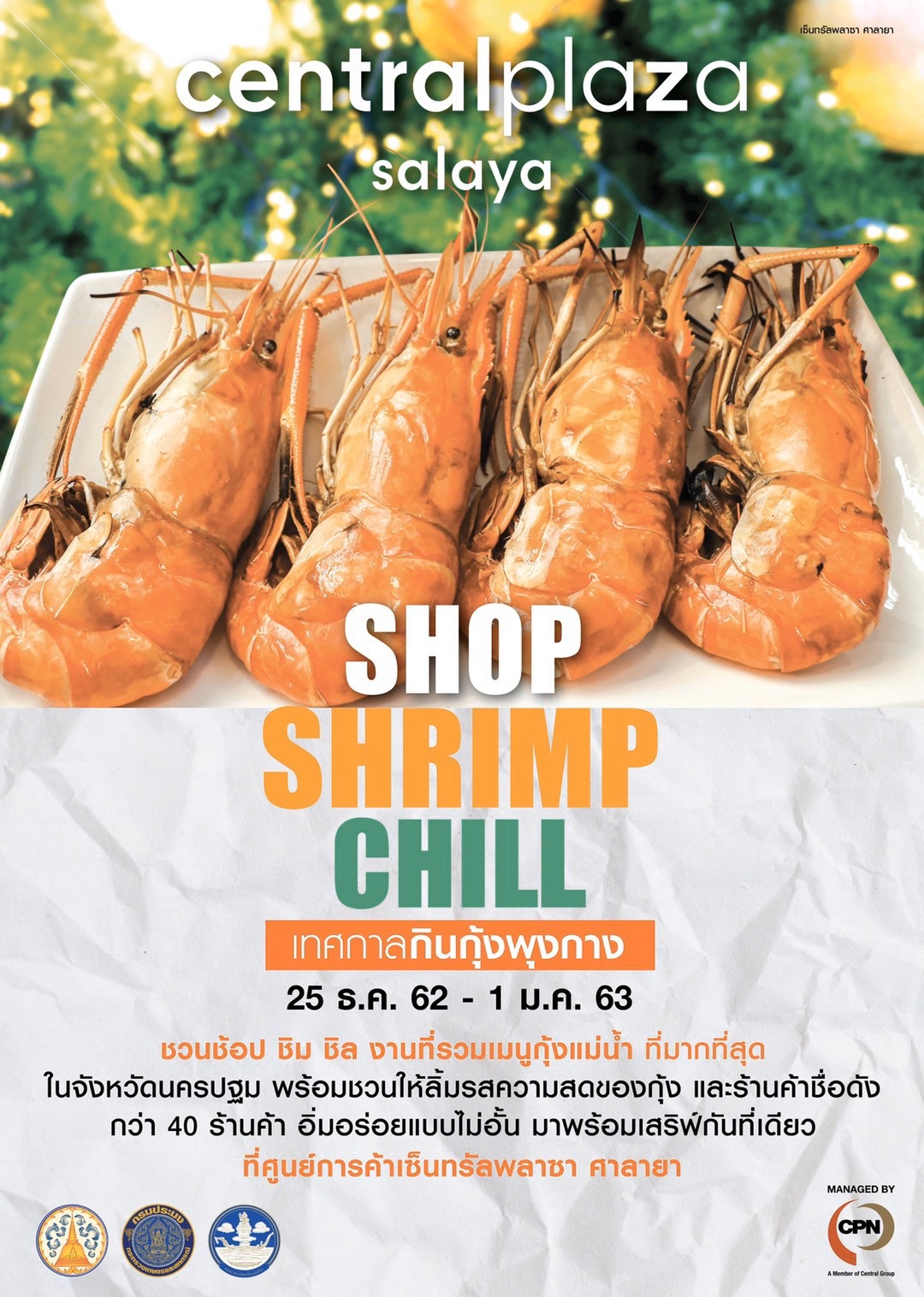 ศูนย์การค้าเซ็นทรัลพลาซา ศาลายา ขอเชิญร่วมงาน “SHOP SHRIMP CHILL” กินกุ้งข้ามปีที่เดียวในนครปฐม